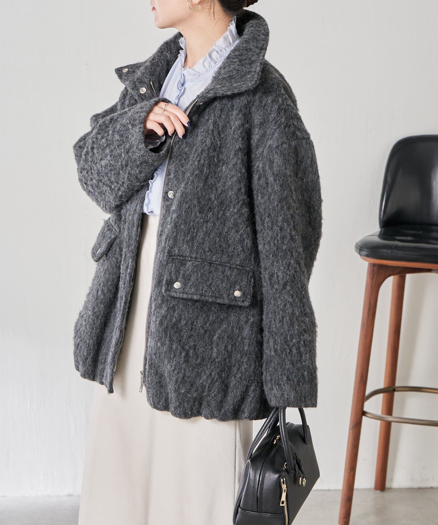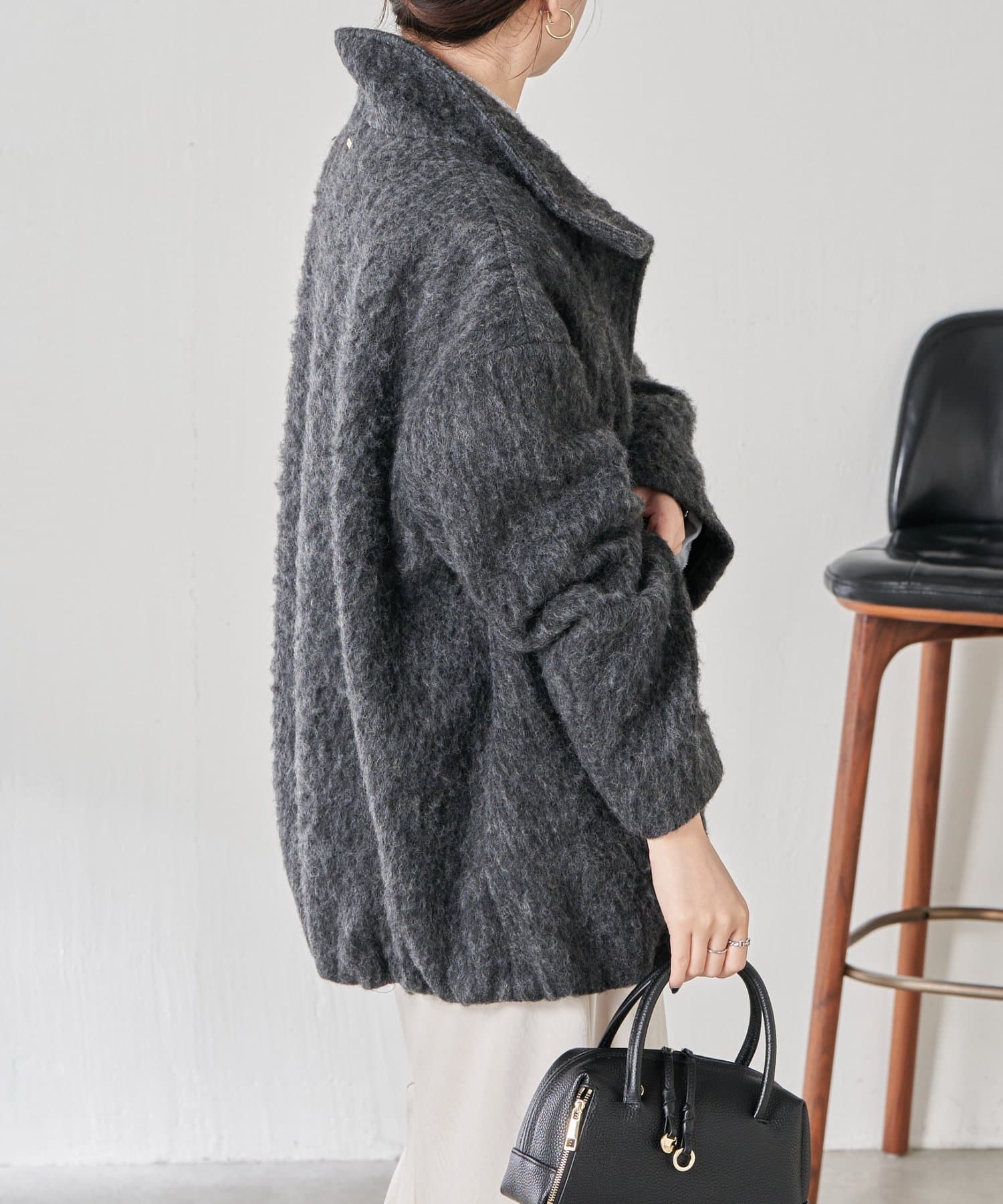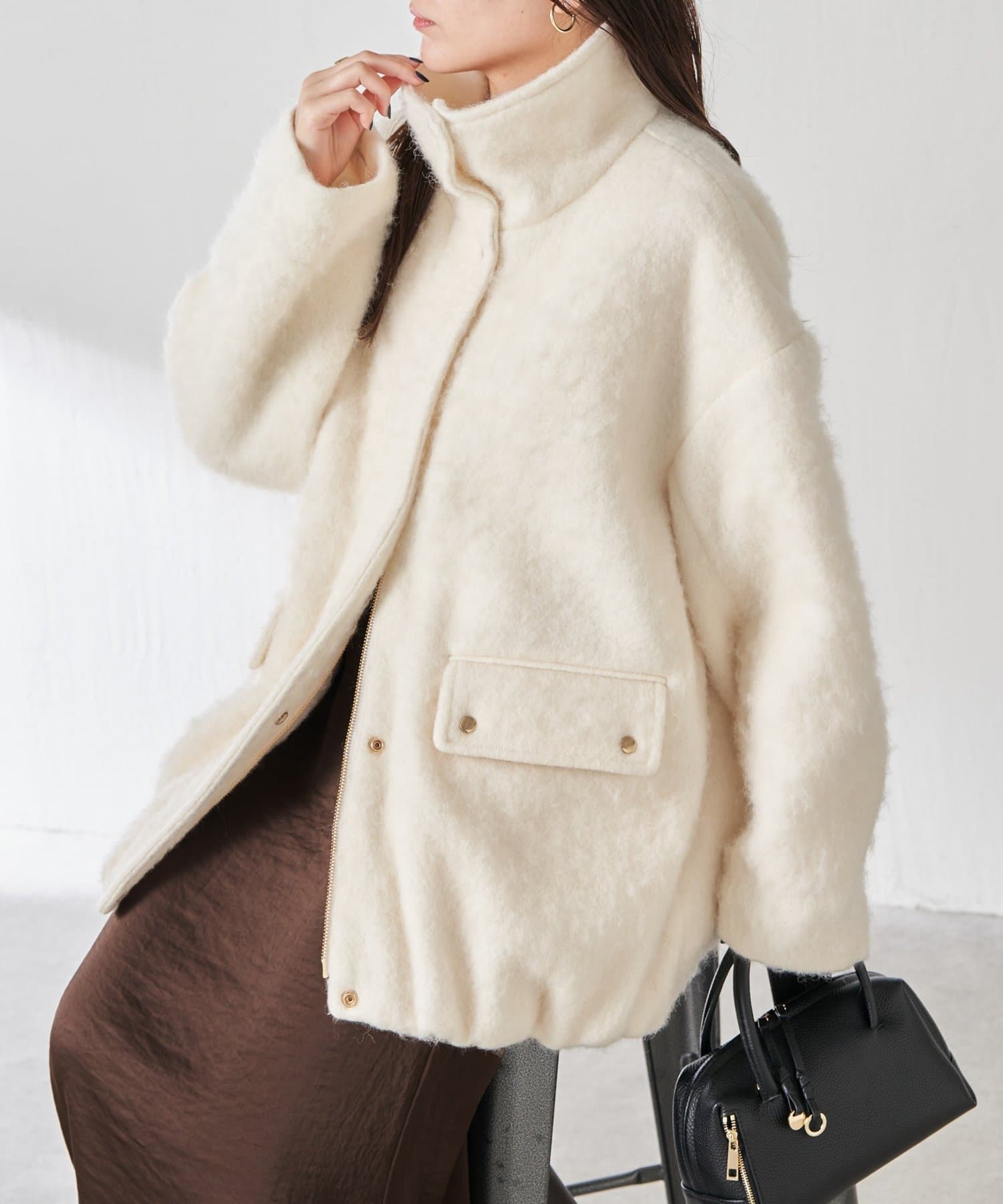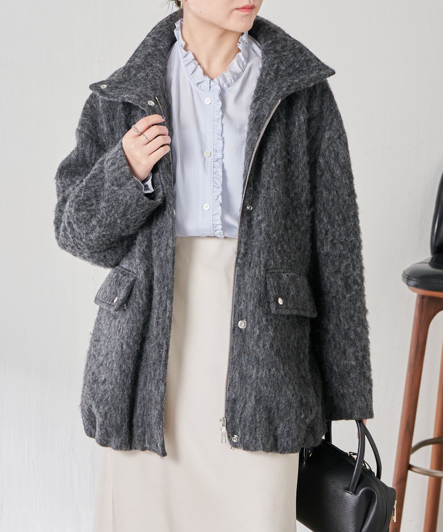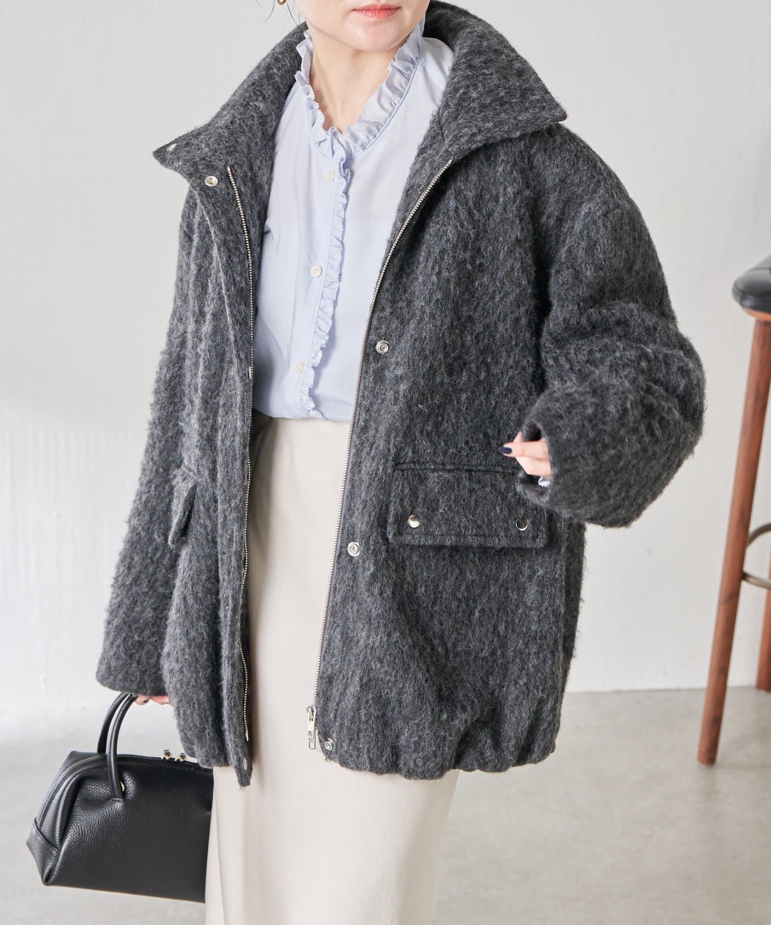 ・女性らしいシャギー素材でブルゾンライクなデザインにすることでカジュアルにも着やすいです。
