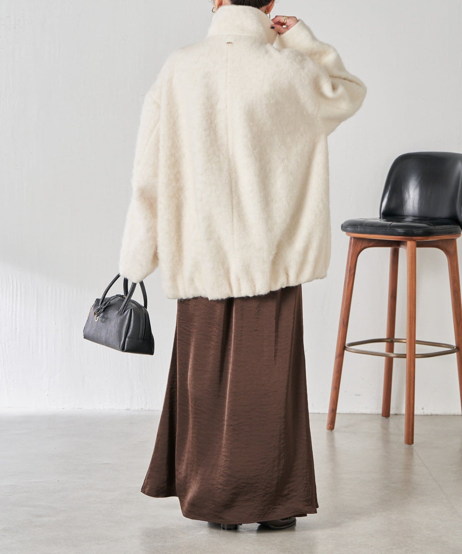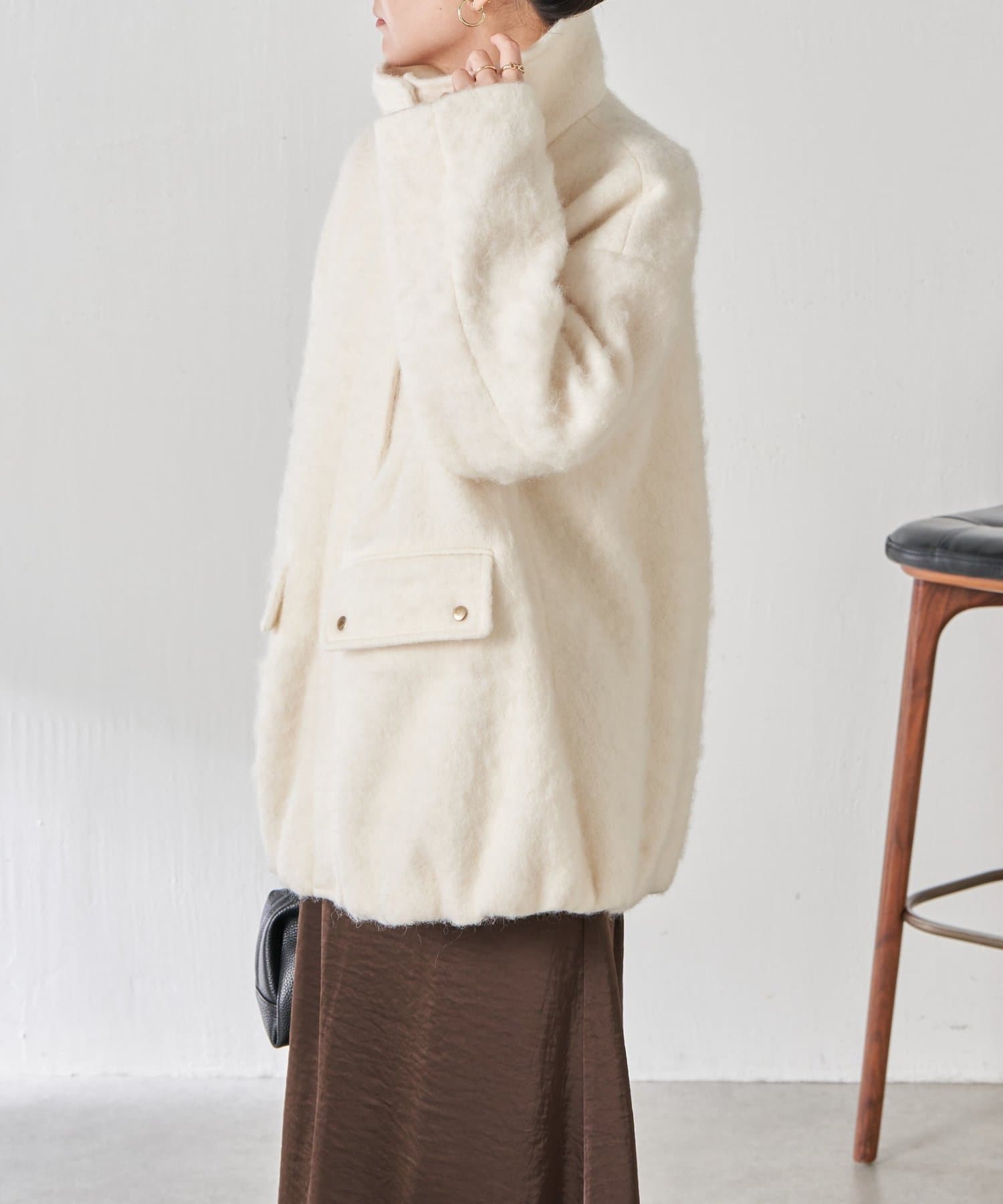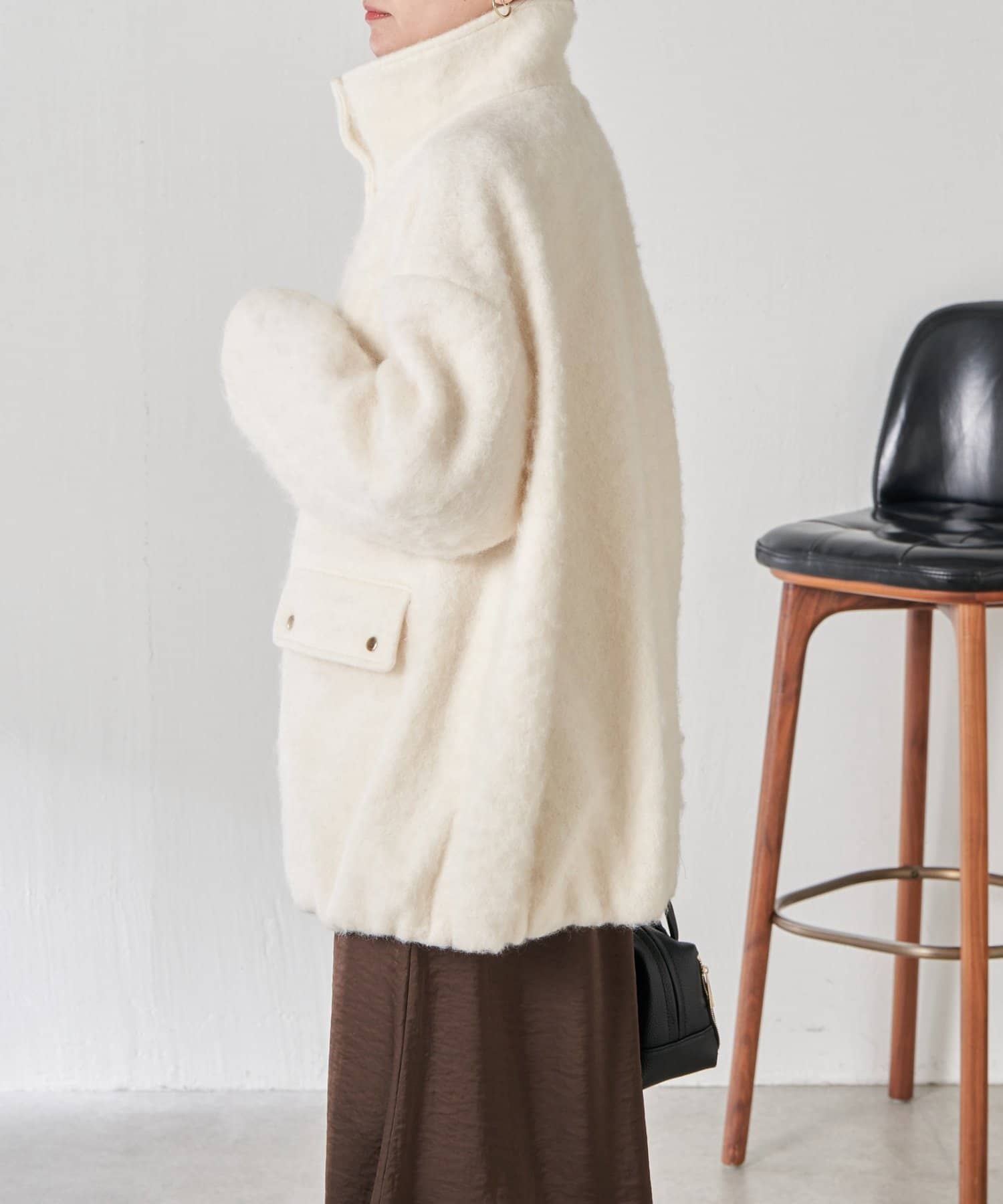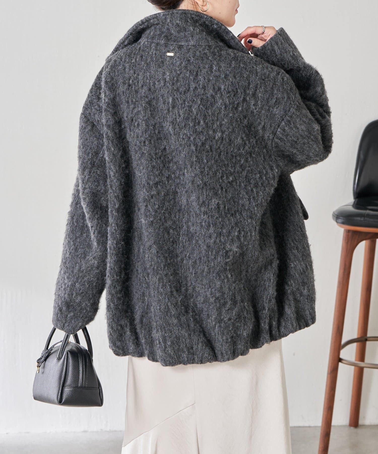 ・女性らしいシャギー素材でブルゾンライクなデザインにすることでカジュアルにも着やすいです。