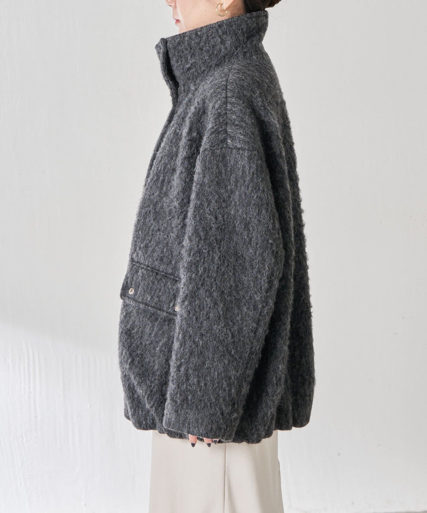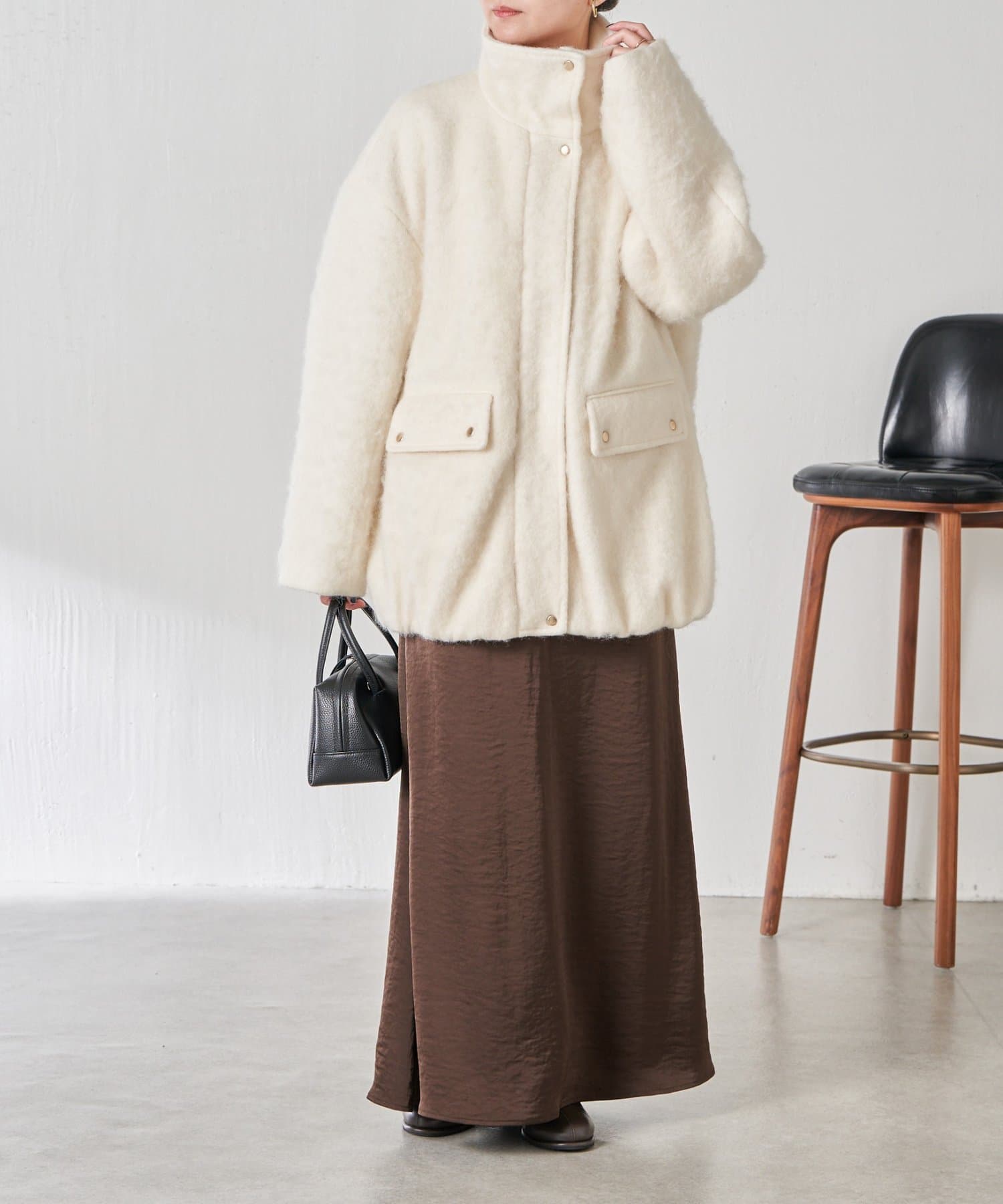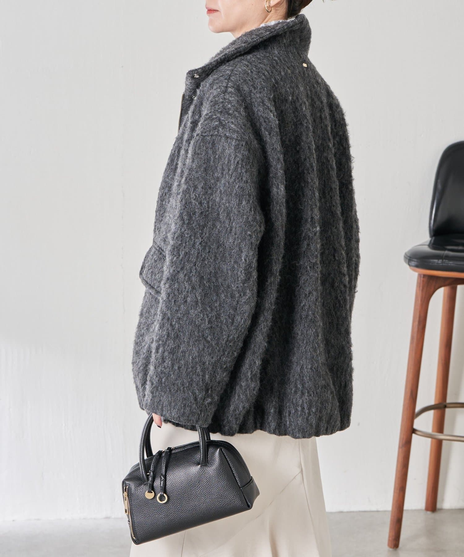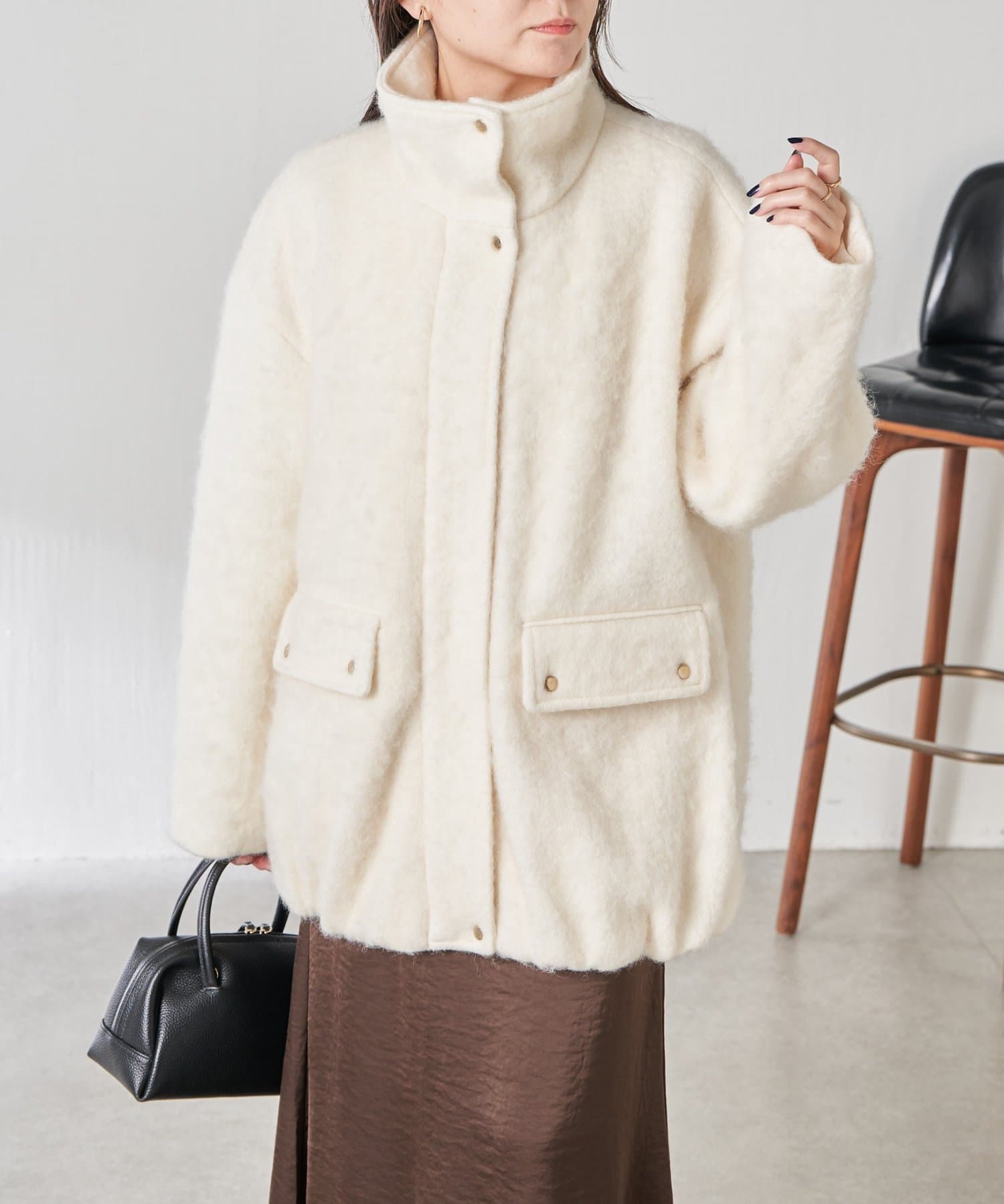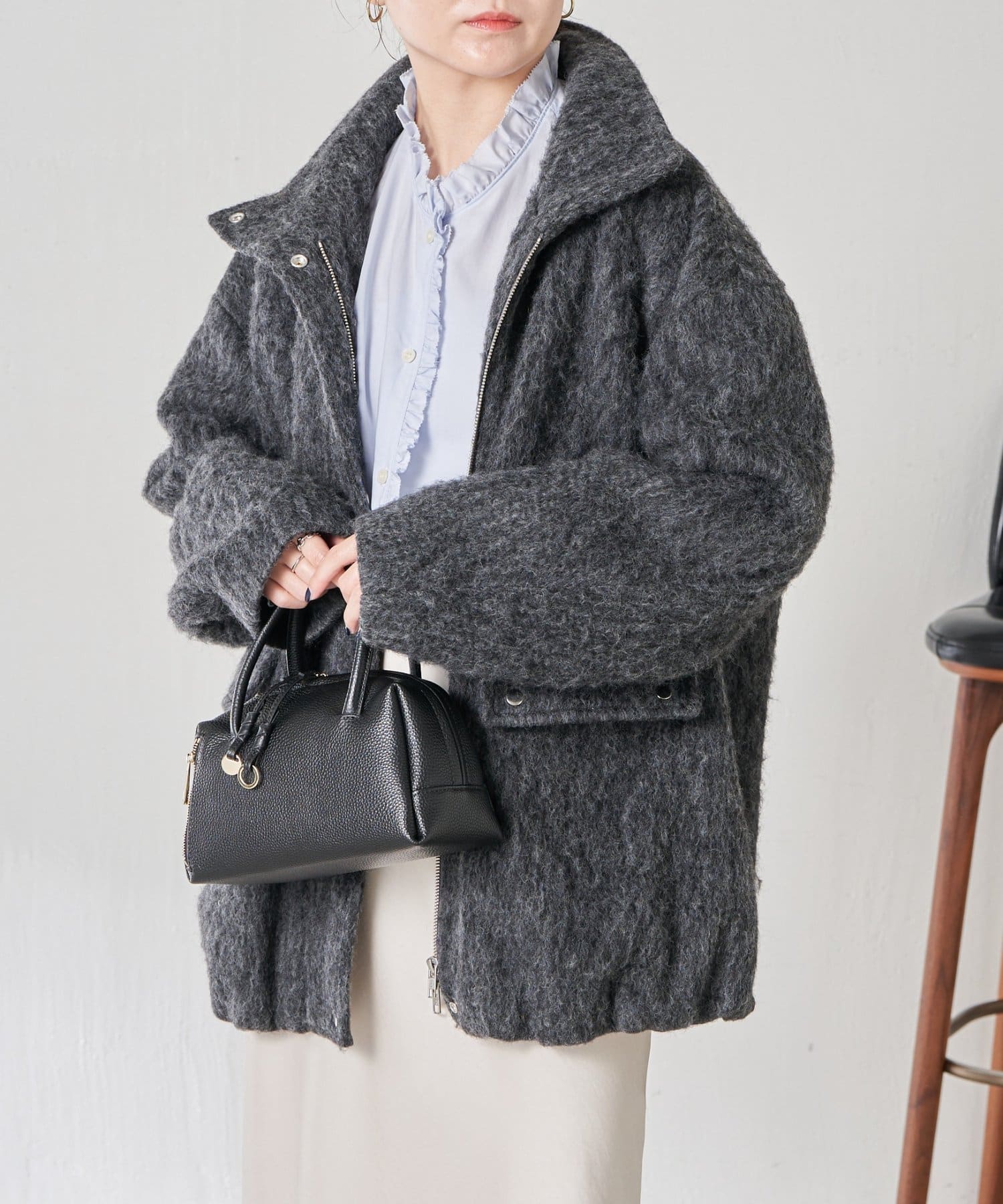 ・女性らしいシャギー素材でブルゾンライクなデザインにすることでカジュアルにも着やすいです。