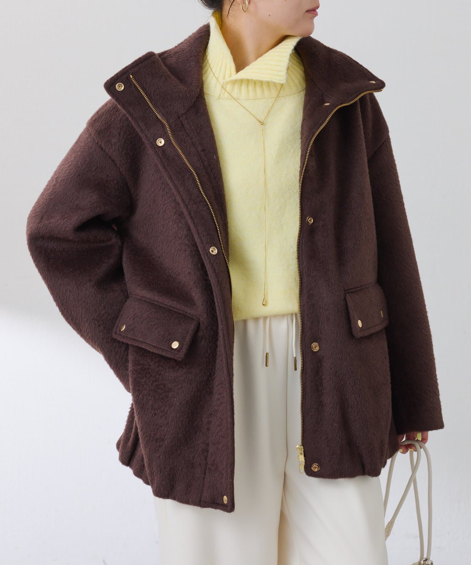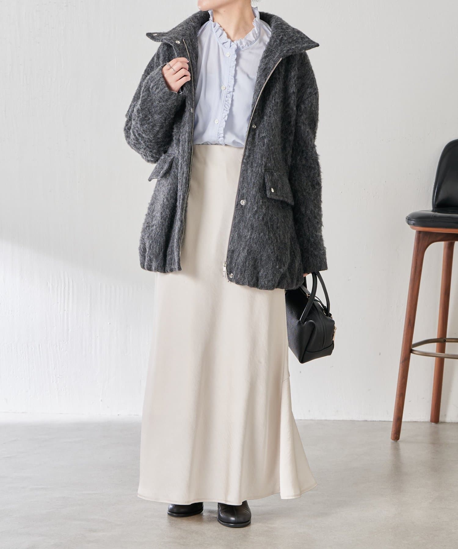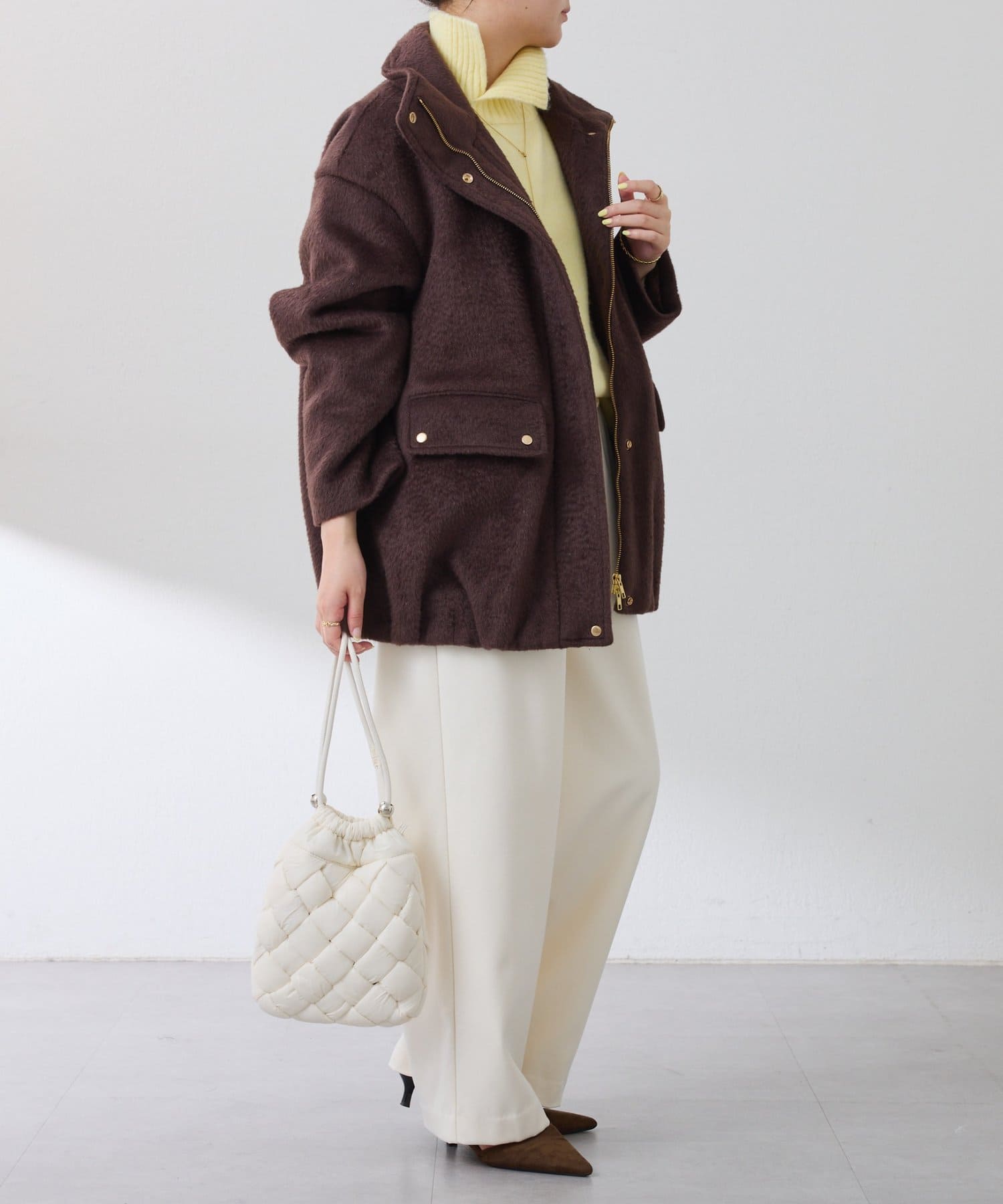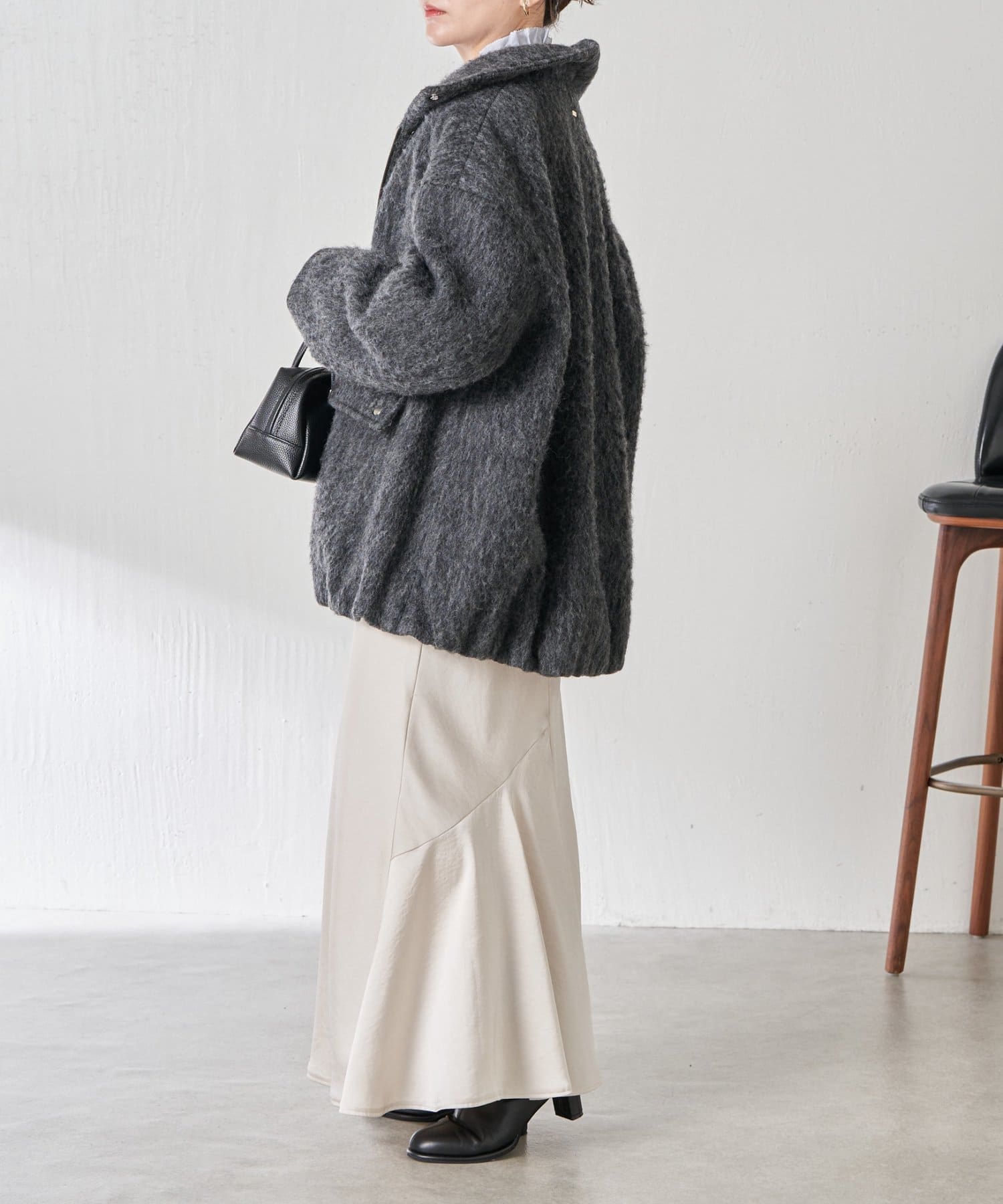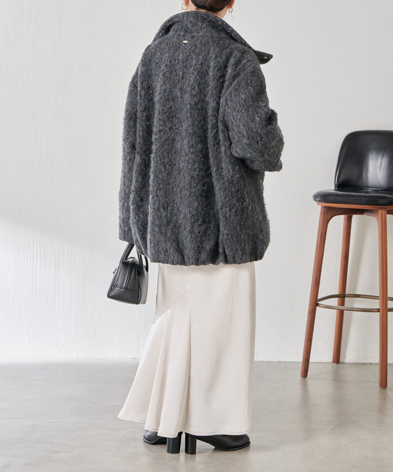 ・女性らしいシャギー素材でブルゾンライクなデザインにすることでカジュアルにも着やすいです。