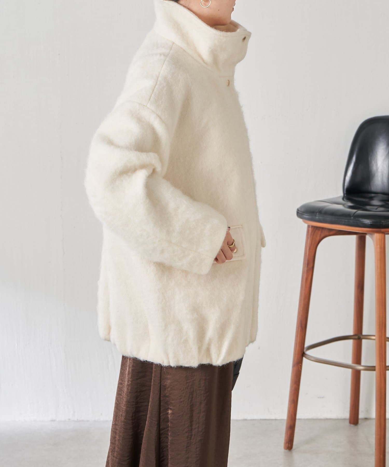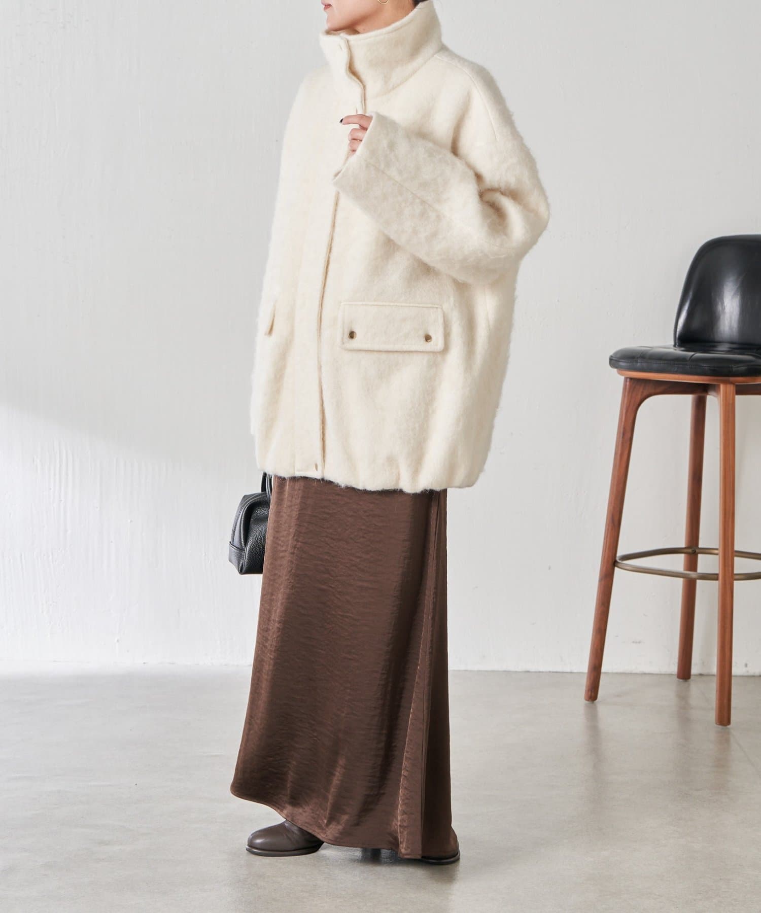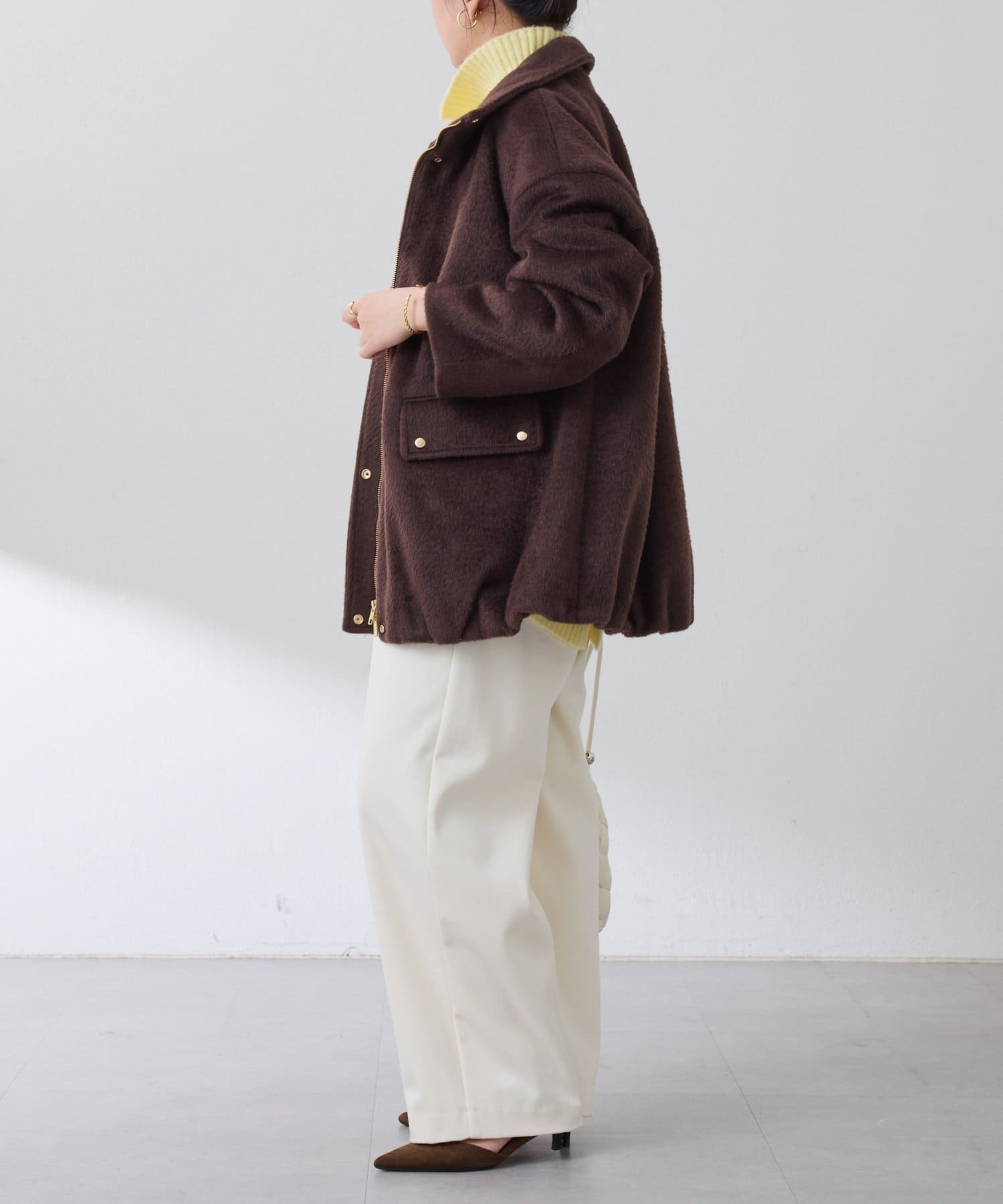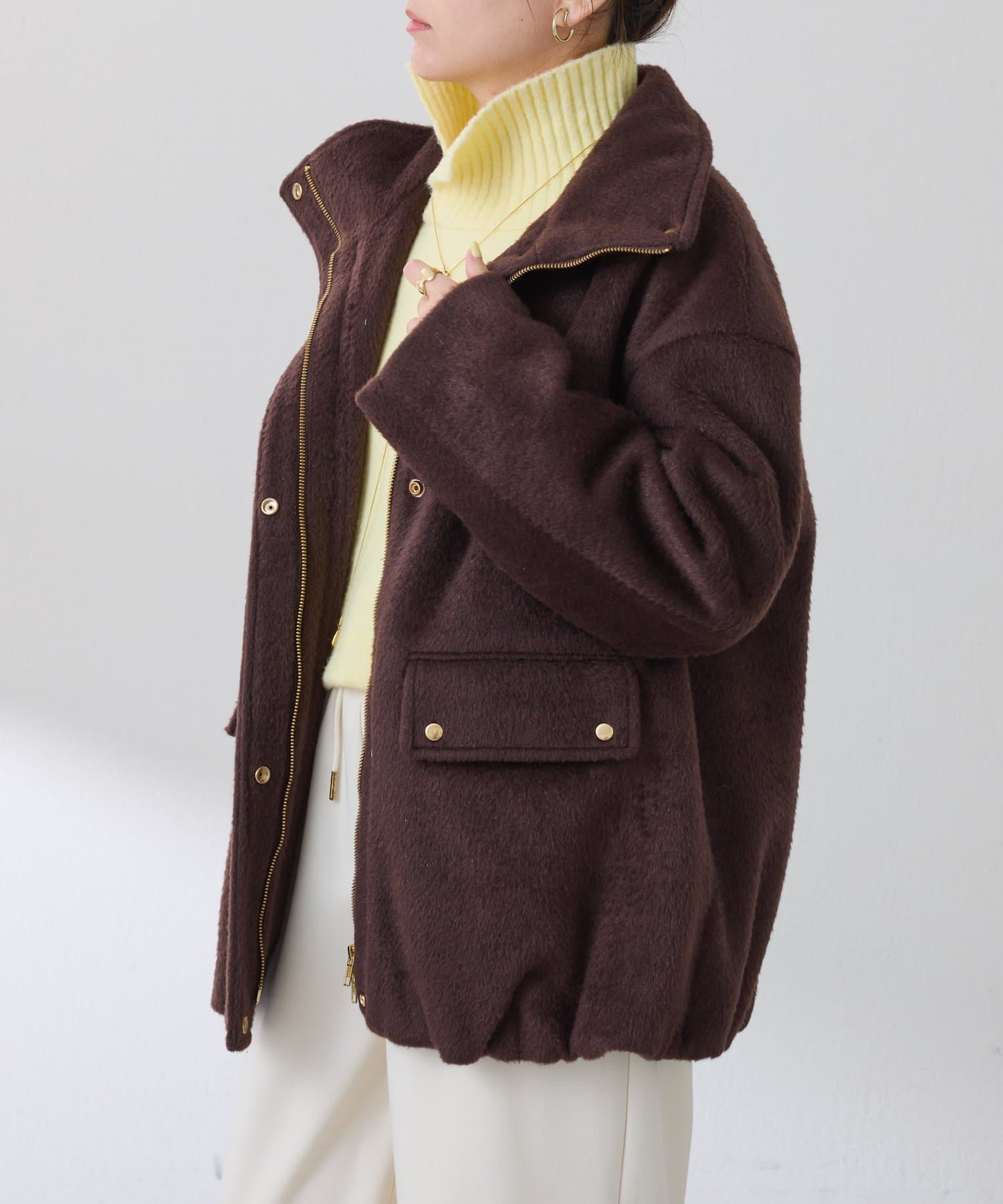 ・女性らしいシャギー素材でブルゾンライクなデザインにすることでカジュアルにも着やすいです。