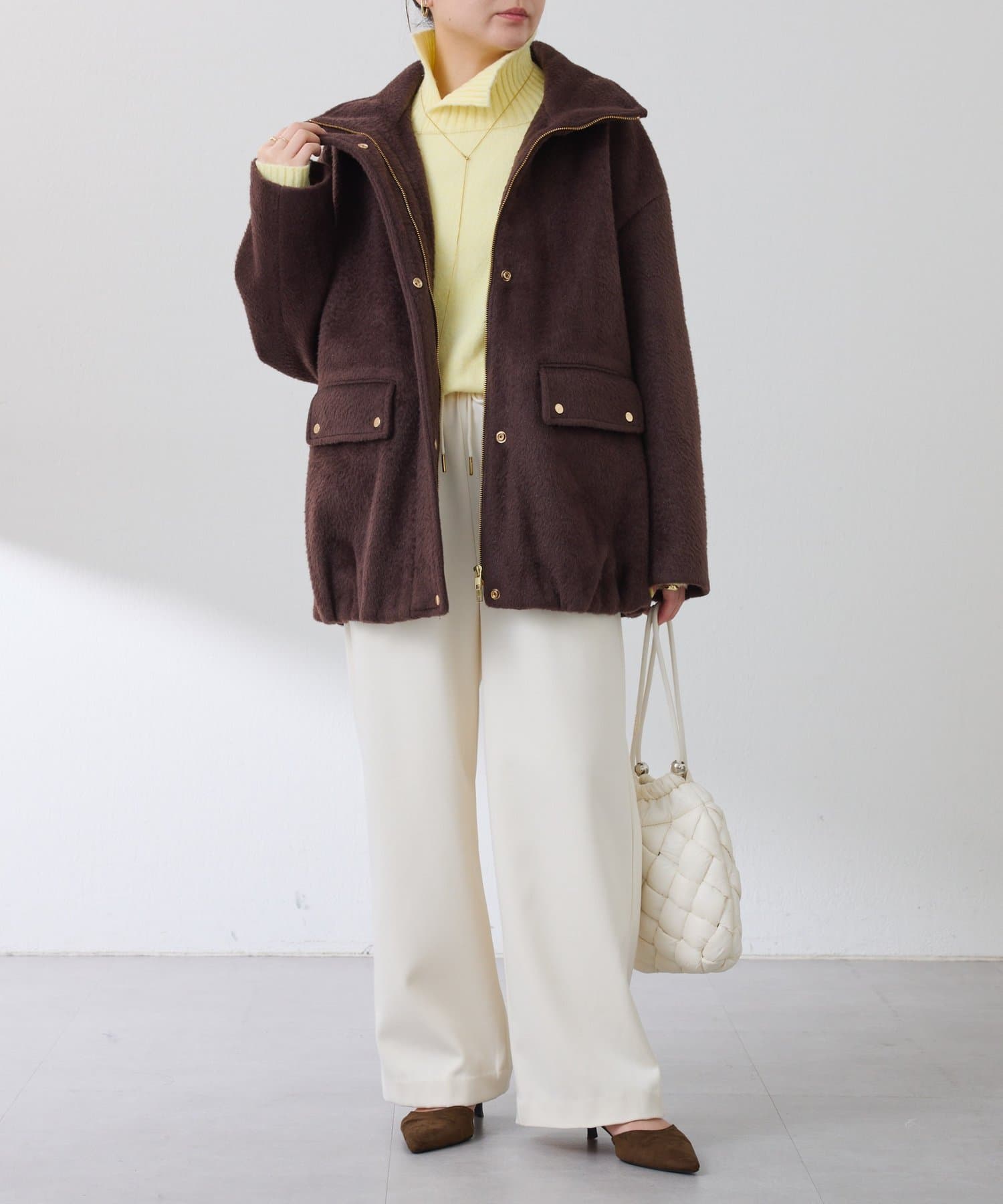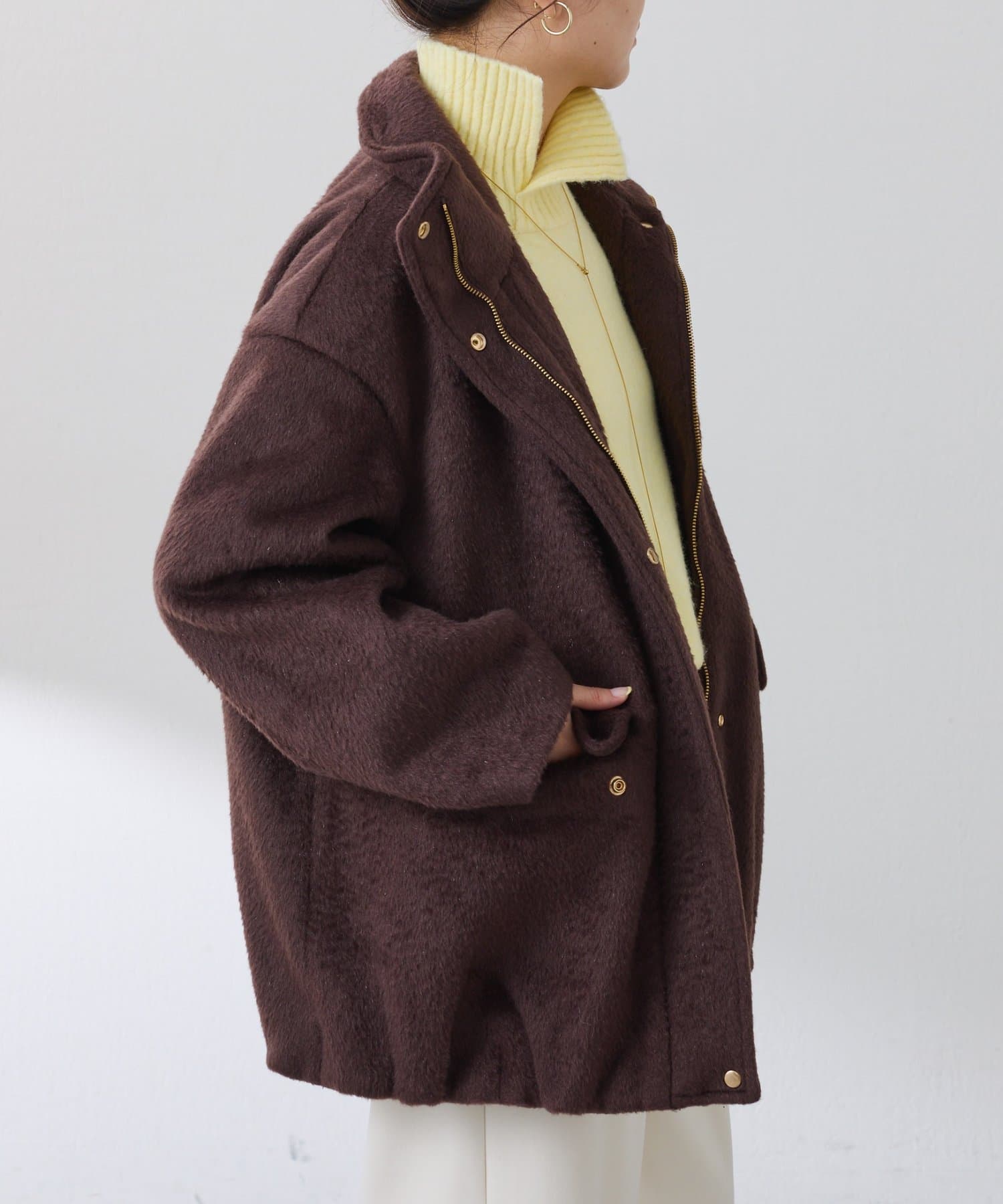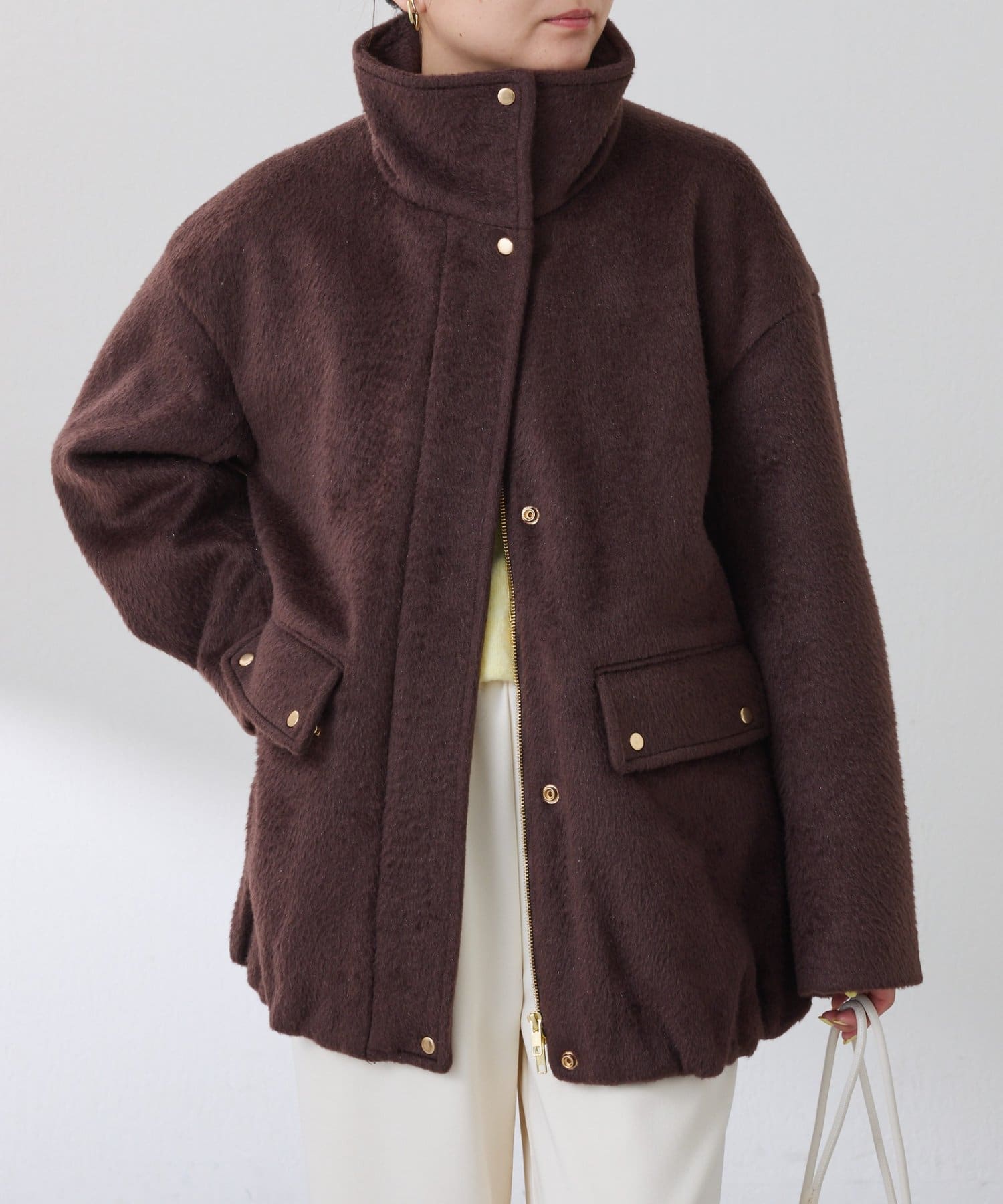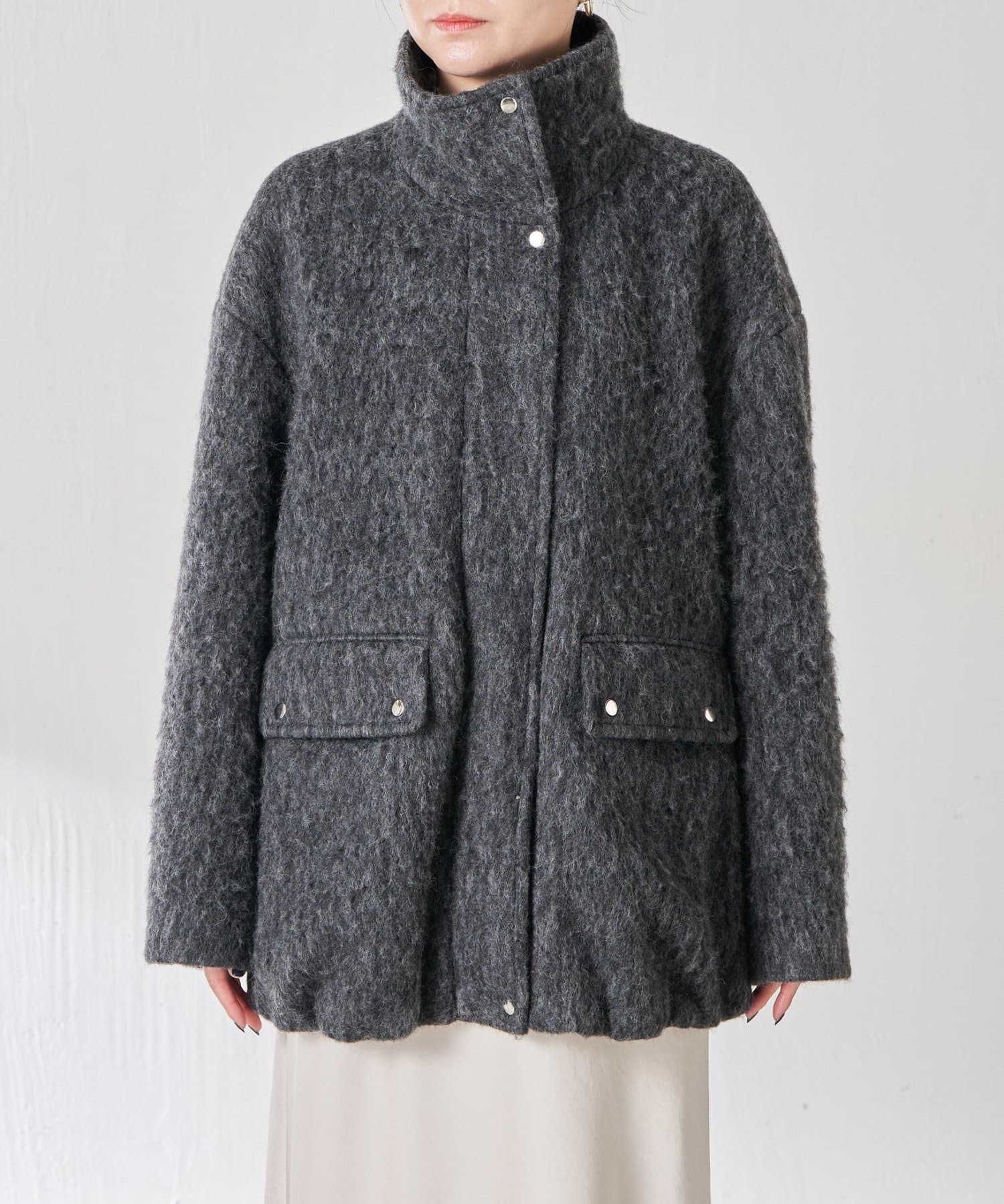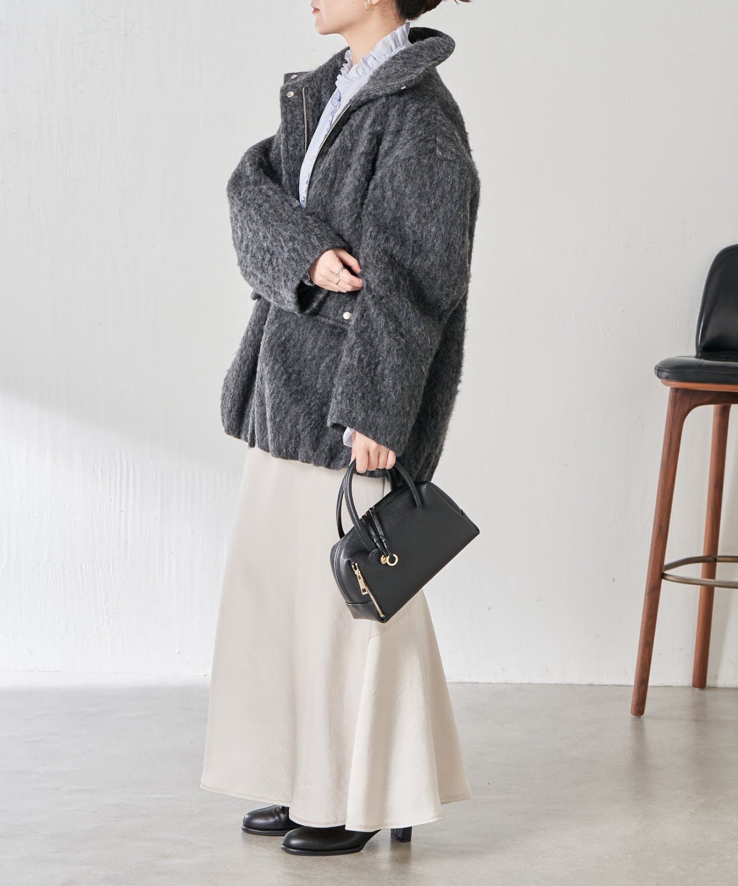 ・女性らしいシャギー素材でブルゾンライクなデザインにすることでカジュアルにも着やすいです。