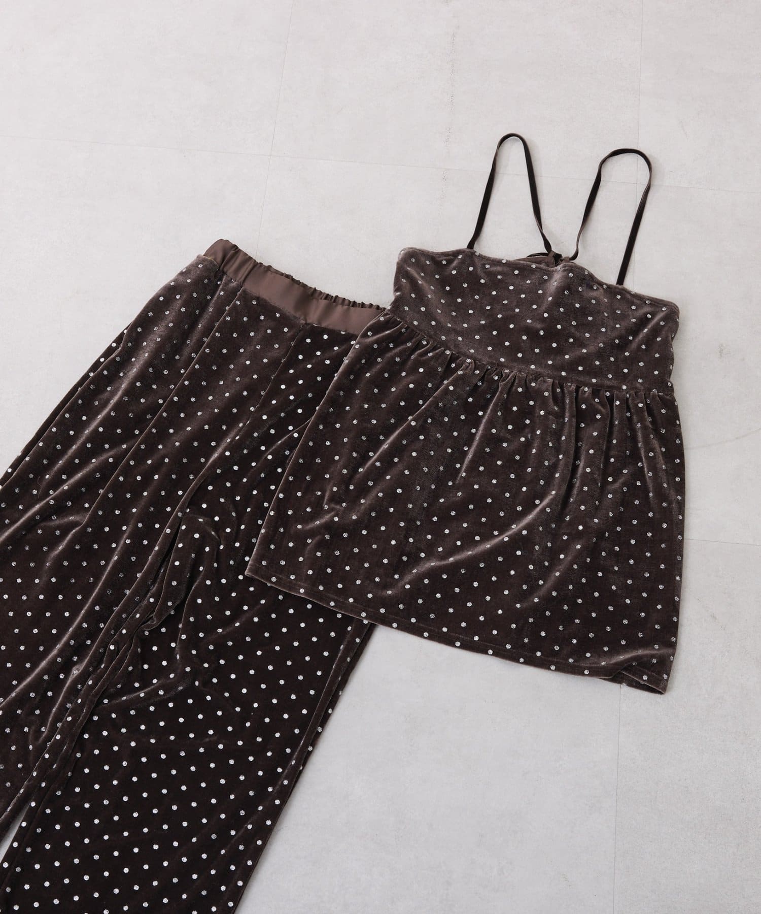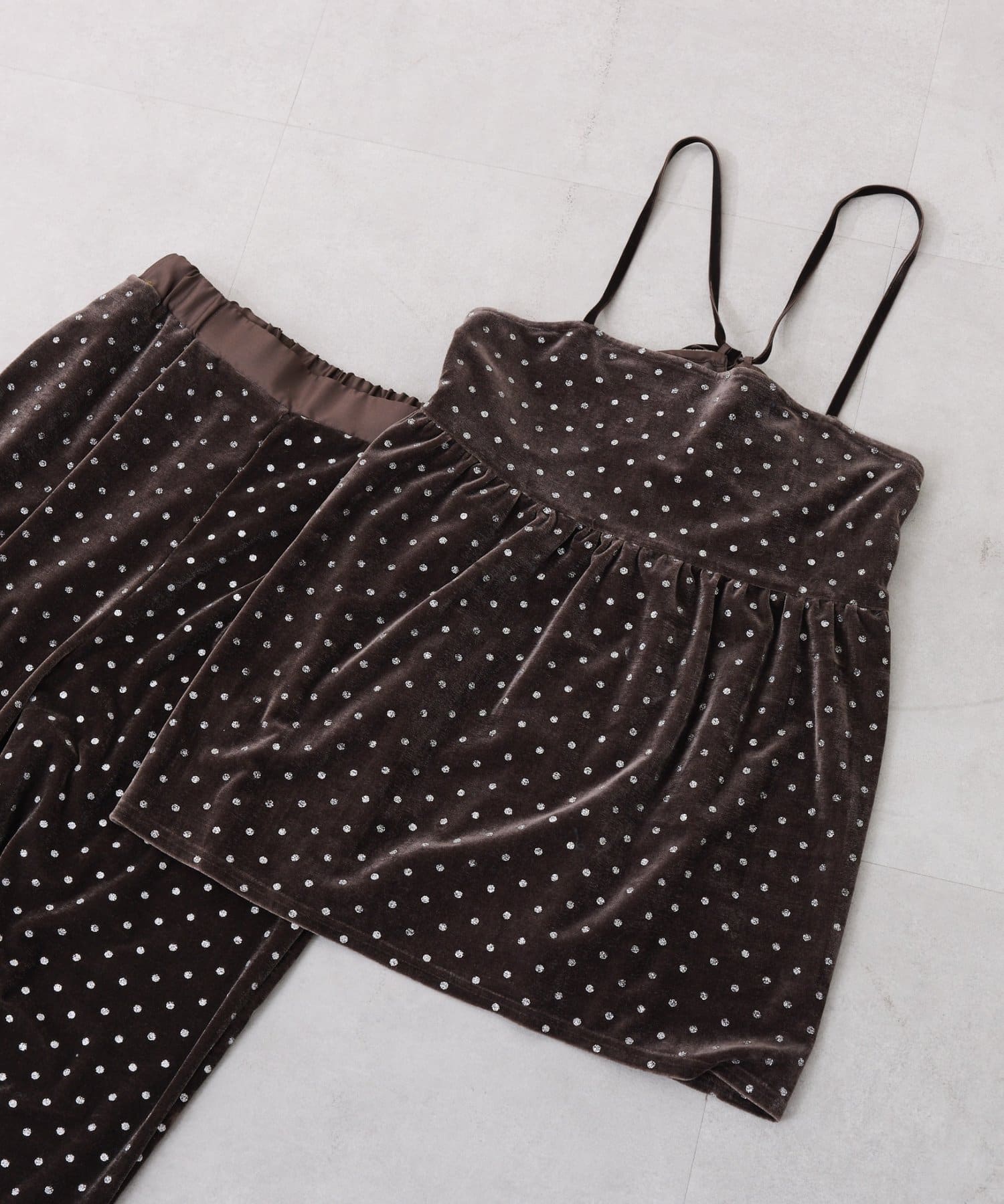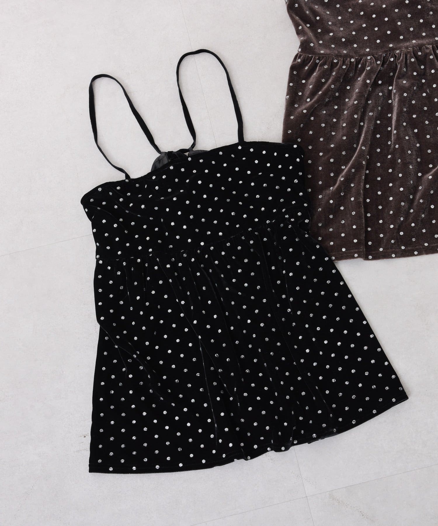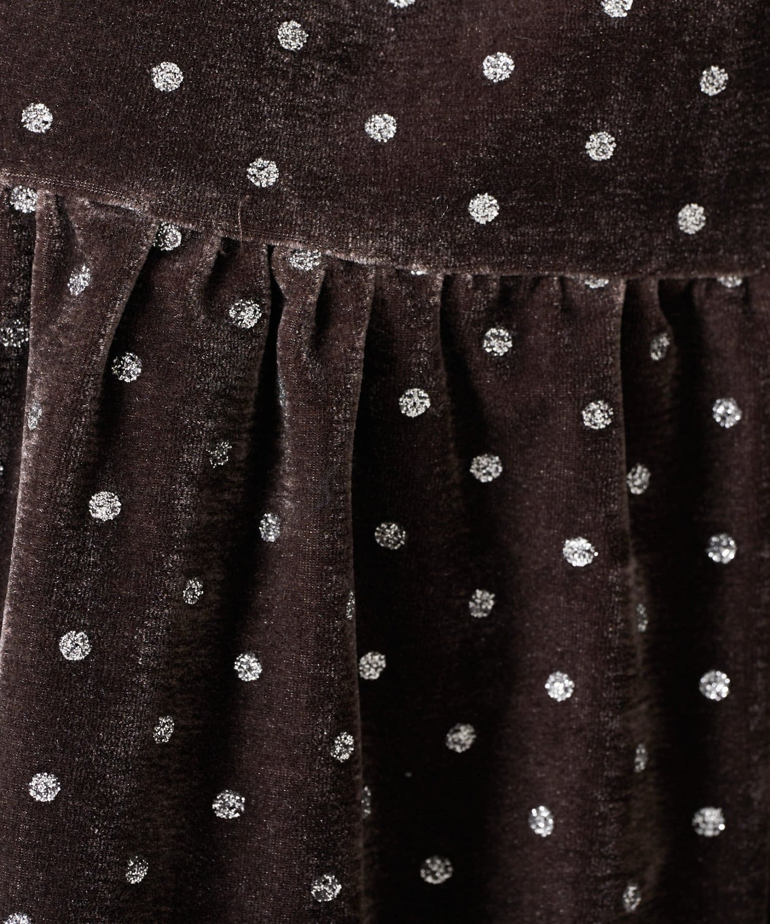 ・ベロア素材にグリッターのドットをプリントし、華やかな印象に仕上げました。