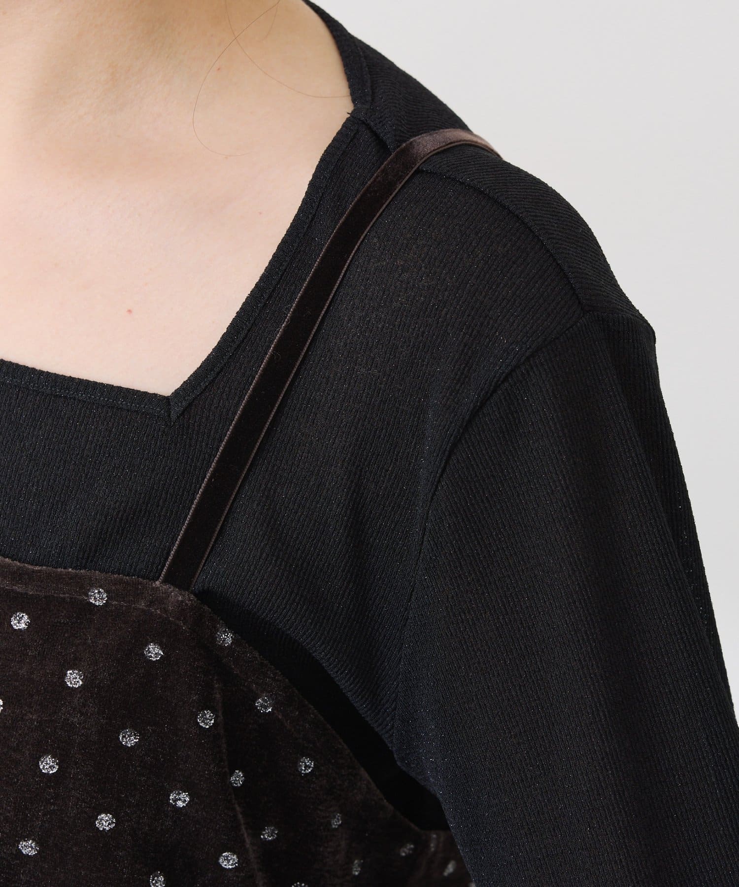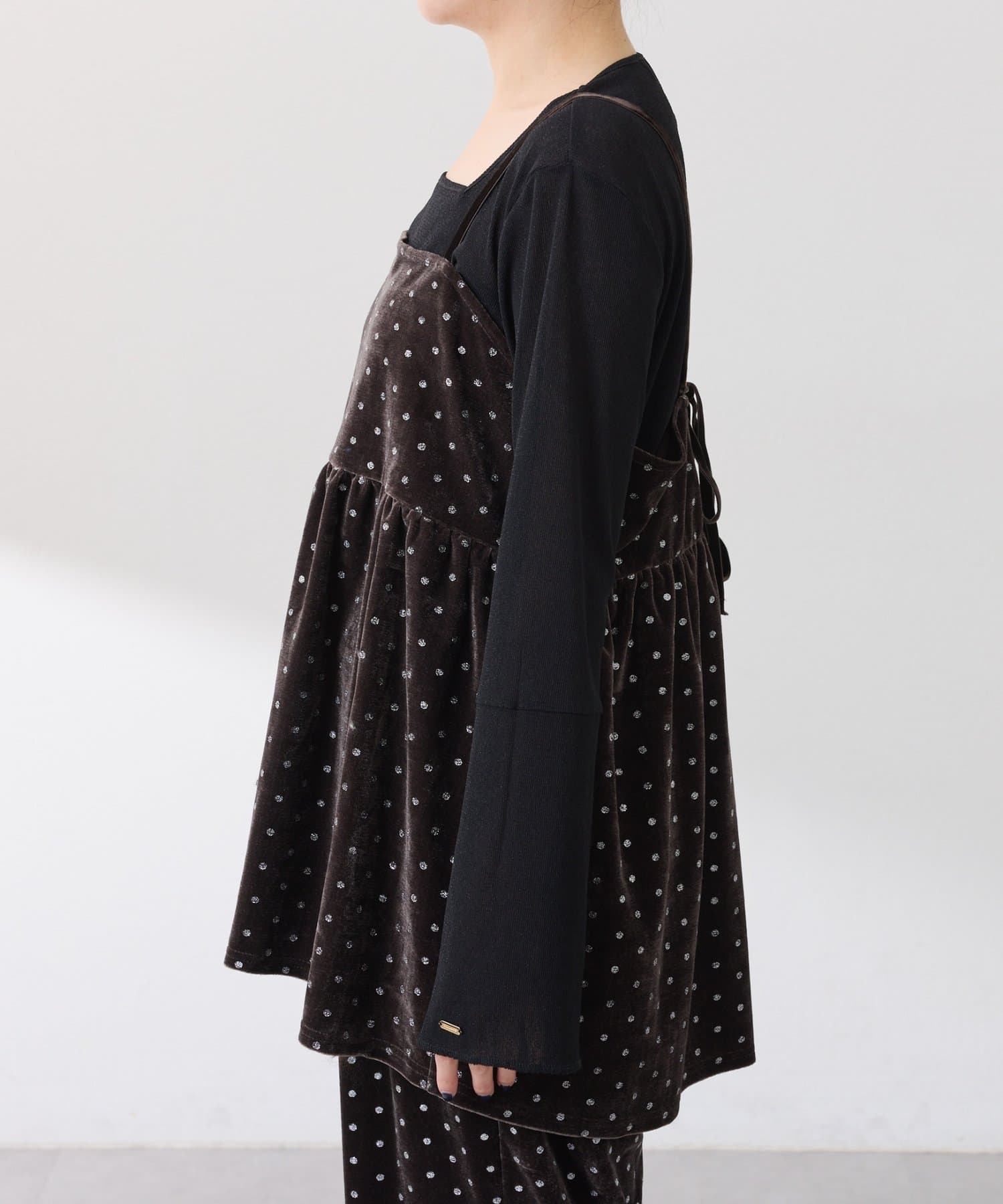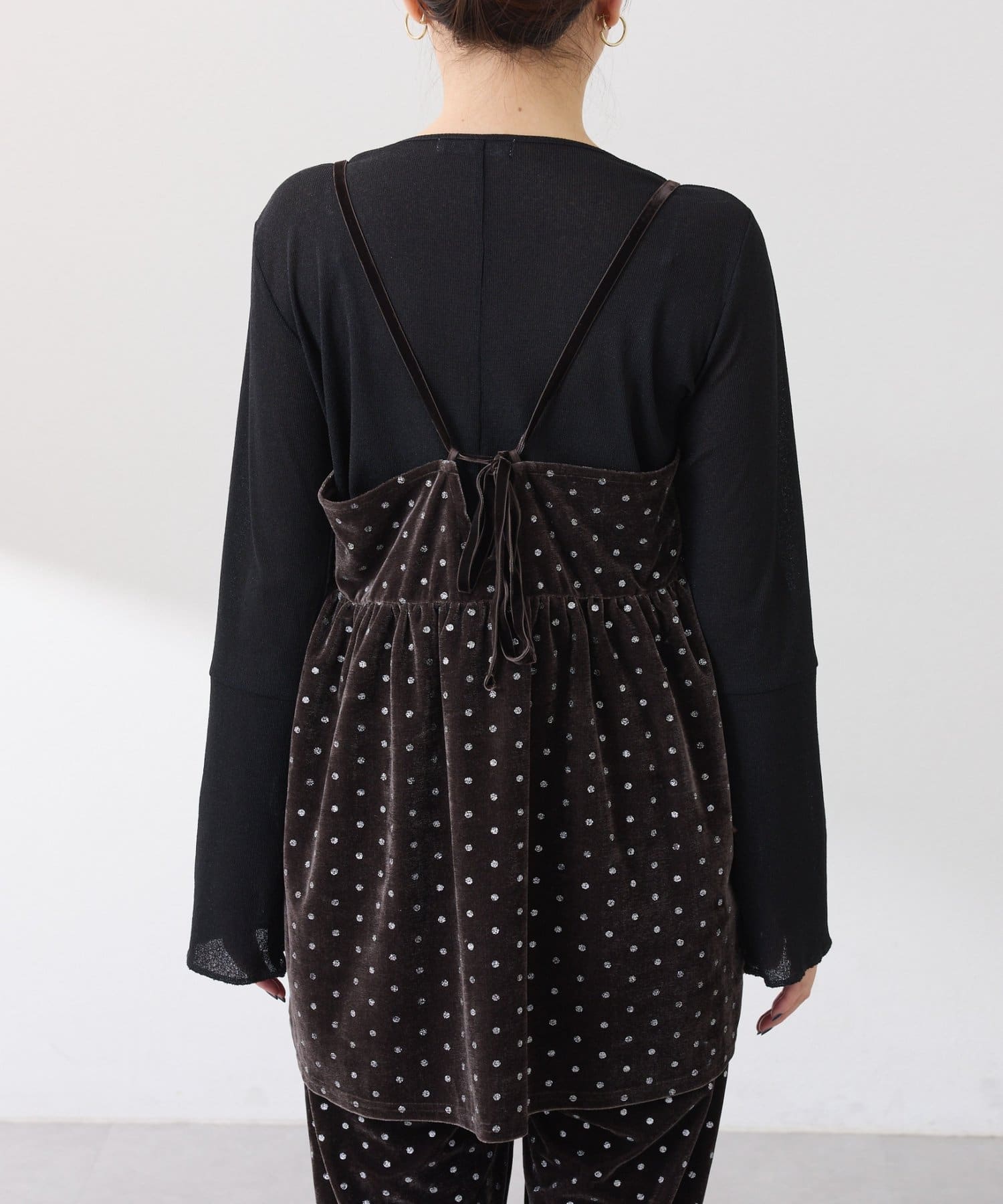 ・キャミソールは、リボンを結んで留める仕様。長さ調整できるので幅広い体型の方におすすめ。