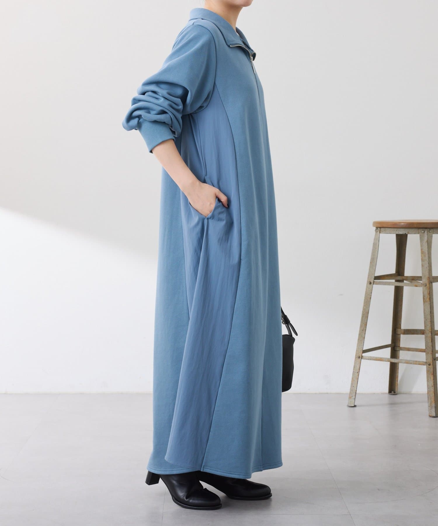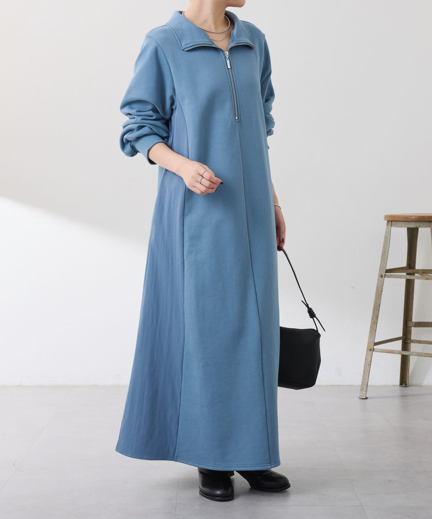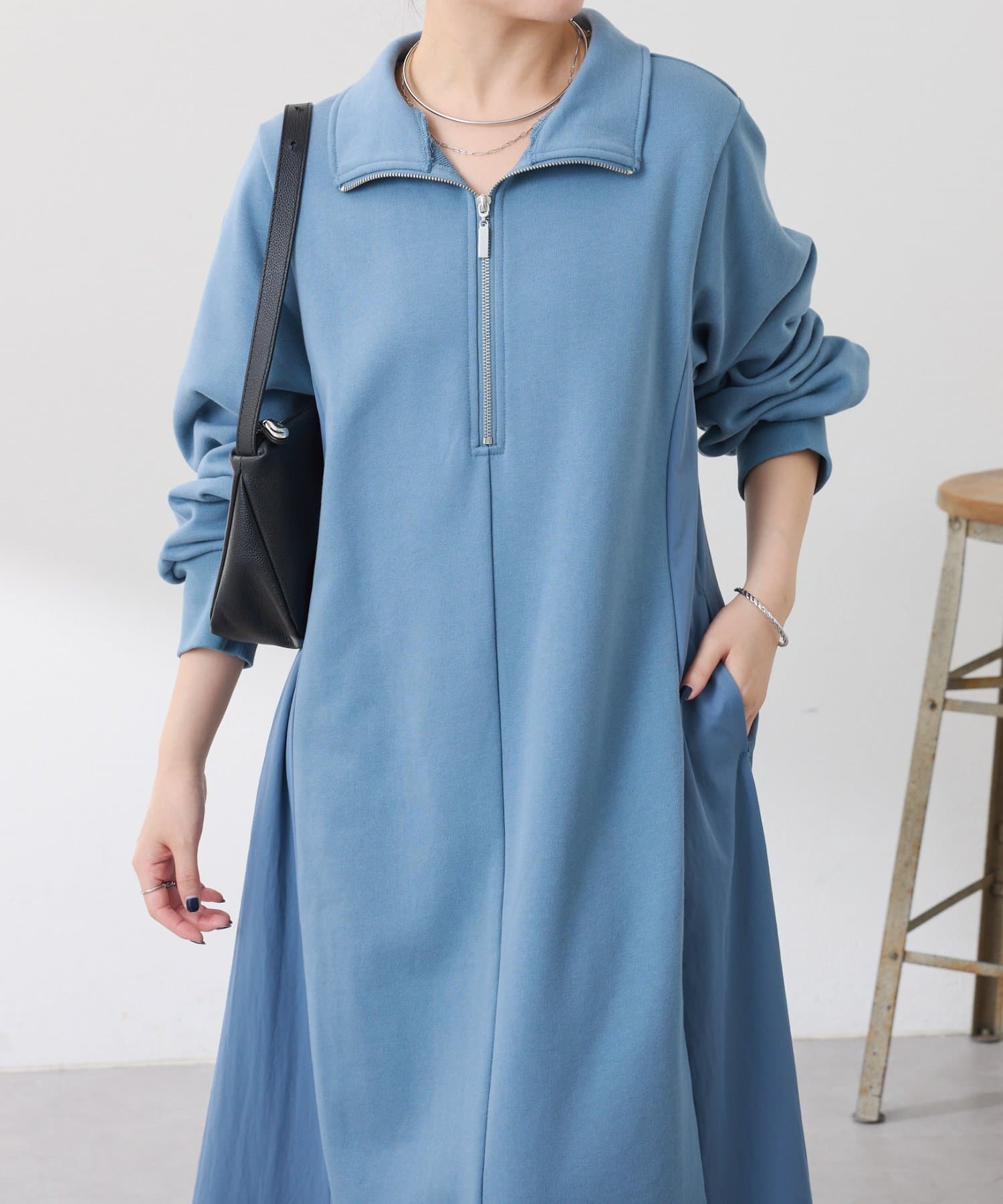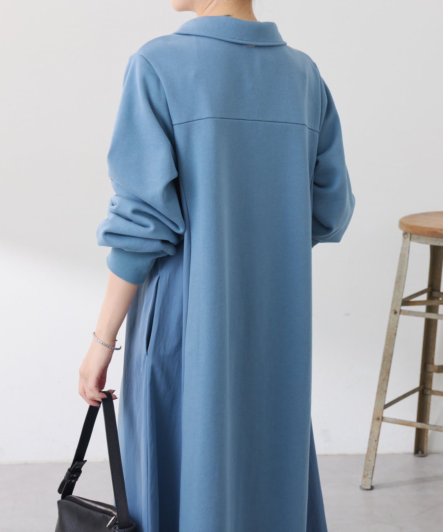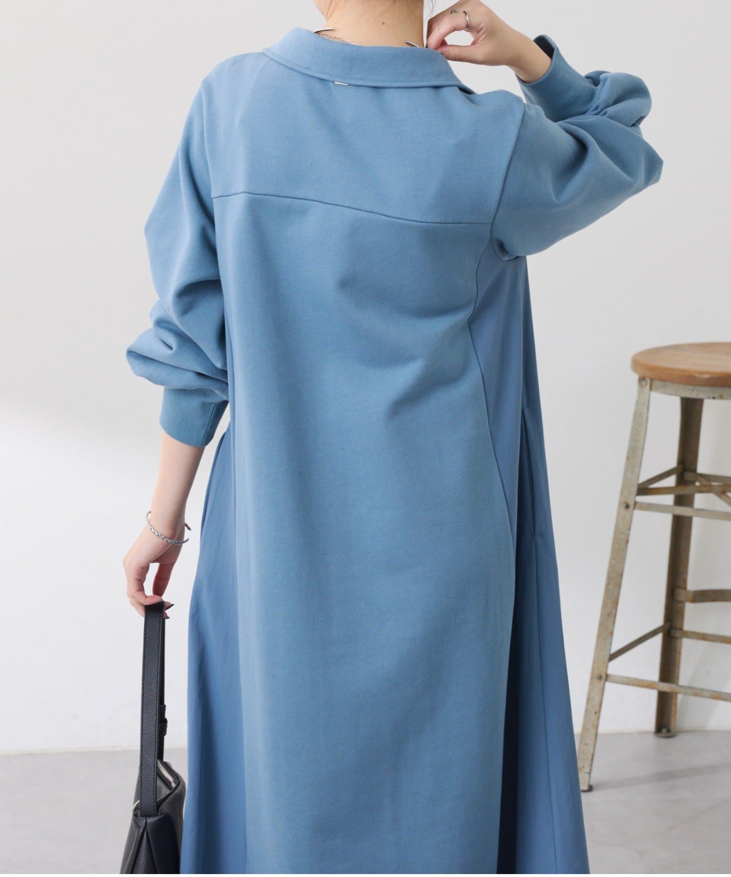 1枚で着映えするスウェット×シャツのドッキングワンピース