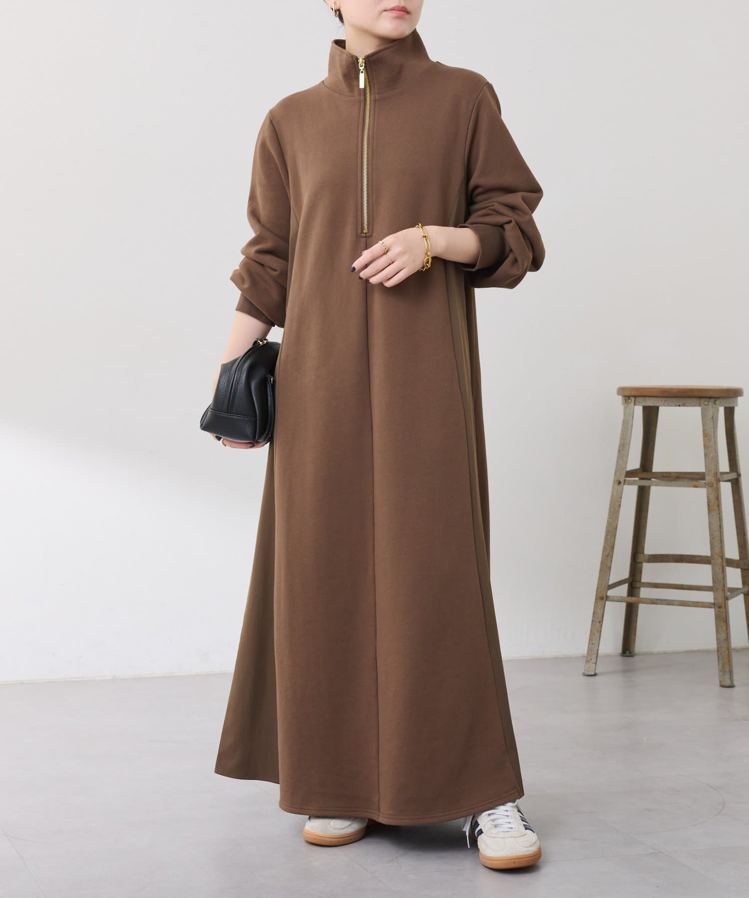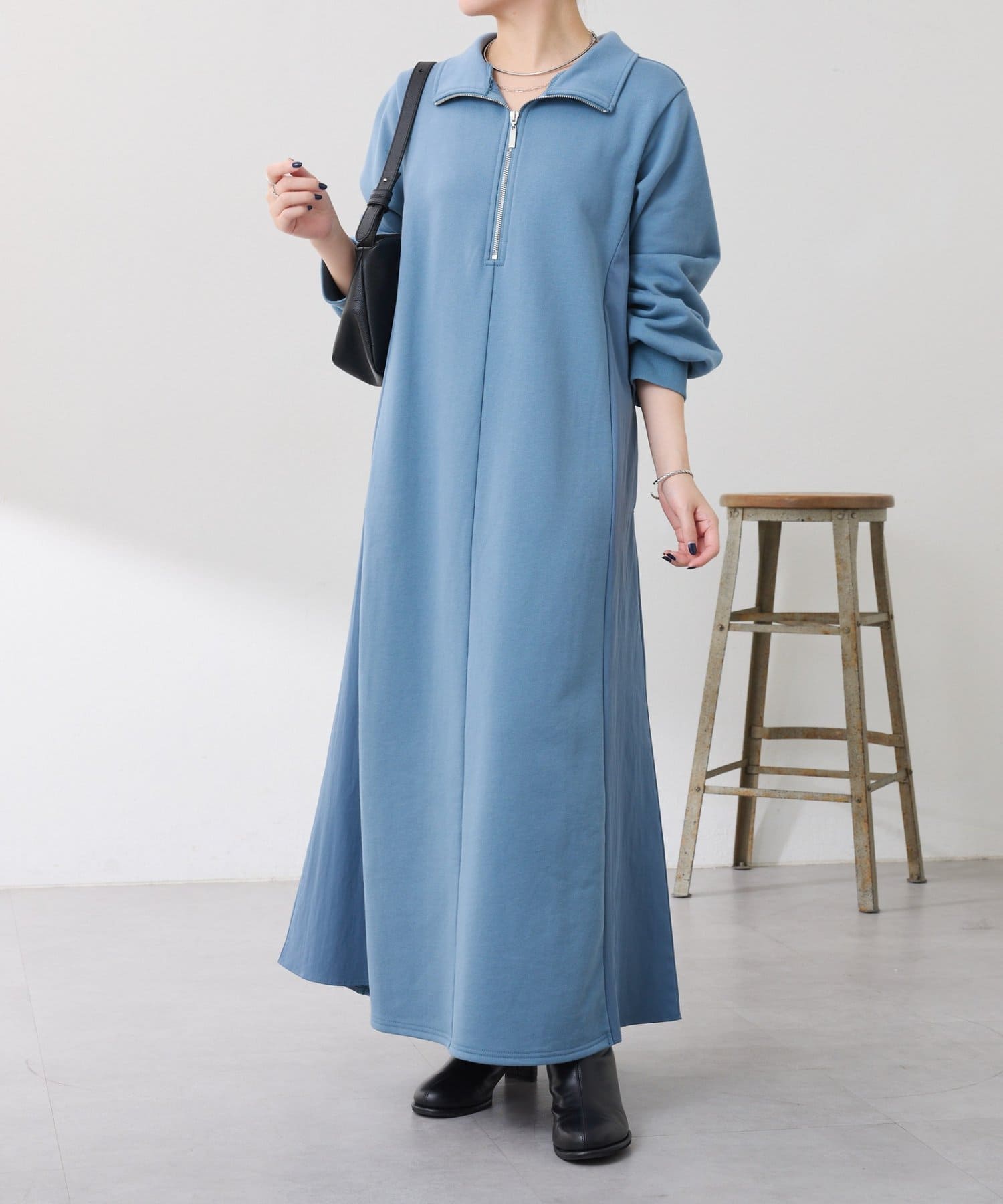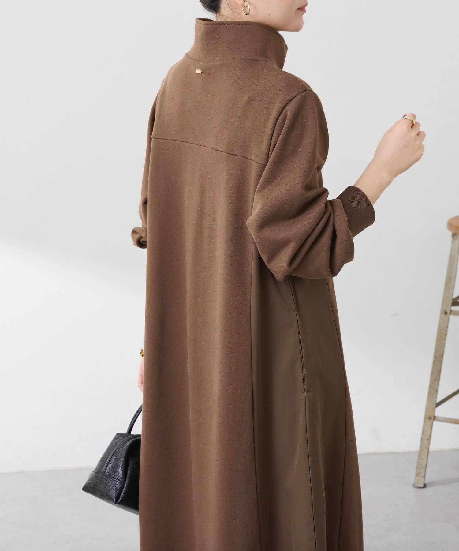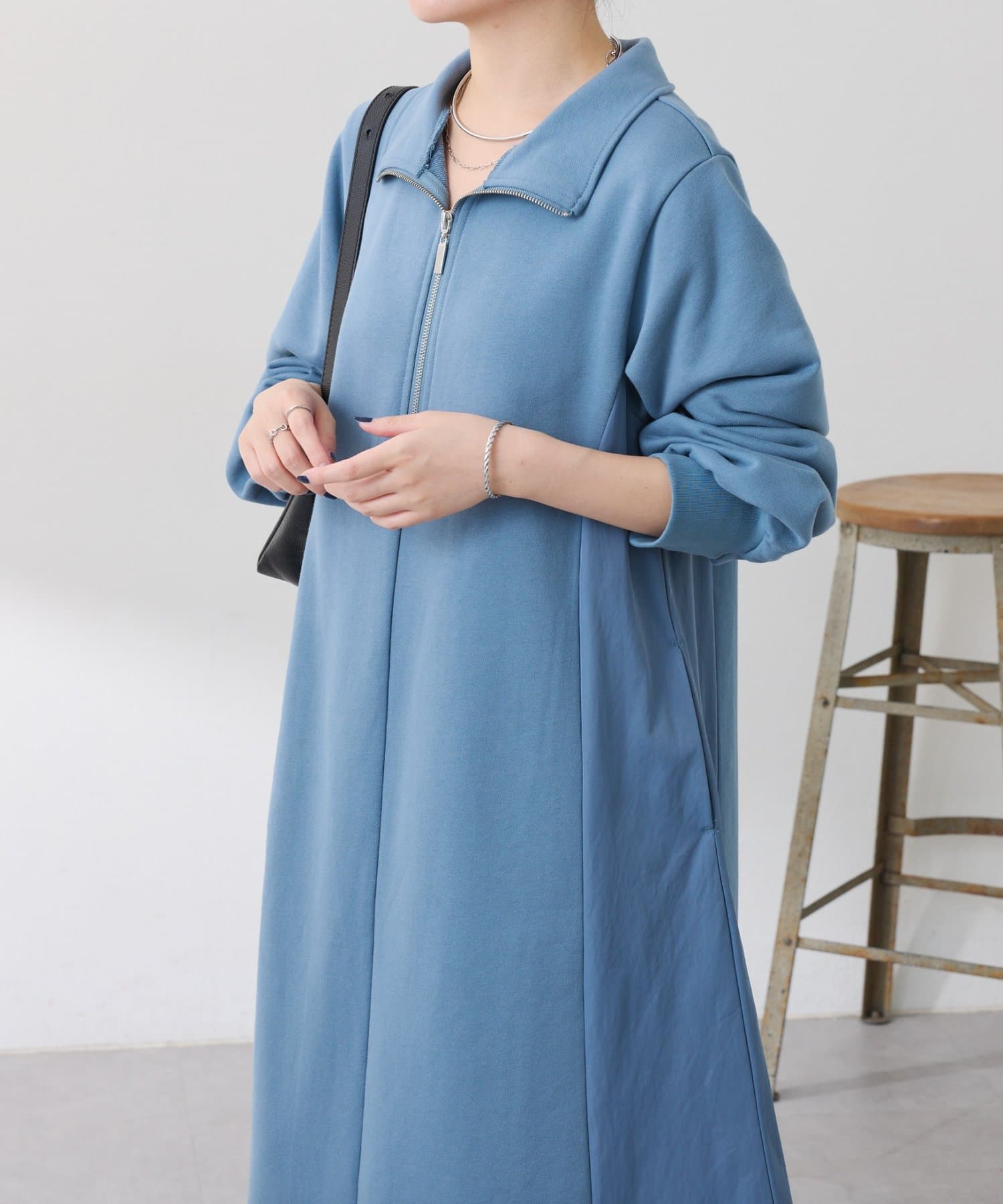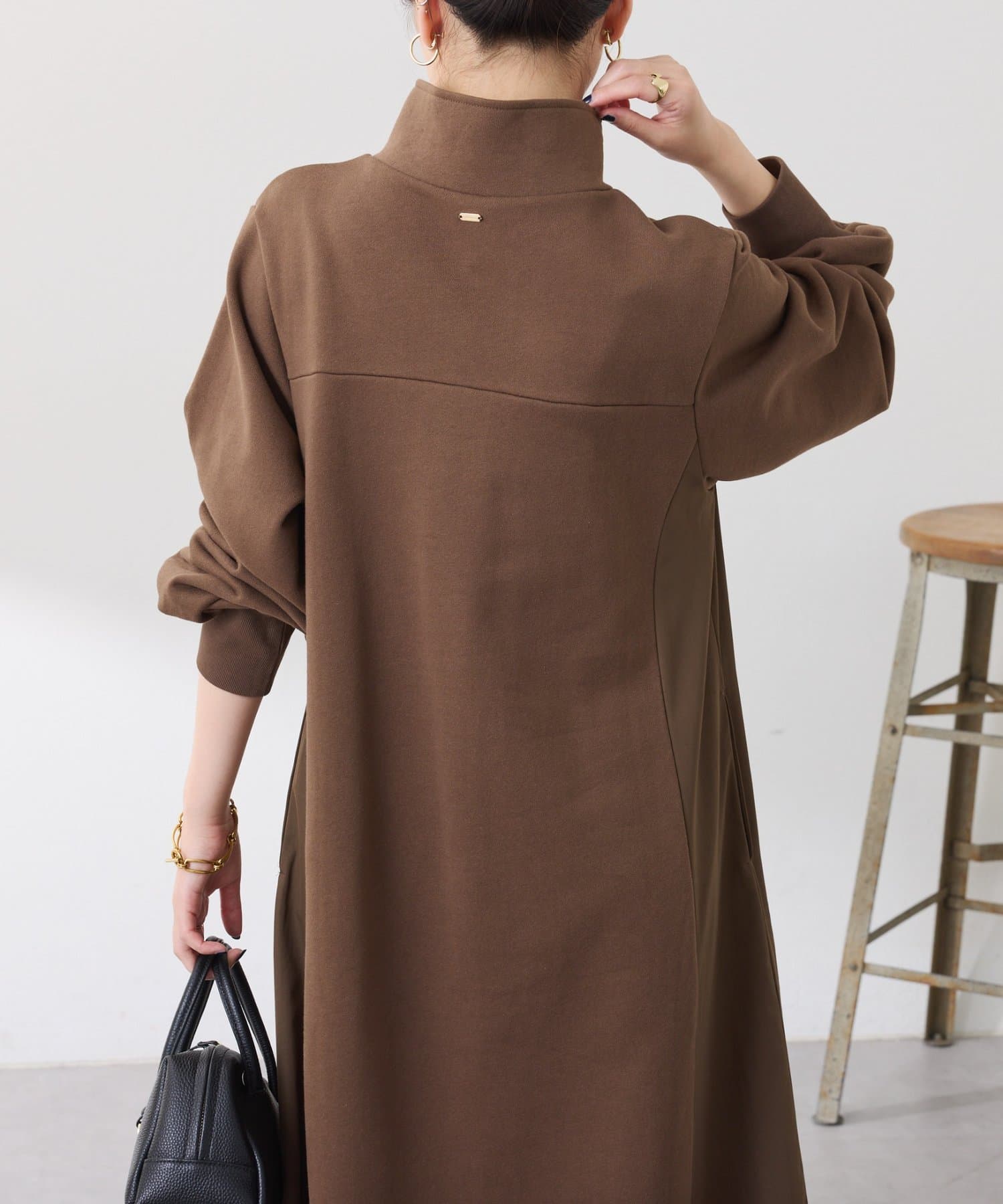 1枚で着映えするスウェット×シャツのドッキングワンピース