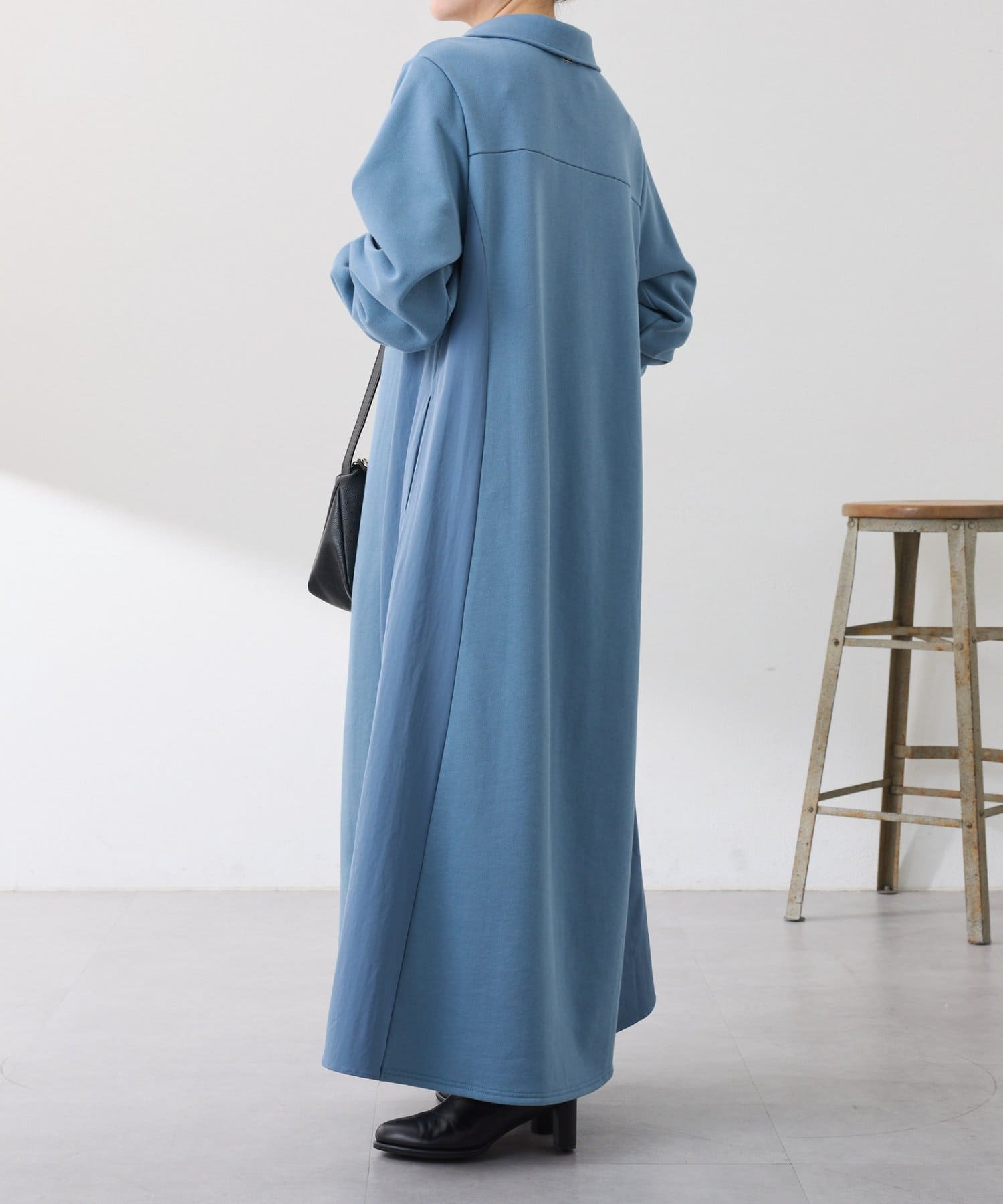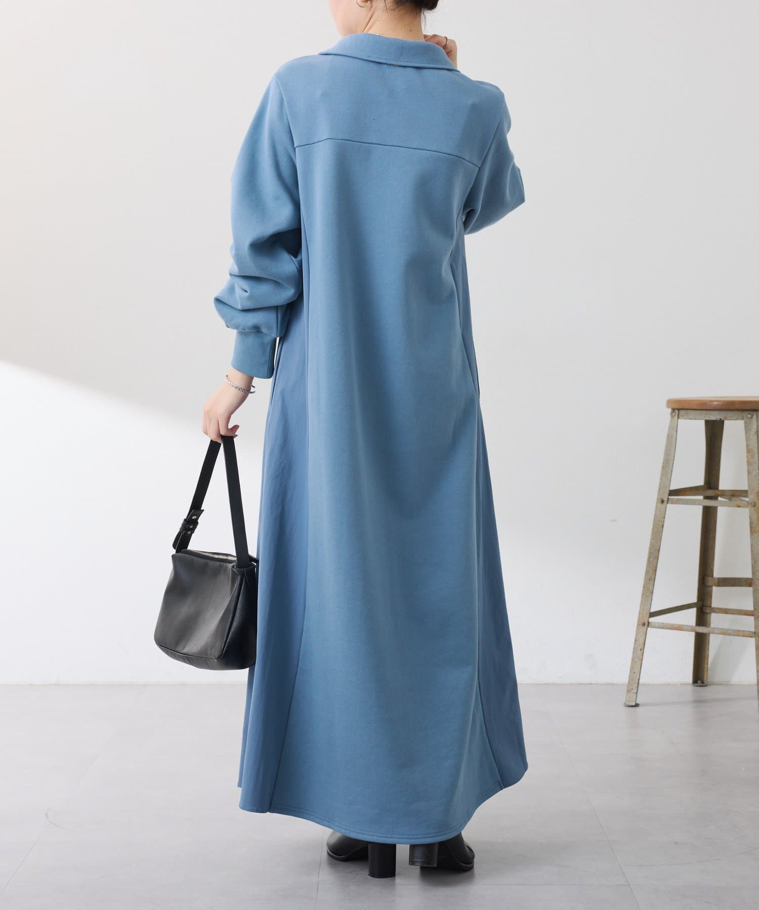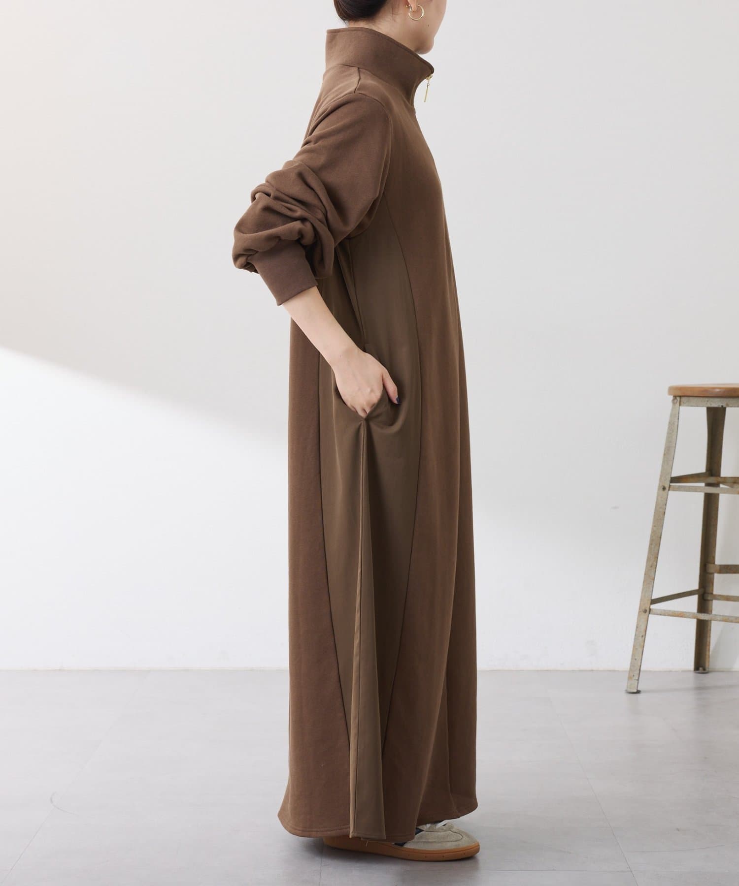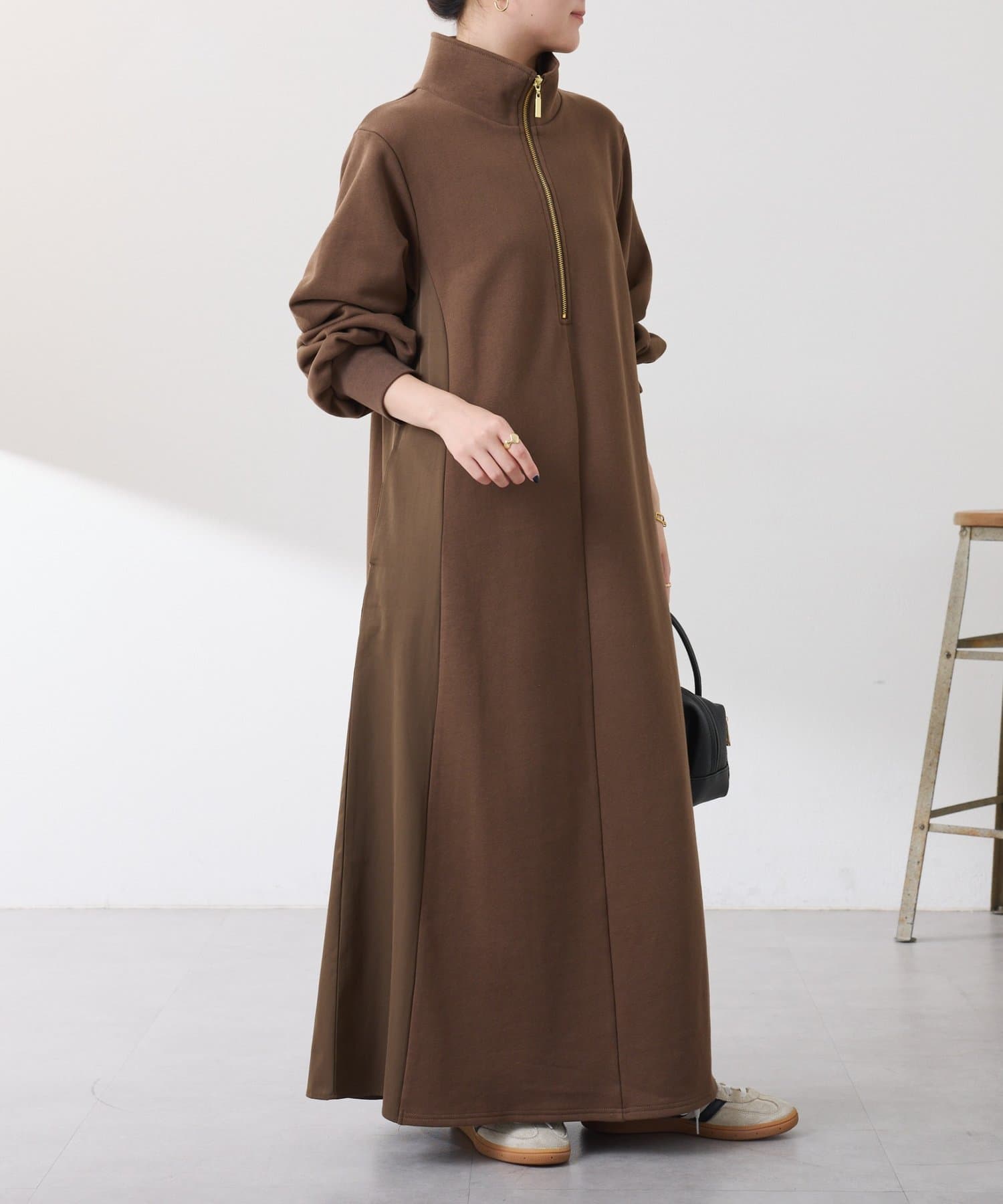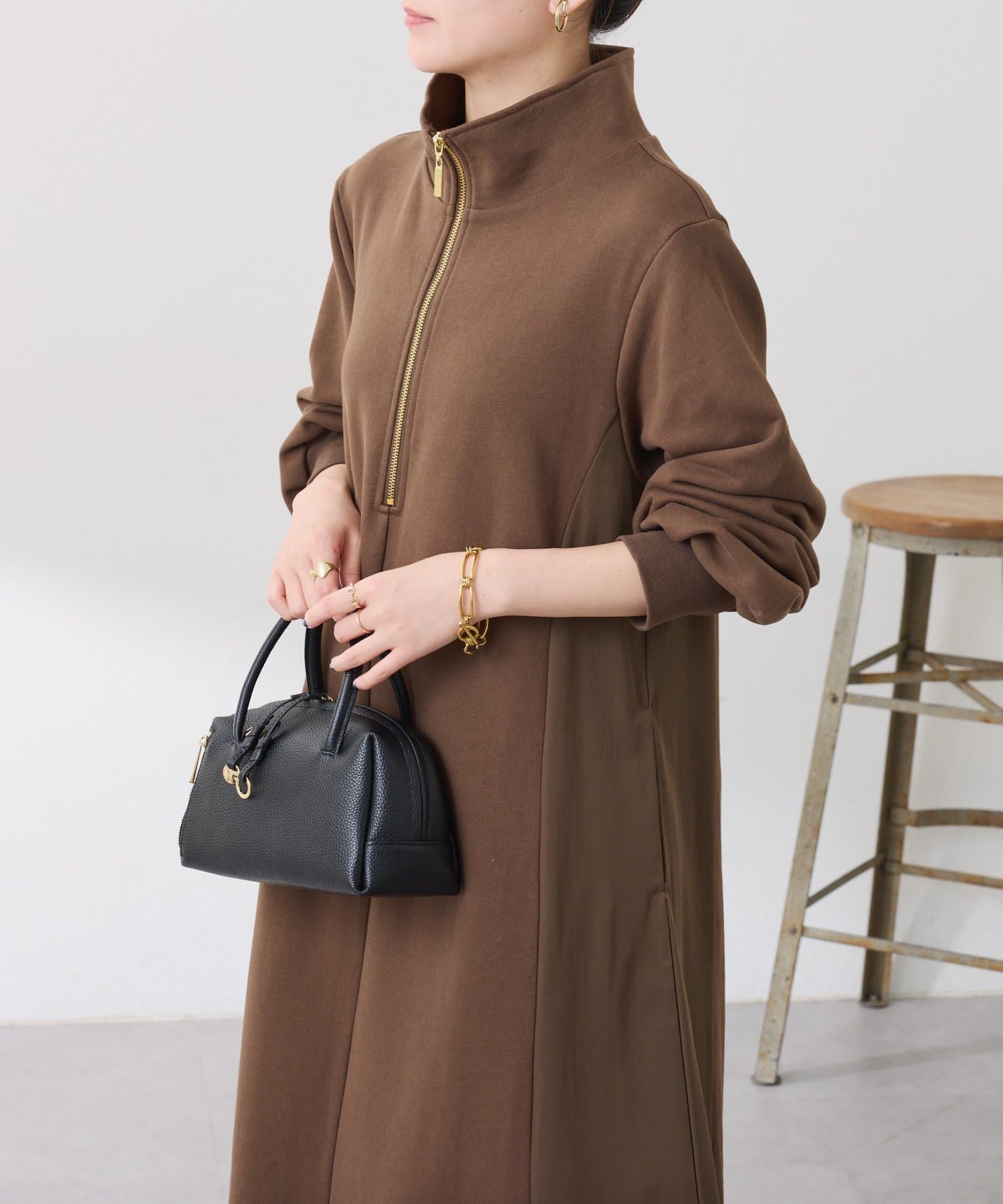 1枚で着映えするスウェット×シャツのドッキングワンピース
