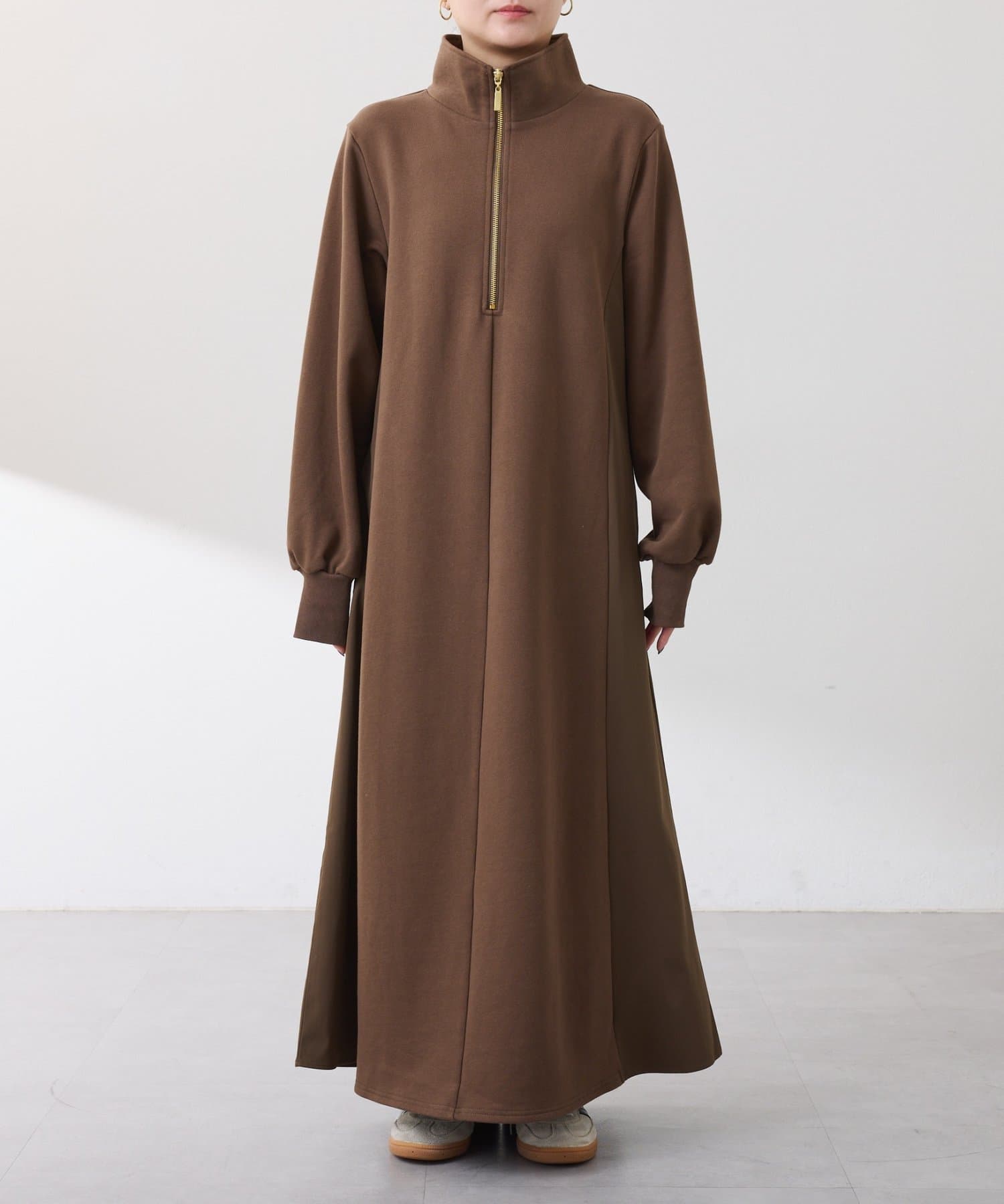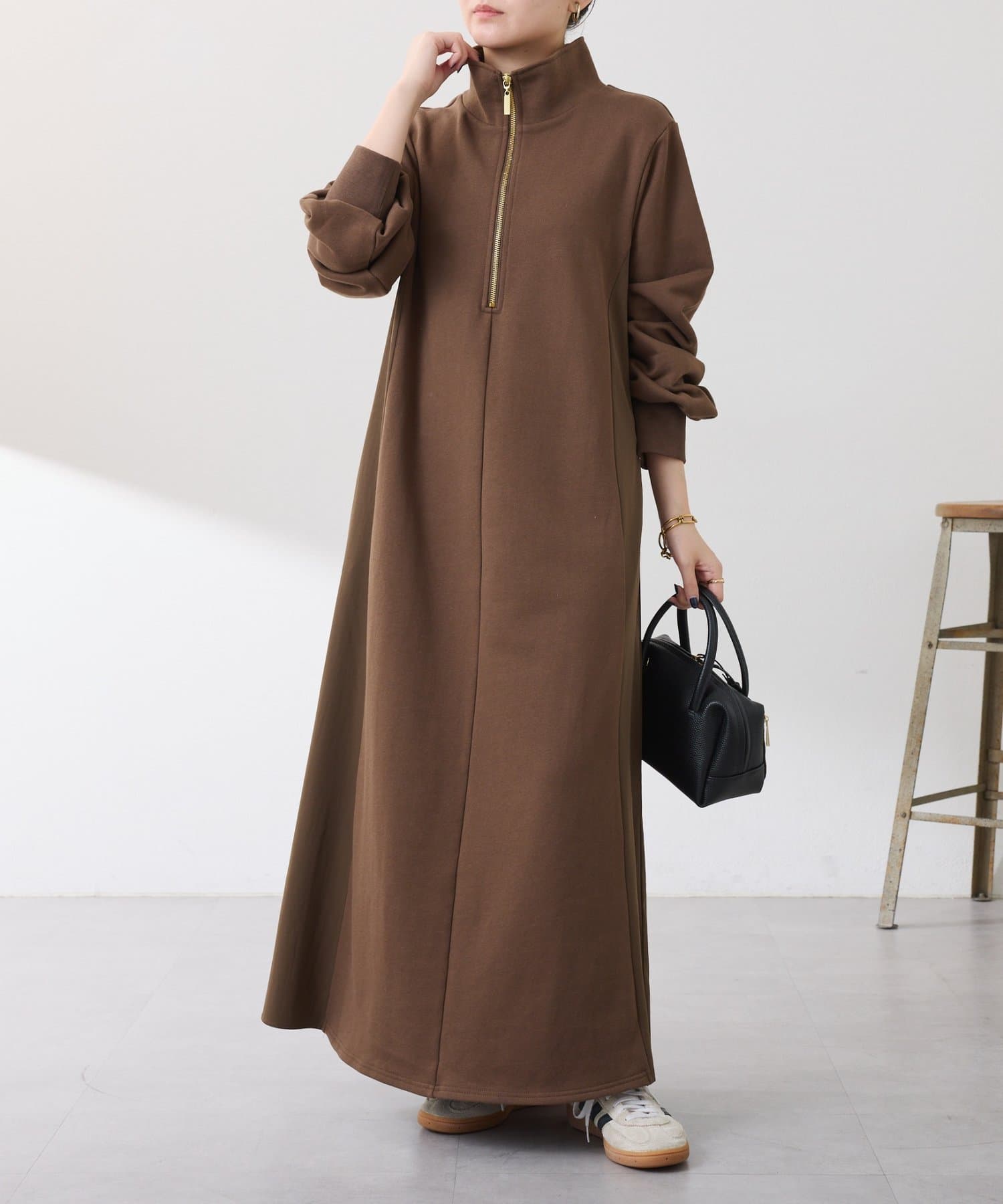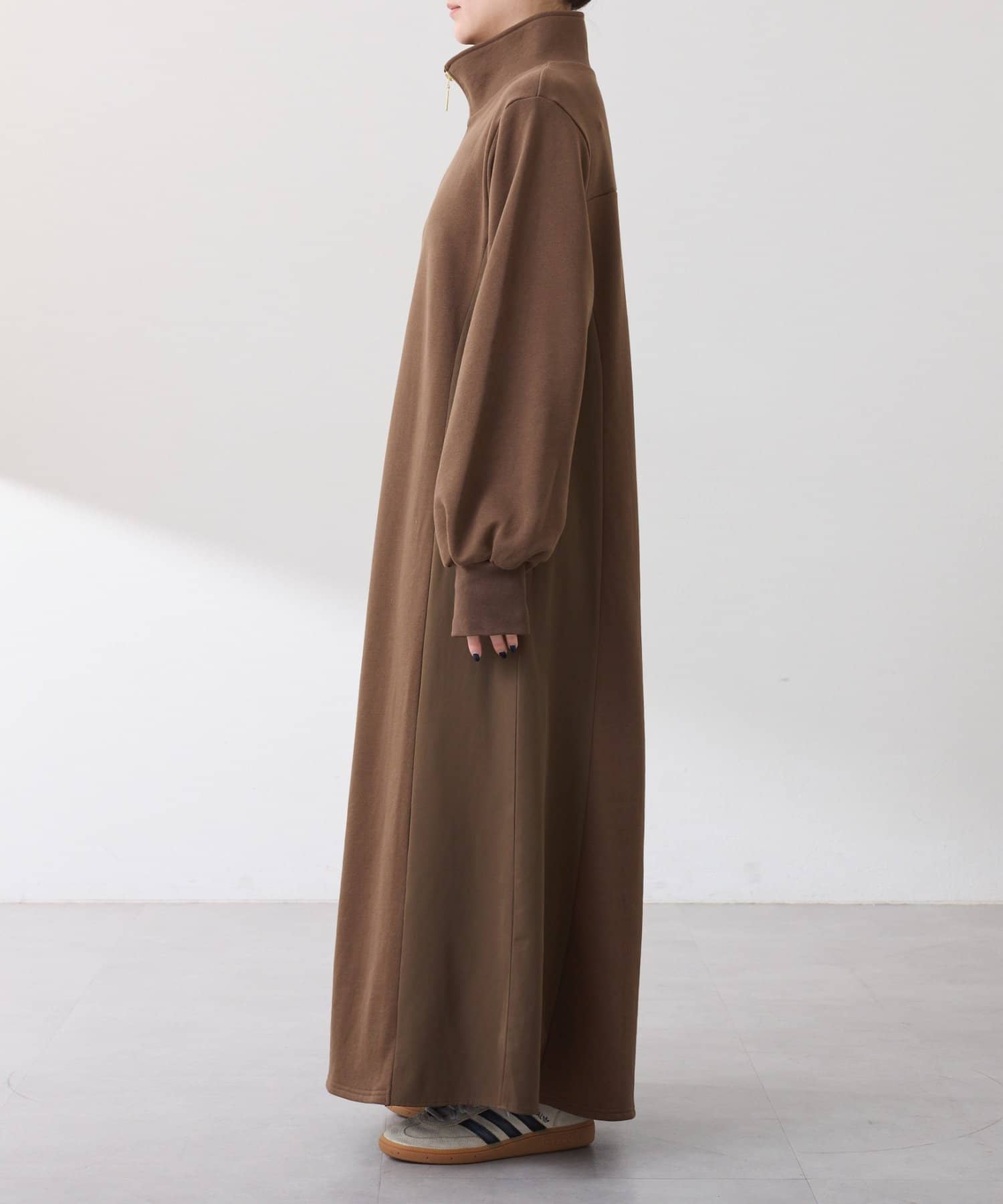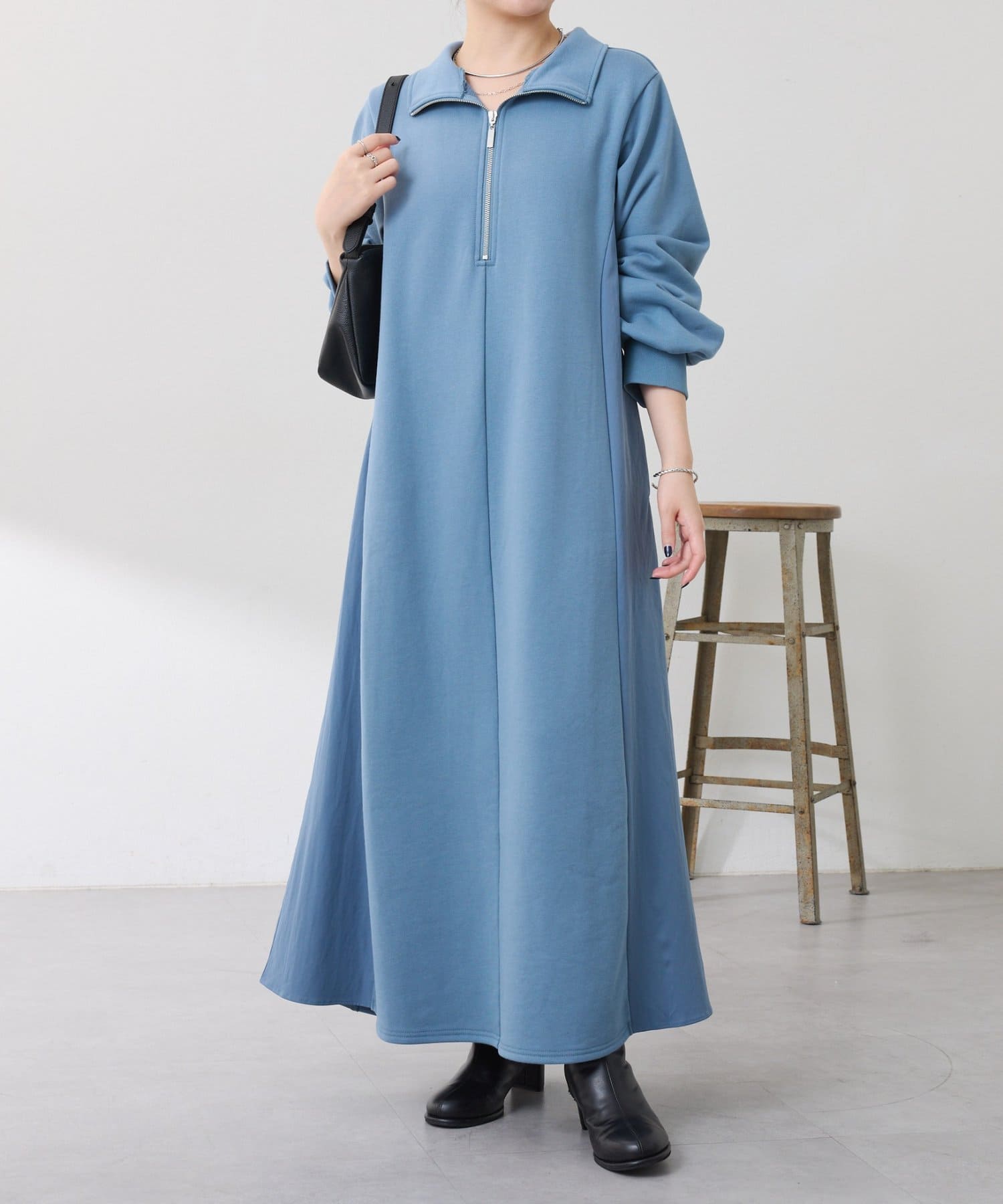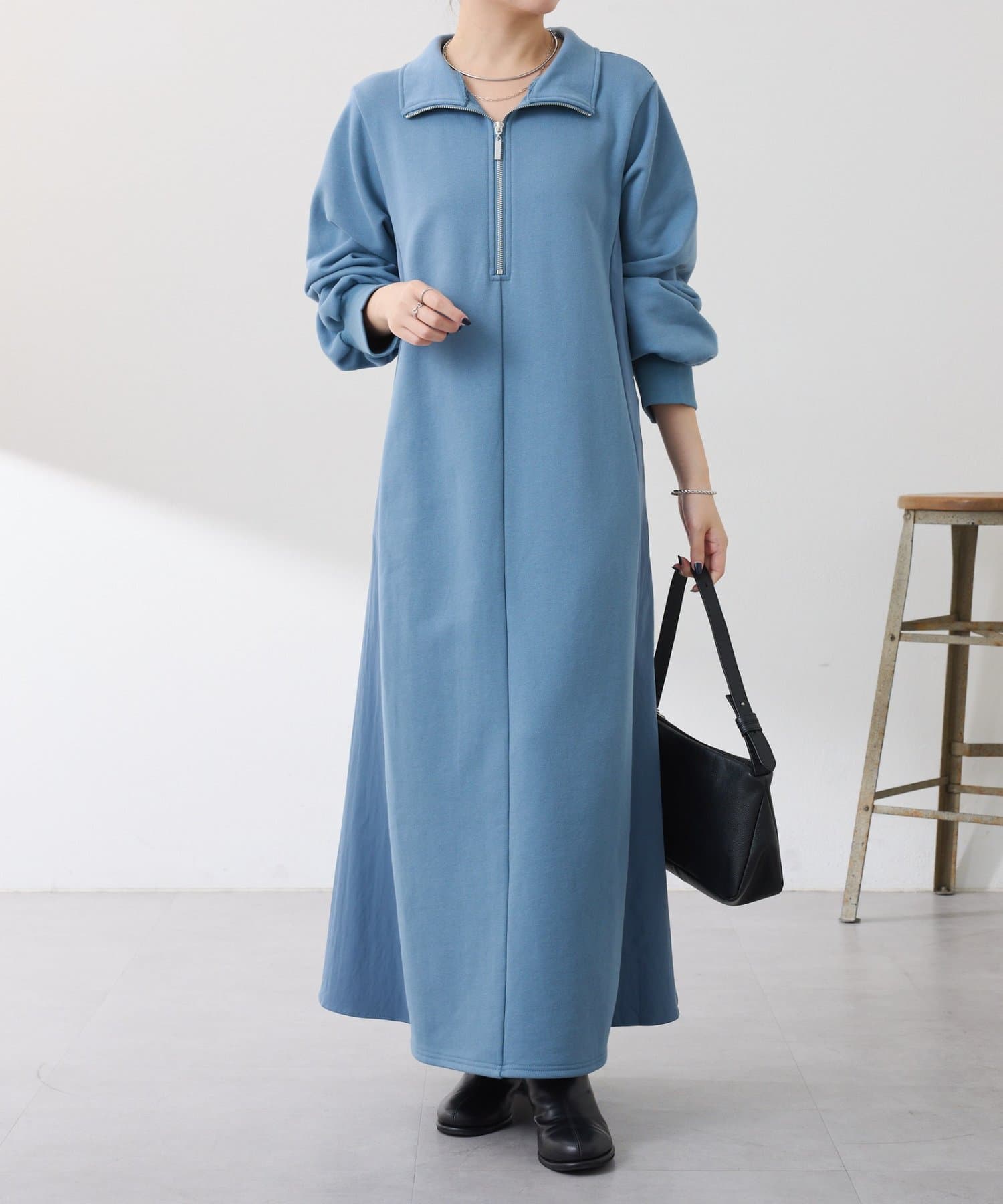 1枚で着映えするスウェット×シャツのドッキングワンピース