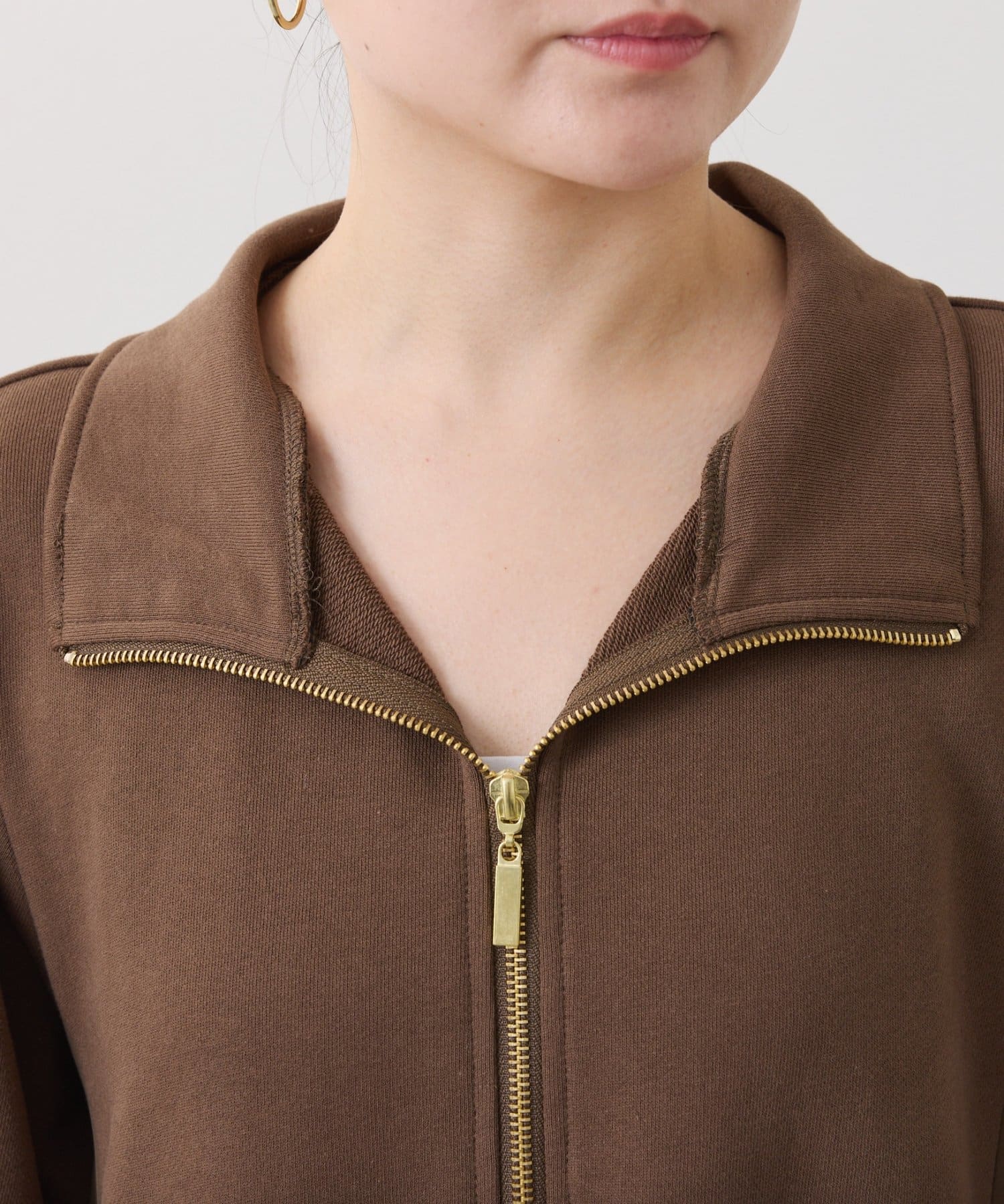 ・首元のジップを開けると顔周りがすっきり見え、抜け感が出ます。