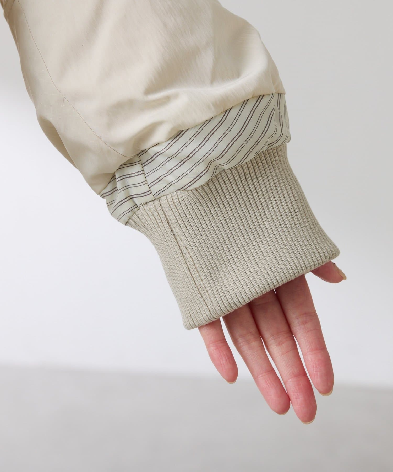 ・袖口はリブで上から生地を被せ、リブは見えない仕様になっています。風を防いでくれて気温が変わりやすい季節の嬉しいポイントです◎