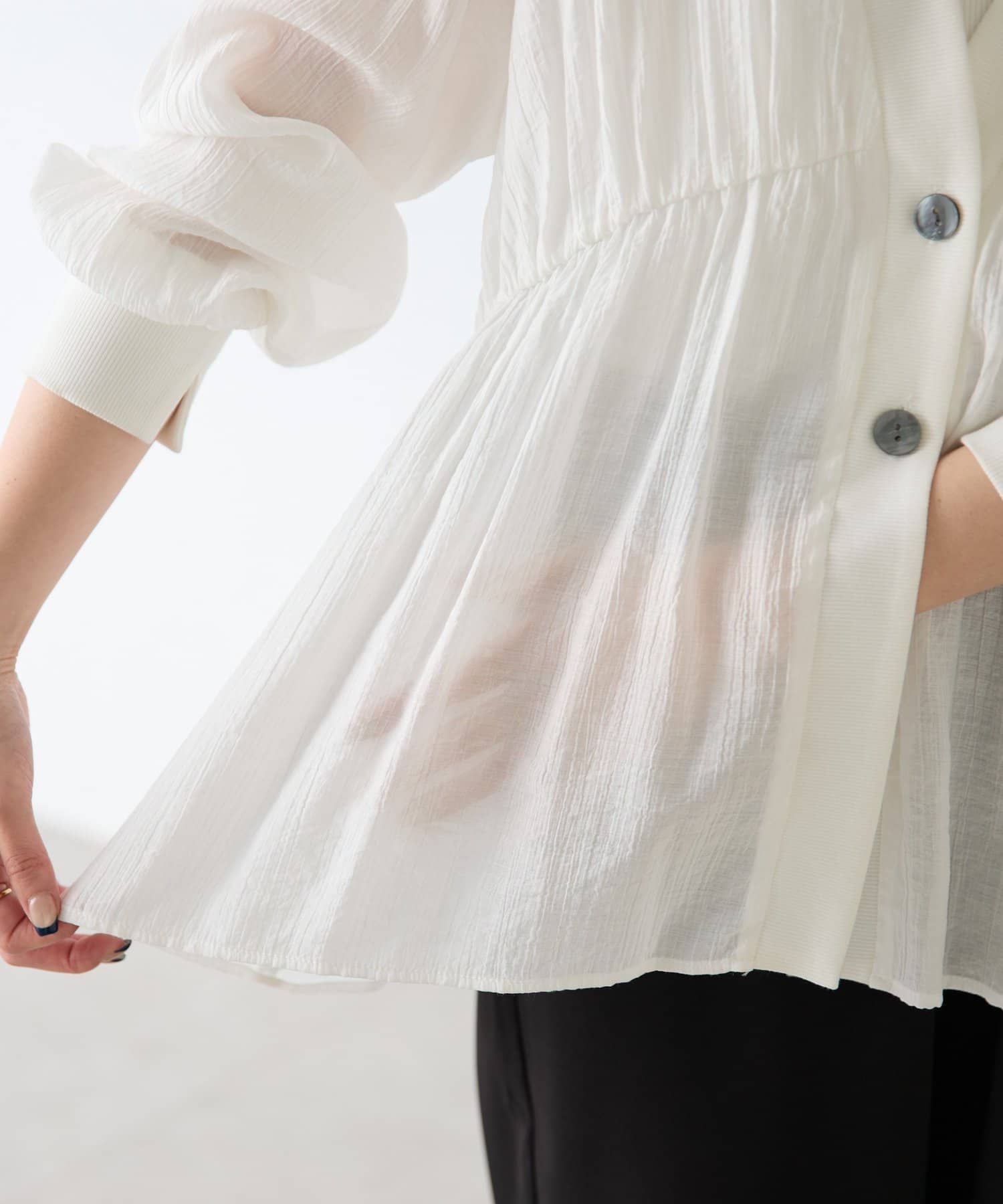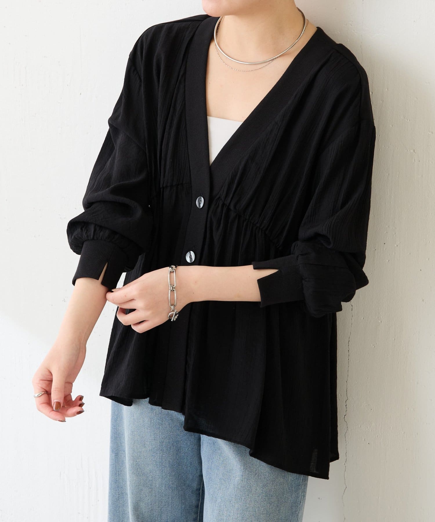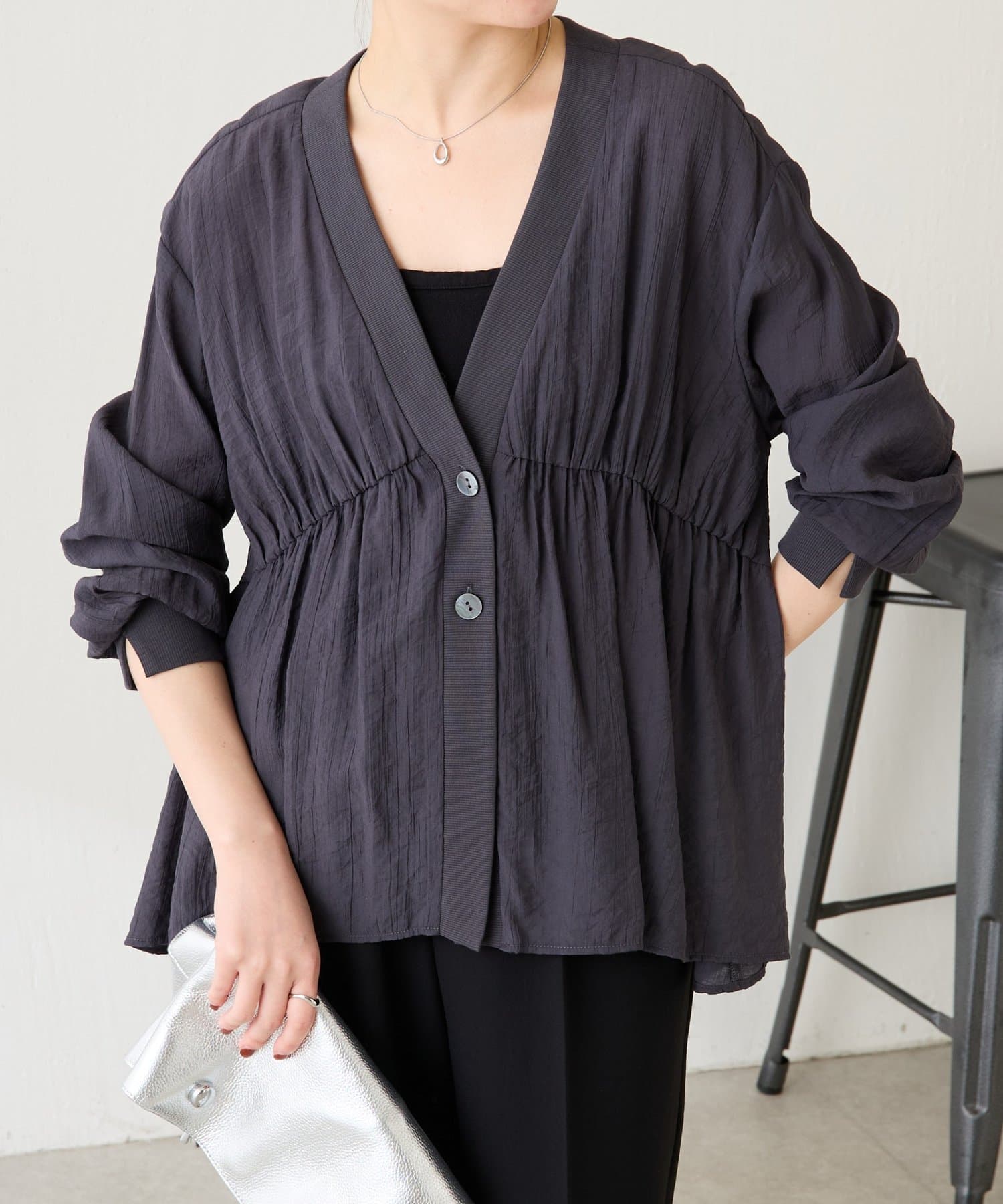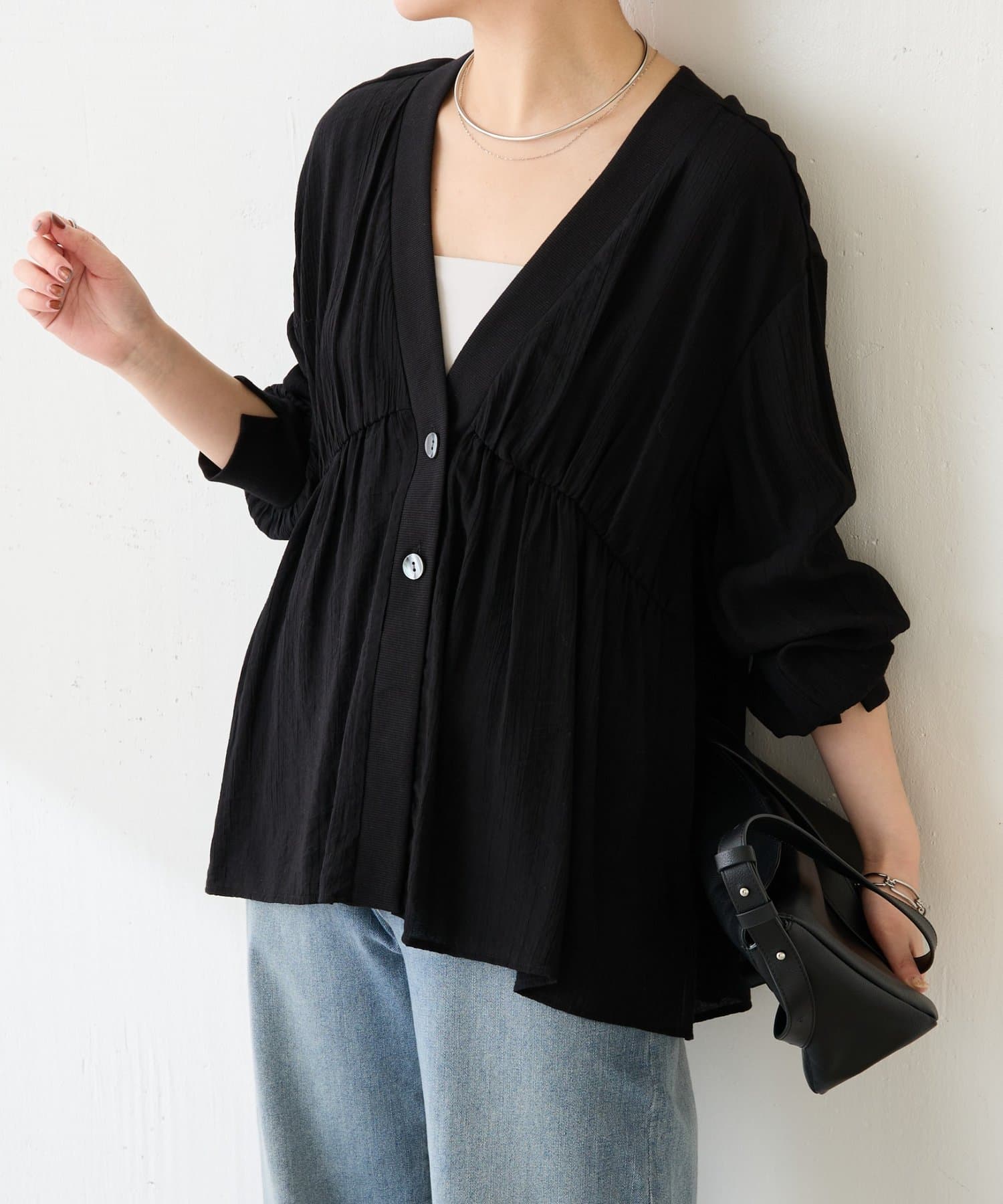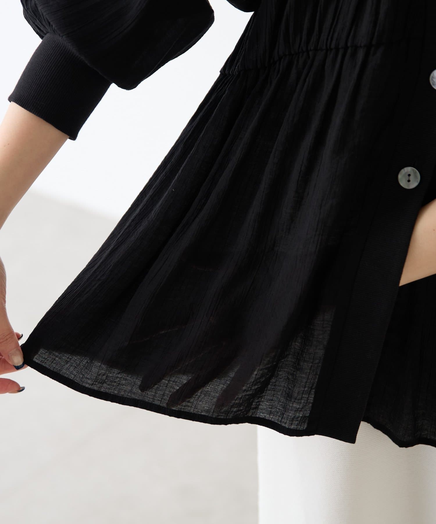 【軽量/体型カバー】ギャザー切替シアーシャツカーディガン