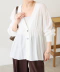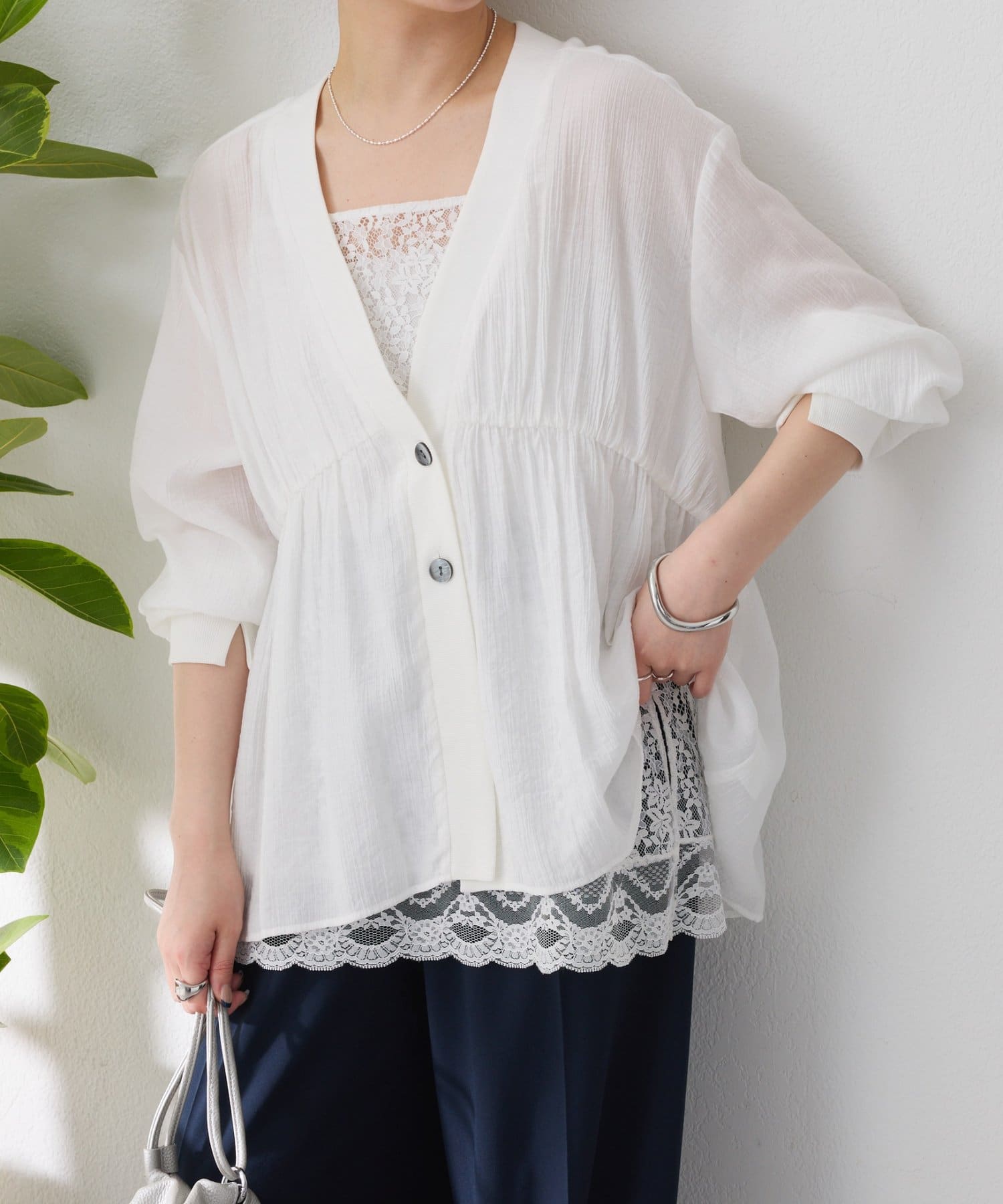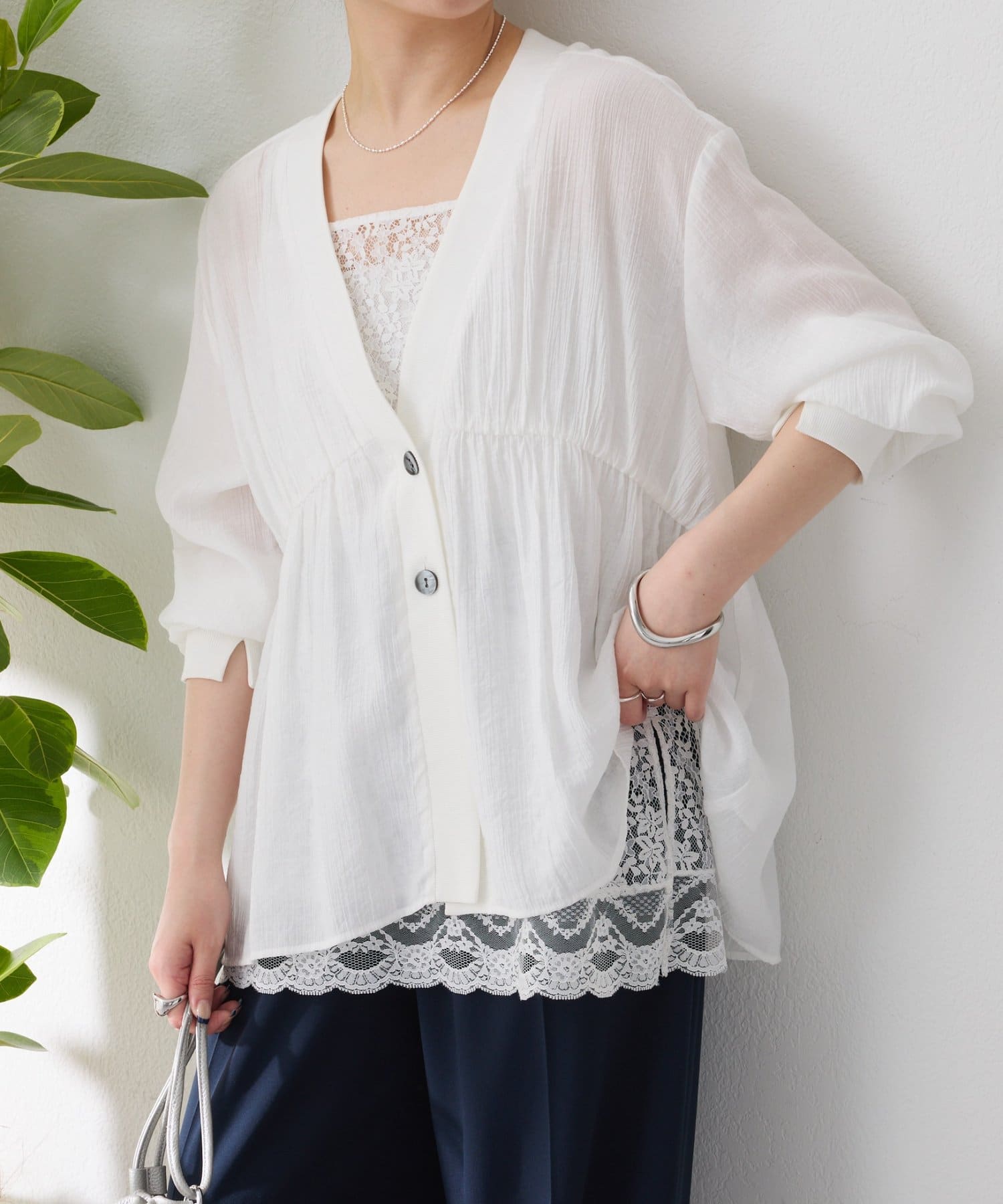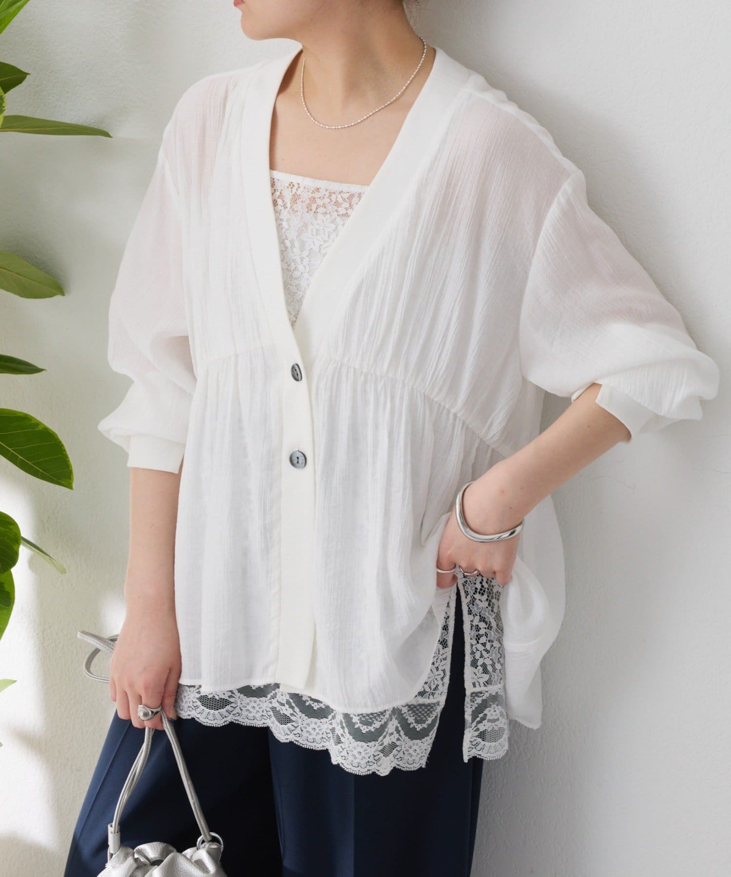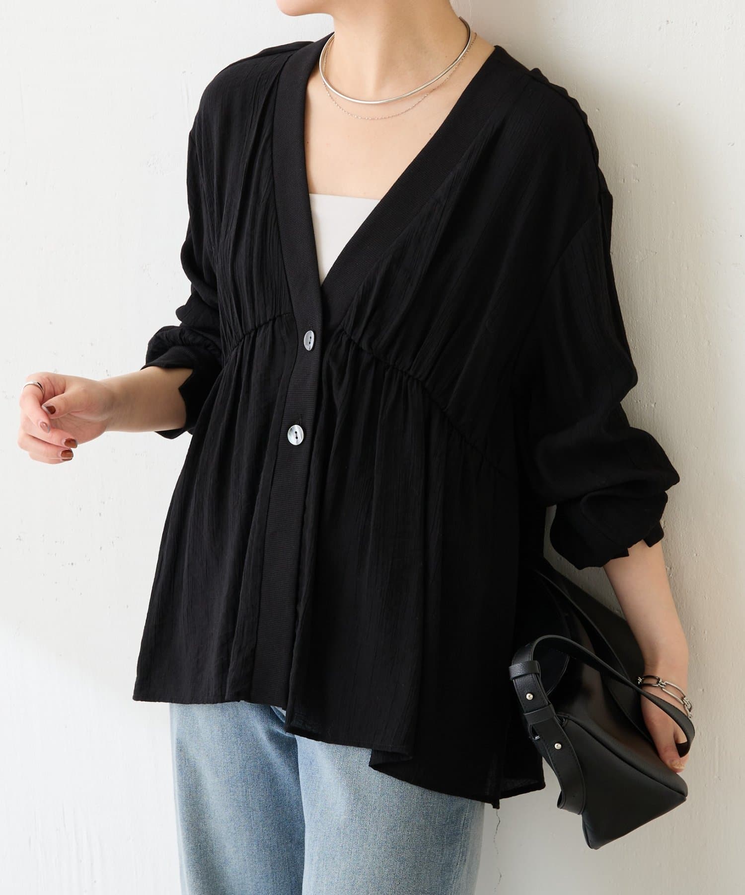 【軽量/体型カバー】ギャザー切替シアーシャツカーディガン