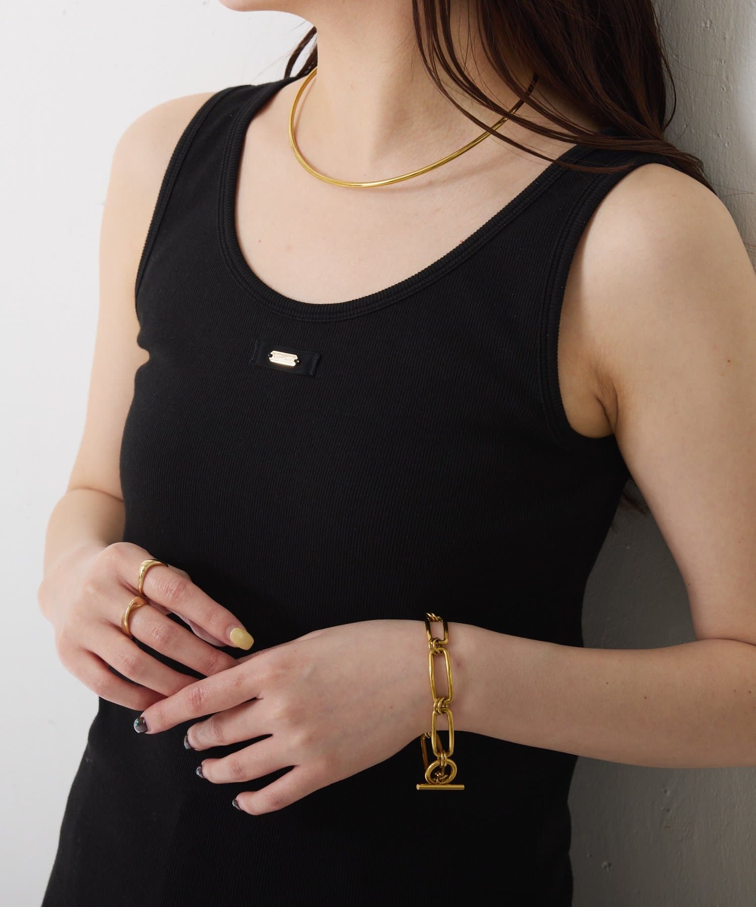 ゴールドプレートがワンポイントになるタンクトップ