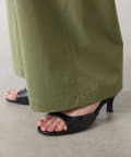 ゆるっとしたシルエットのパンツなので、足元は抜け感を出して女性らしさを出すのがおすすめです。