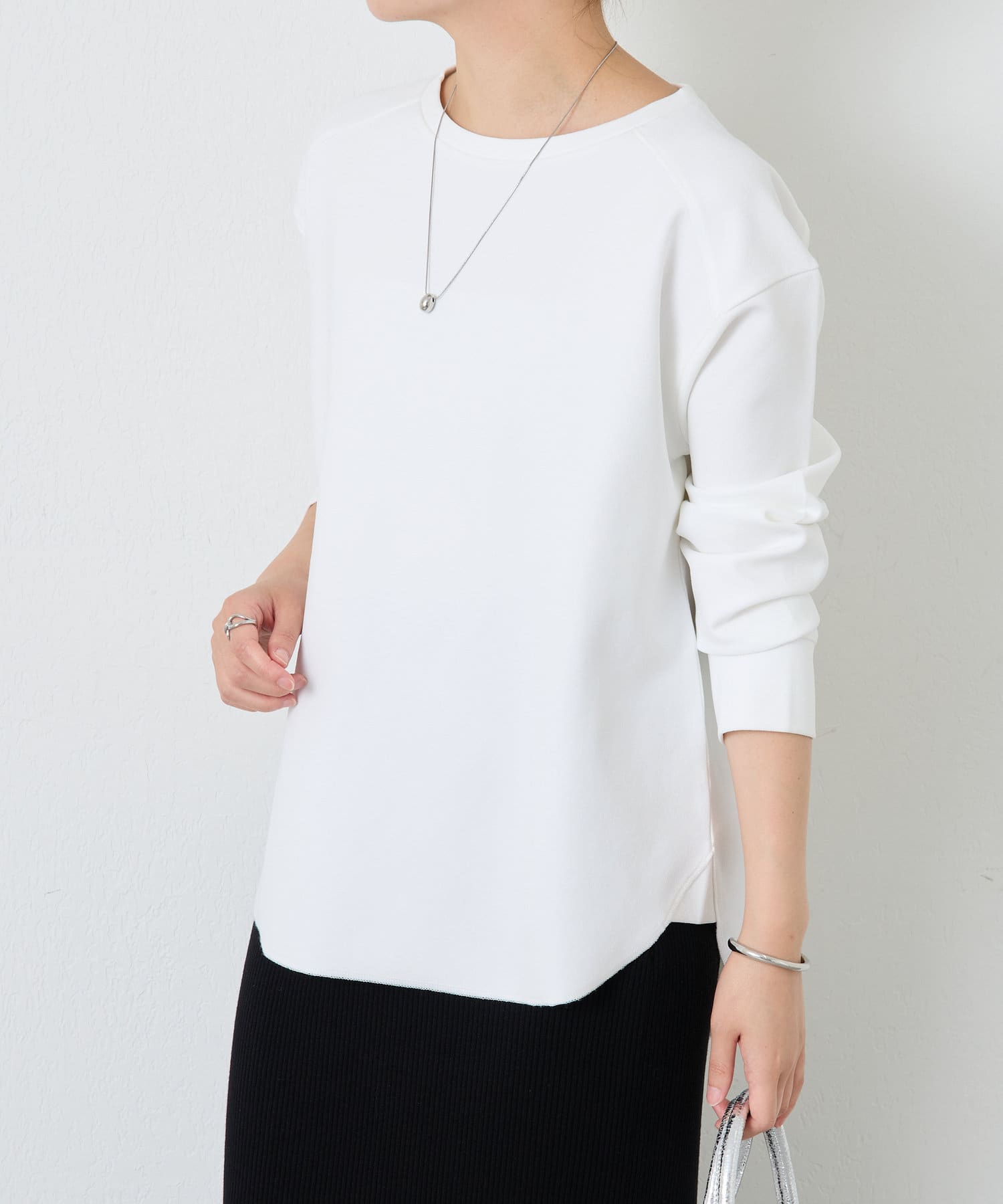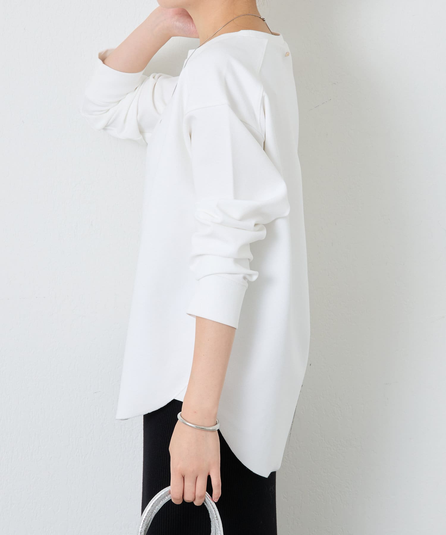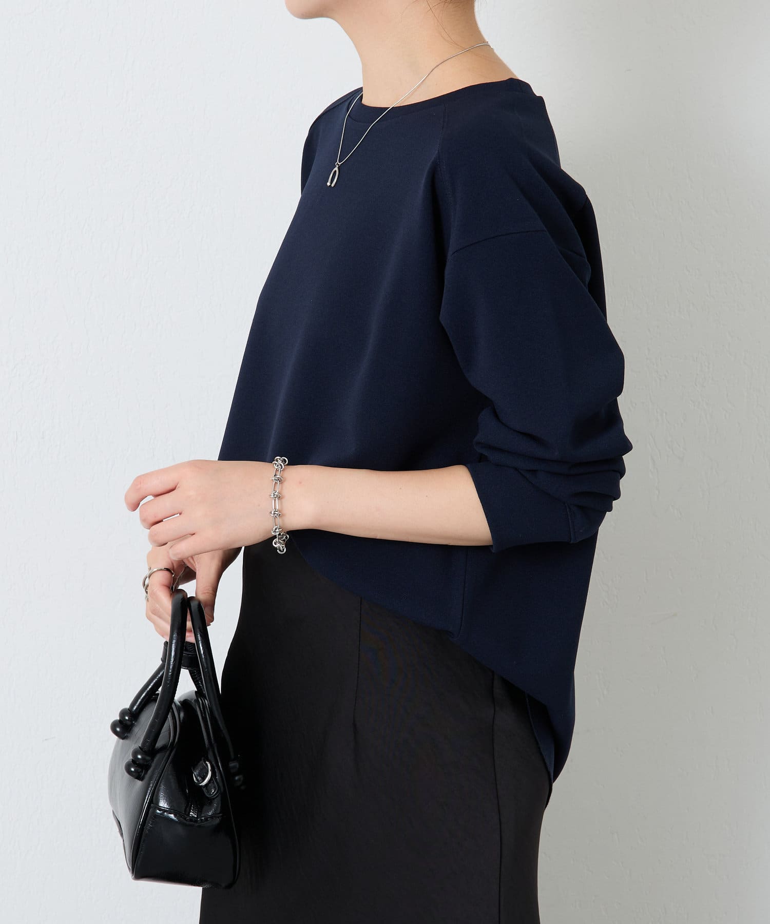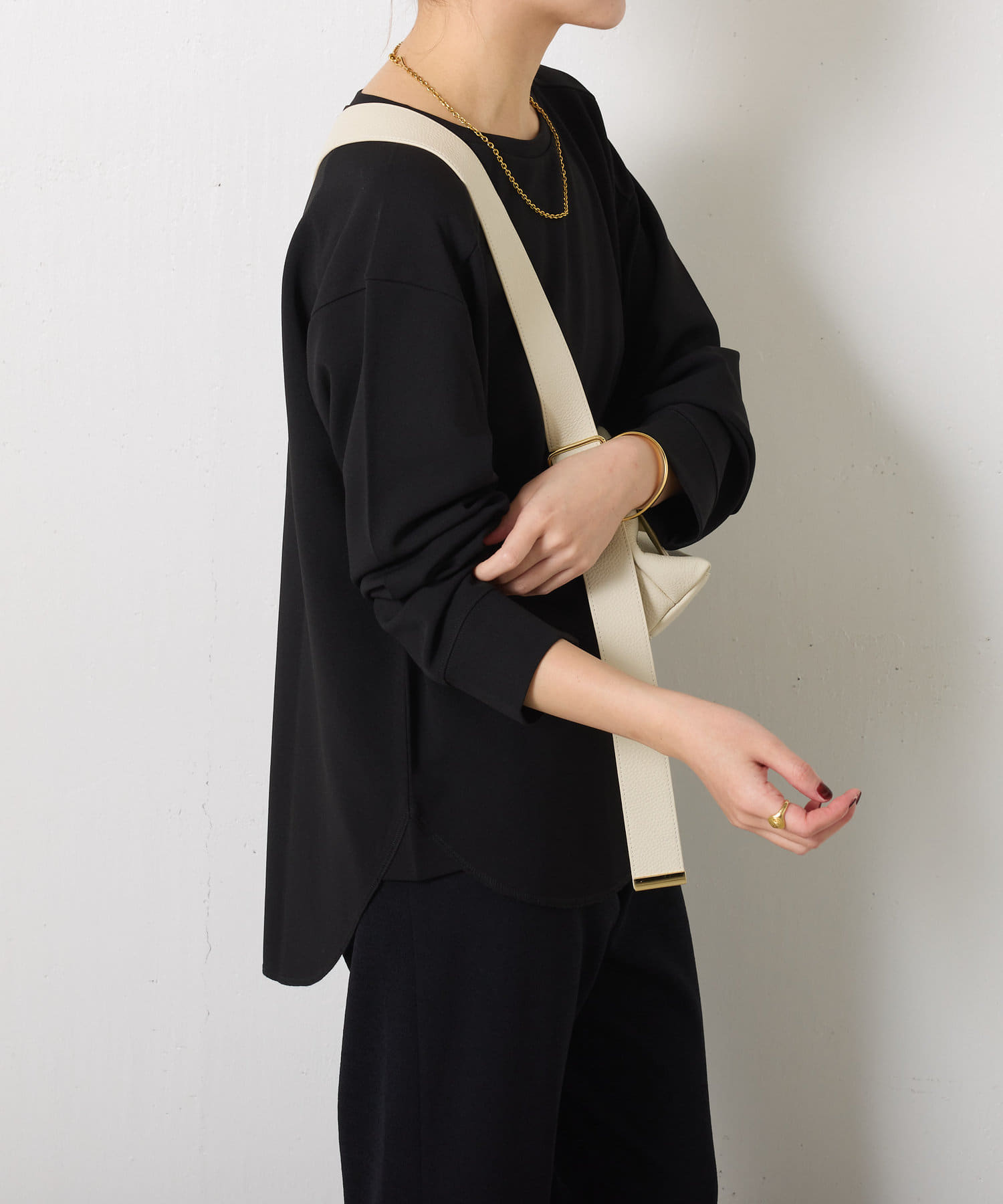 ・ニットのインナーに着た際に、裾の見え方が綺麗に見えるようにラウンドにしています。