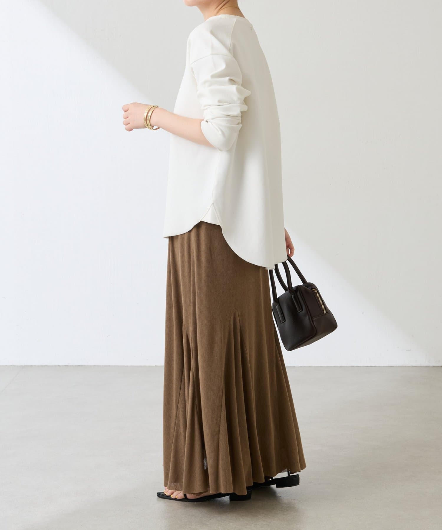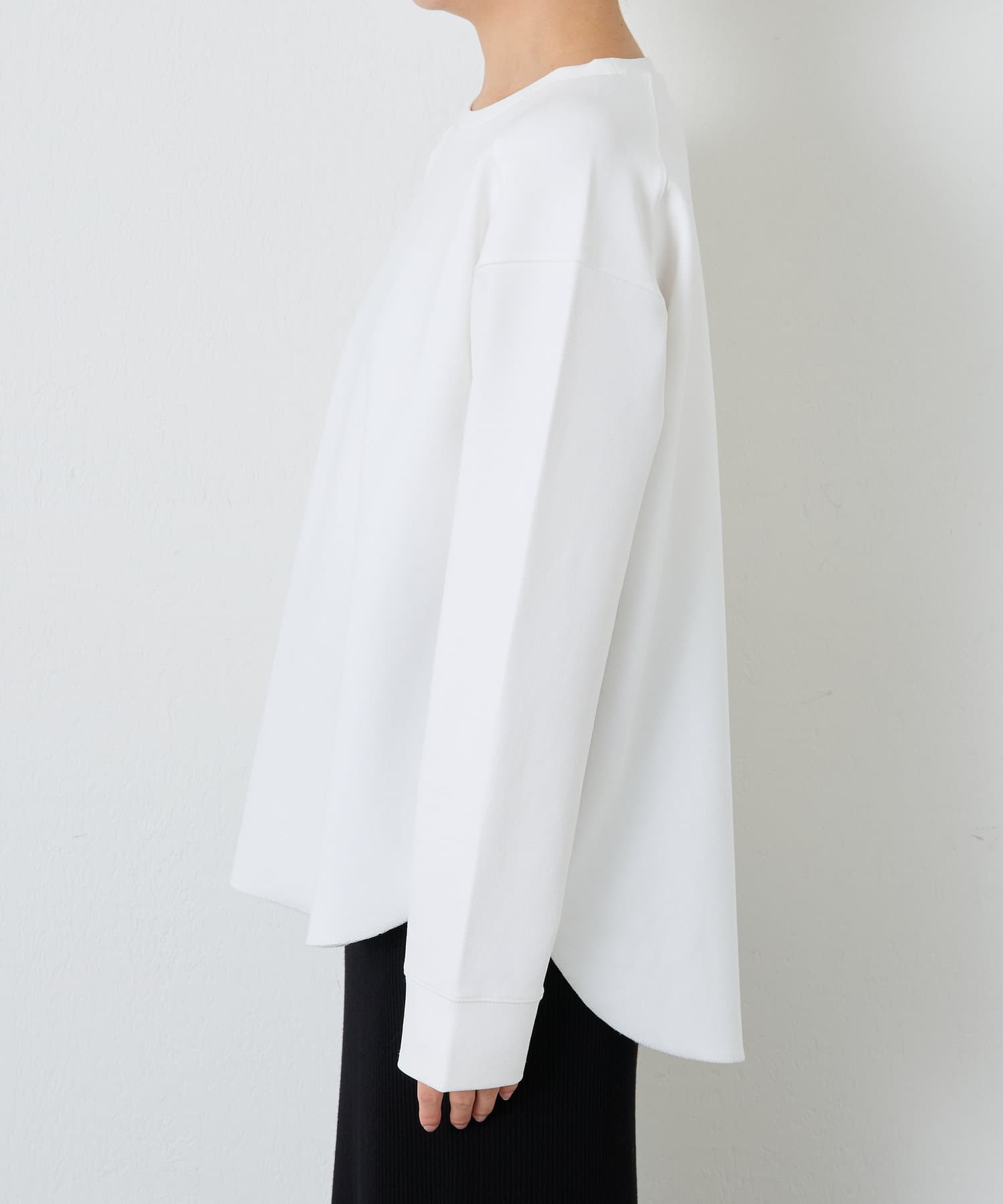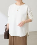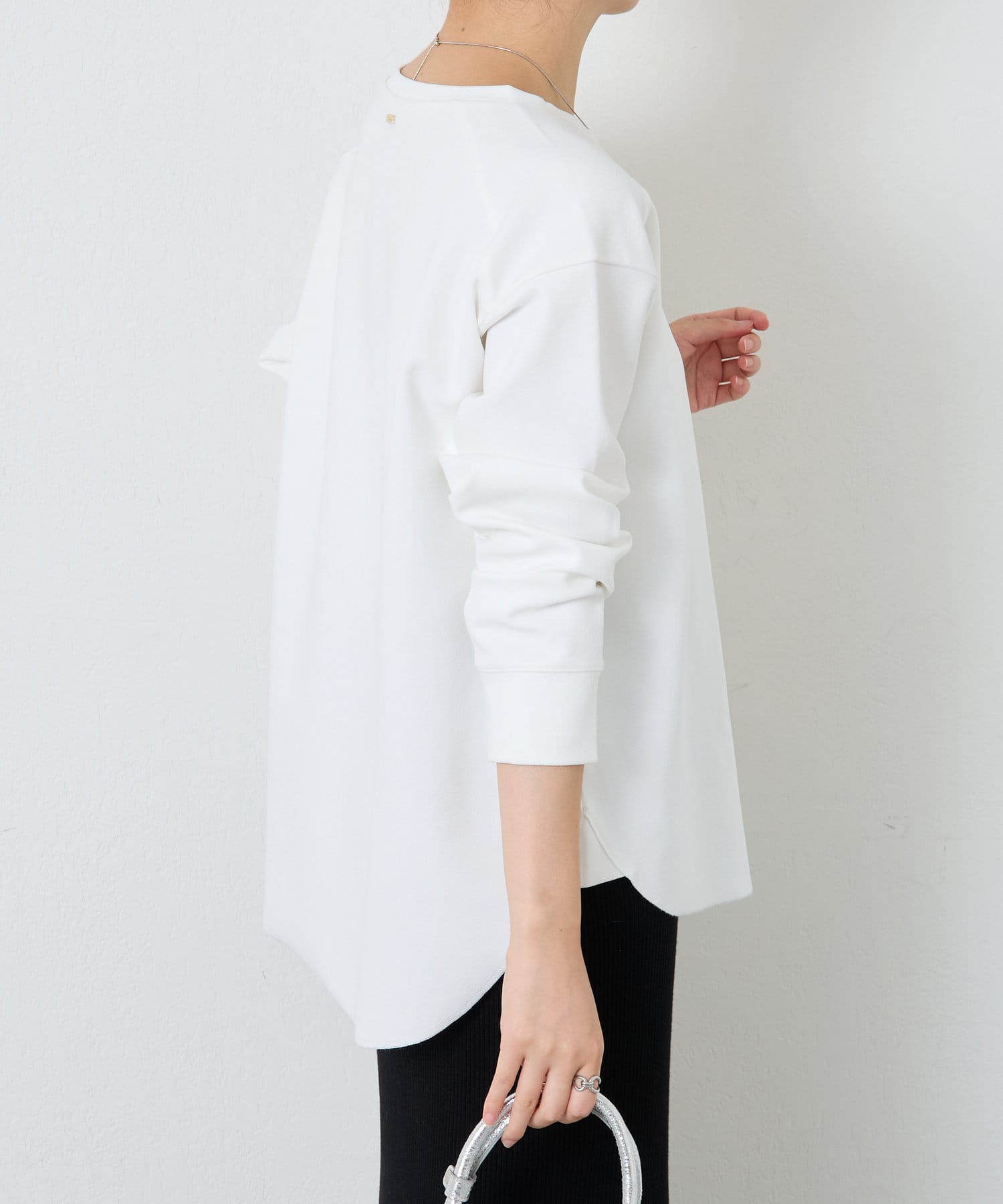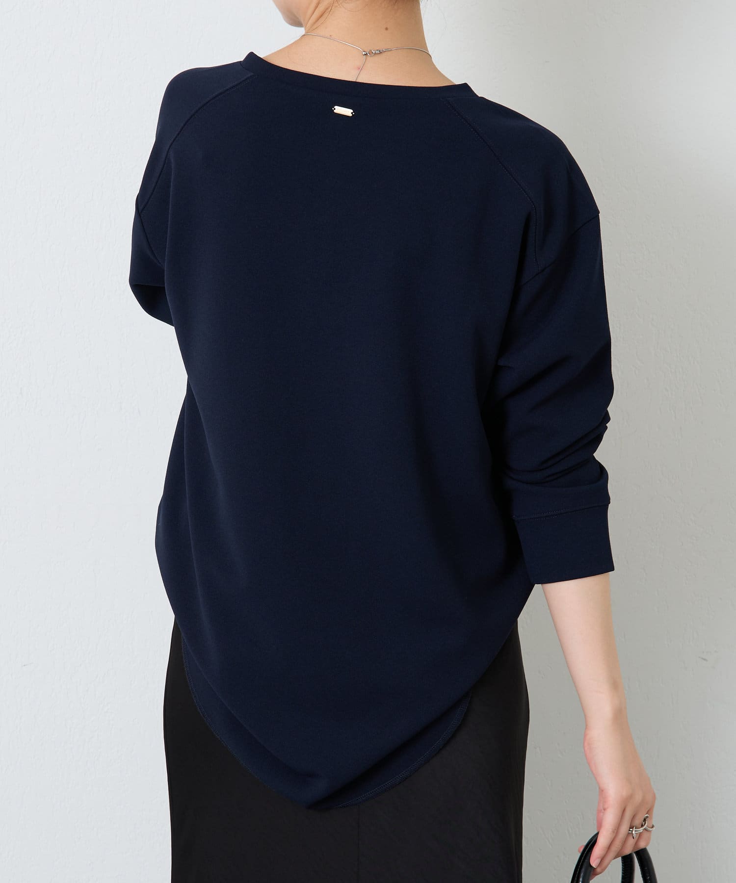 ・ニットのインナーに着た際に、裾の見え方が綺麗に見えるようにラウンドにしています。