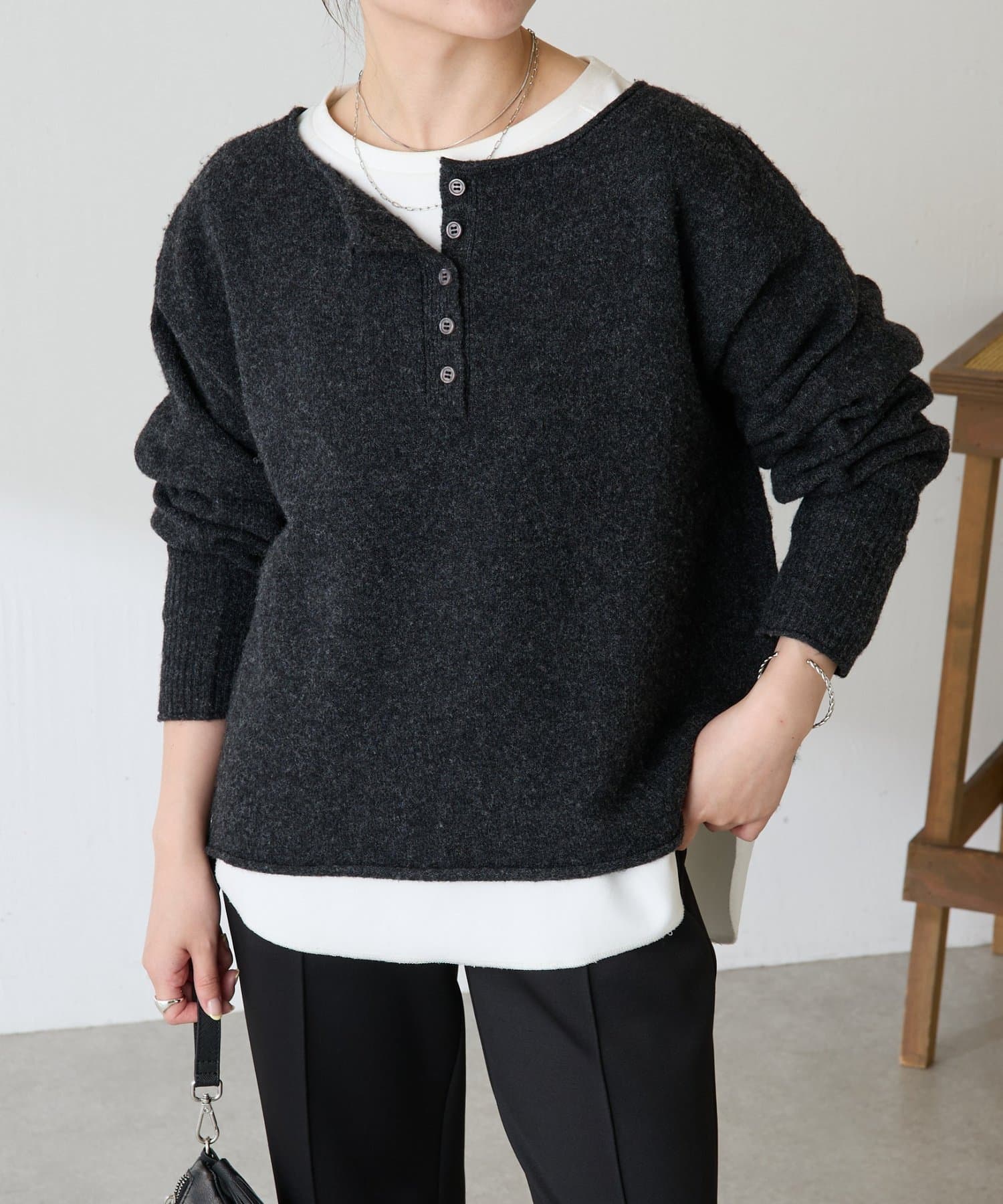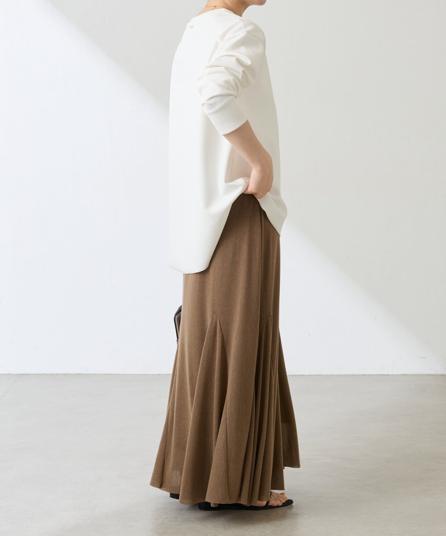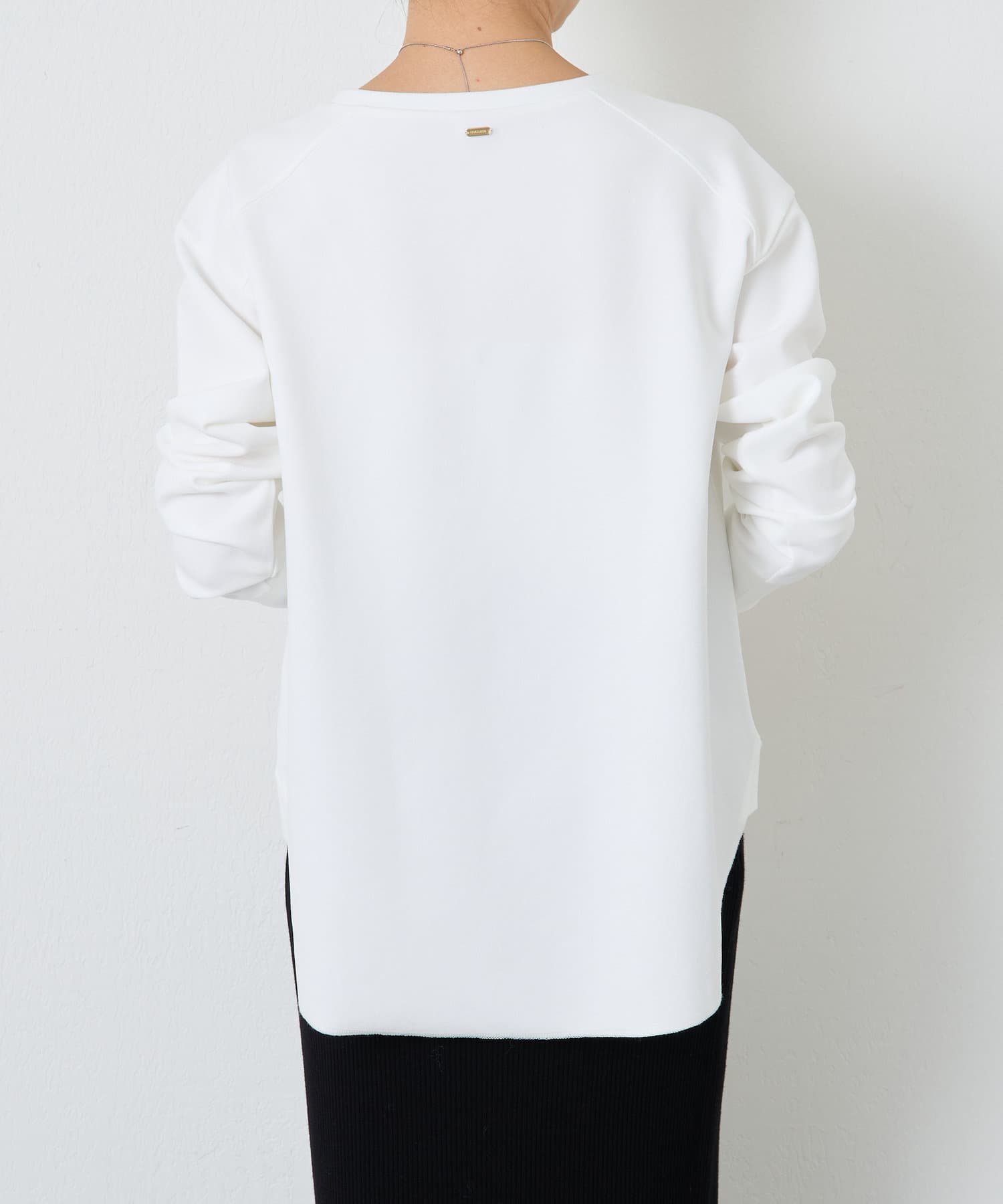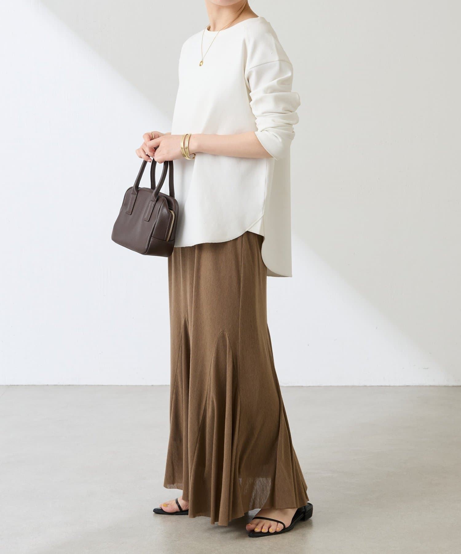 ・ニットのインナーに着た際に、裾の見え方が綺麗に見えるようにラウンドにしています。