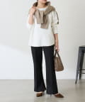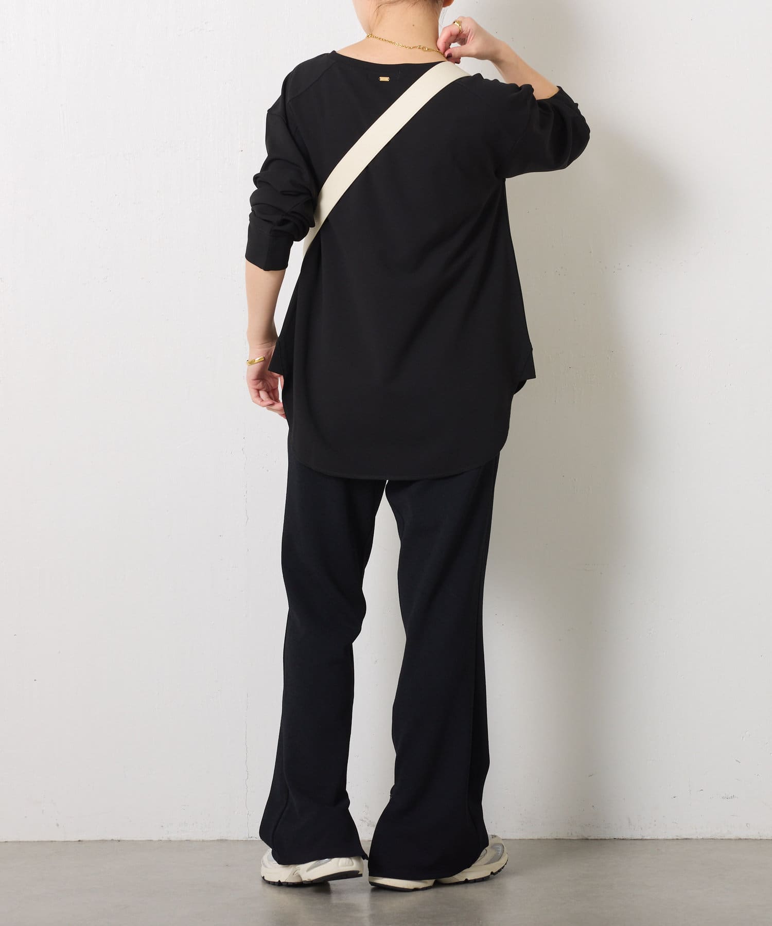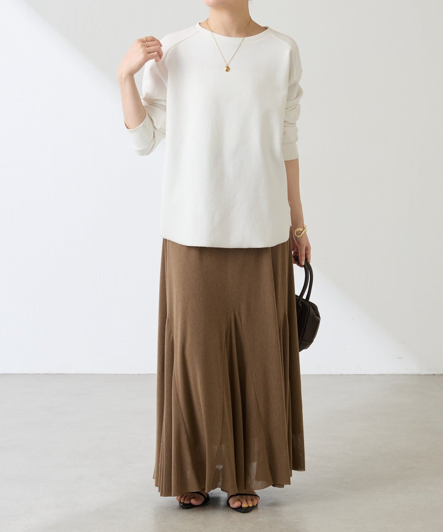 ラグランスリーブなのでデニムやワイドパンツなどカジュアルアイテムとも相性が良いです。