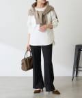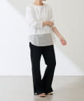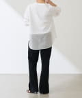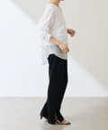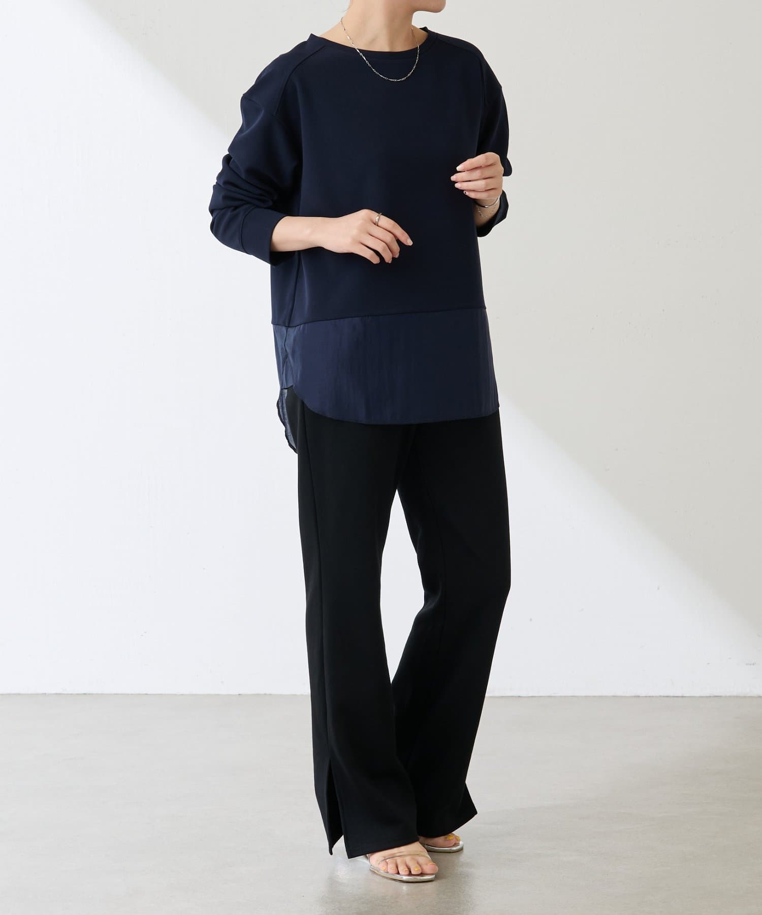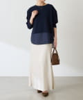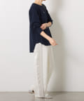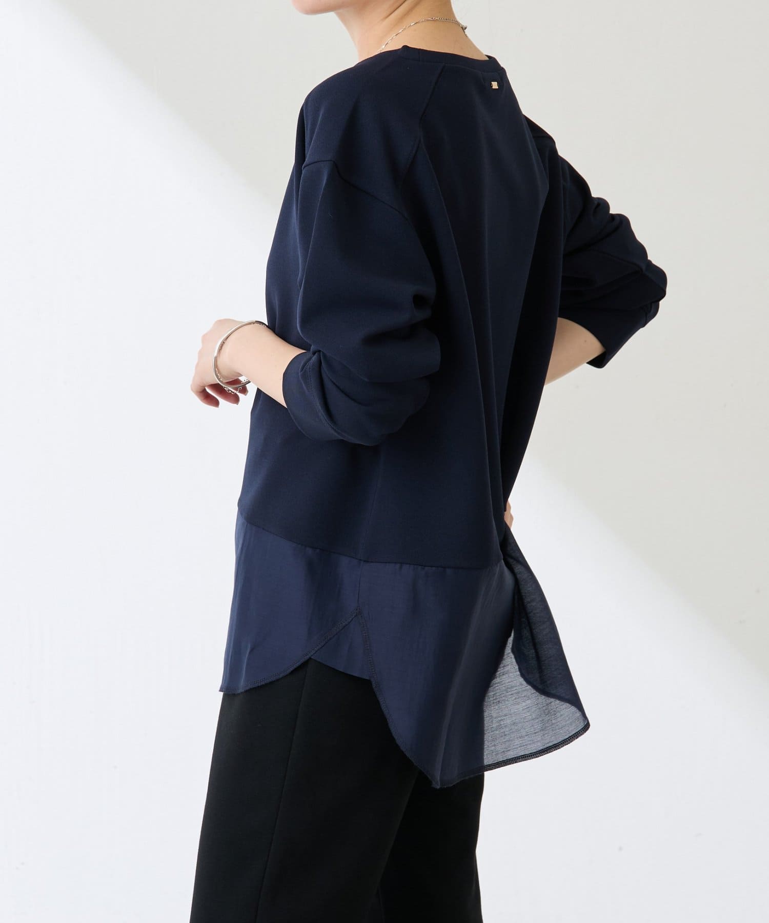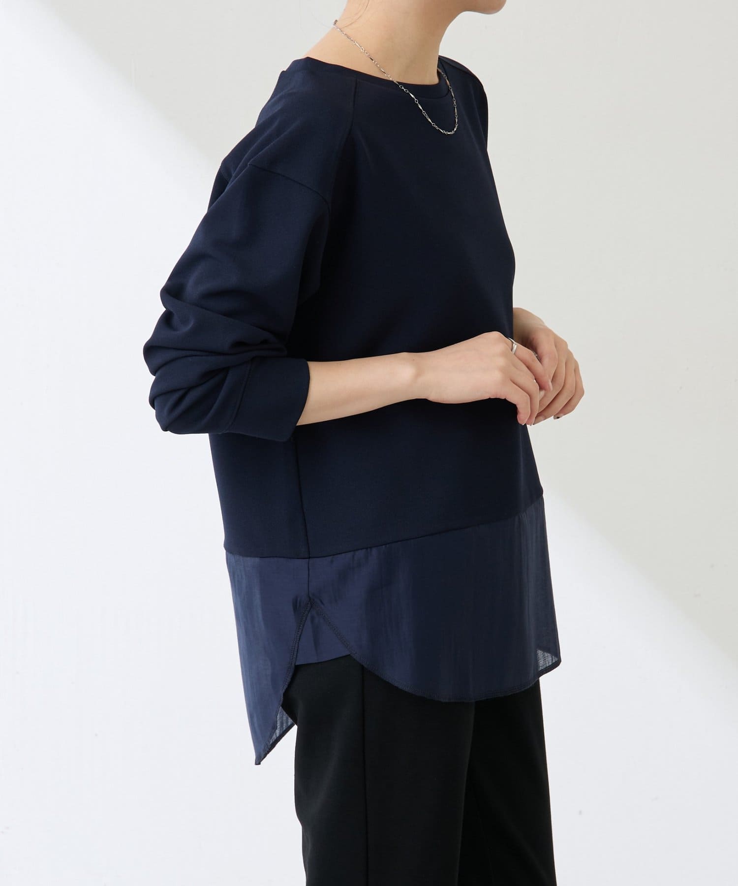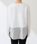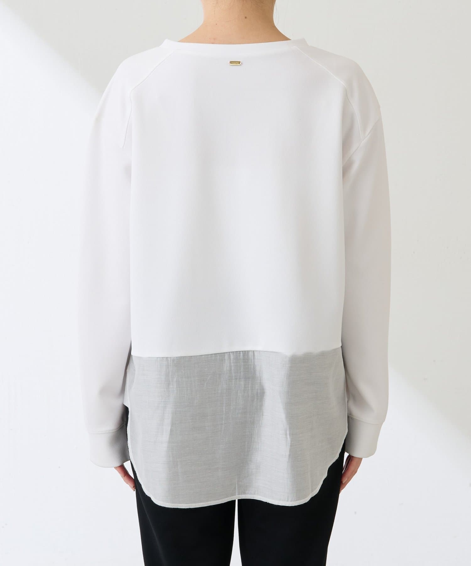・(カラー名:ホワイト/ミッドナイトブルー)ニットやスウェットのインナーとしてシアー部分を見せるとメリハリのあるスタイリングが完成します◎