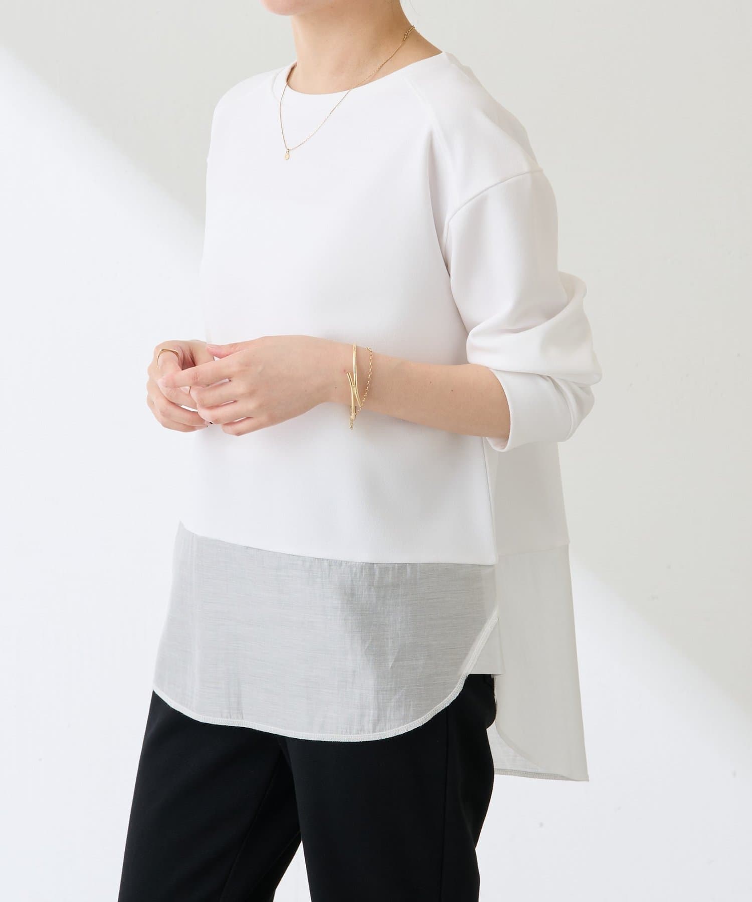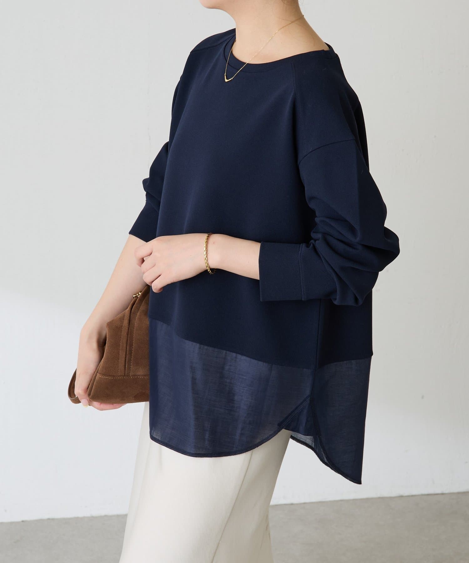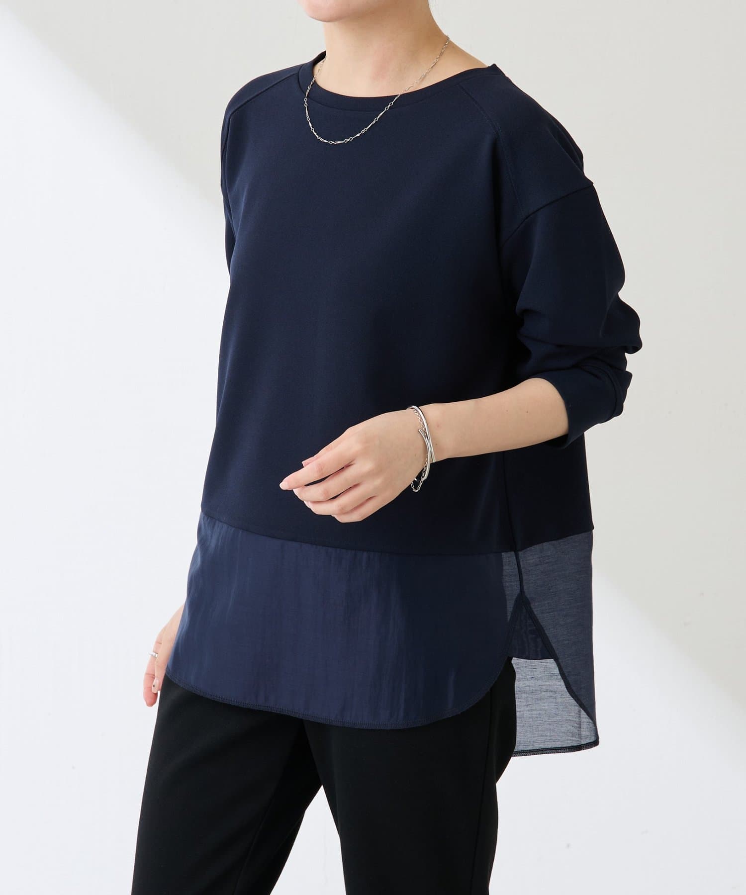 【シアー切替が登場/レイヤードアイテム】カットジョーゼットロンT/Tブラウス
