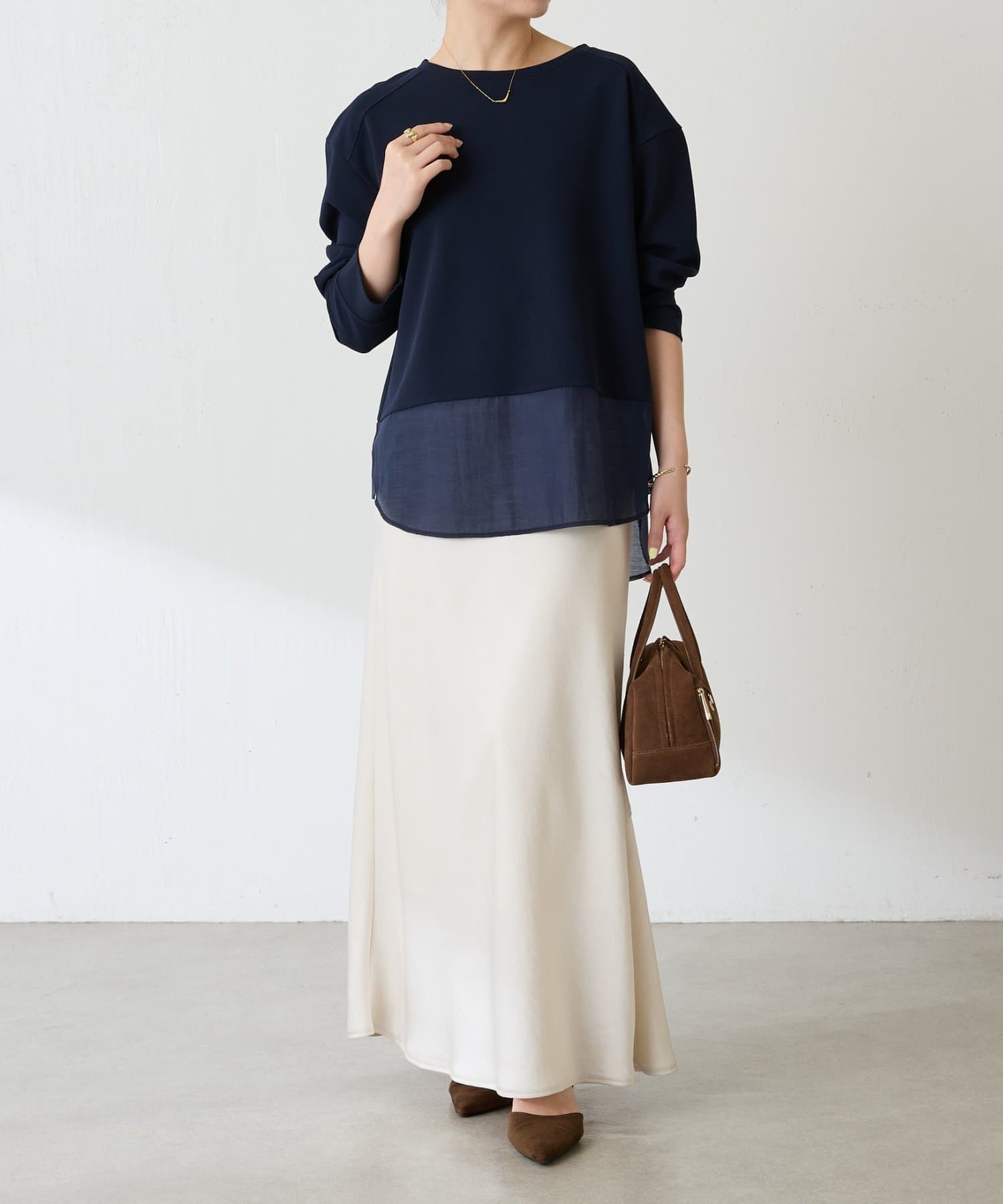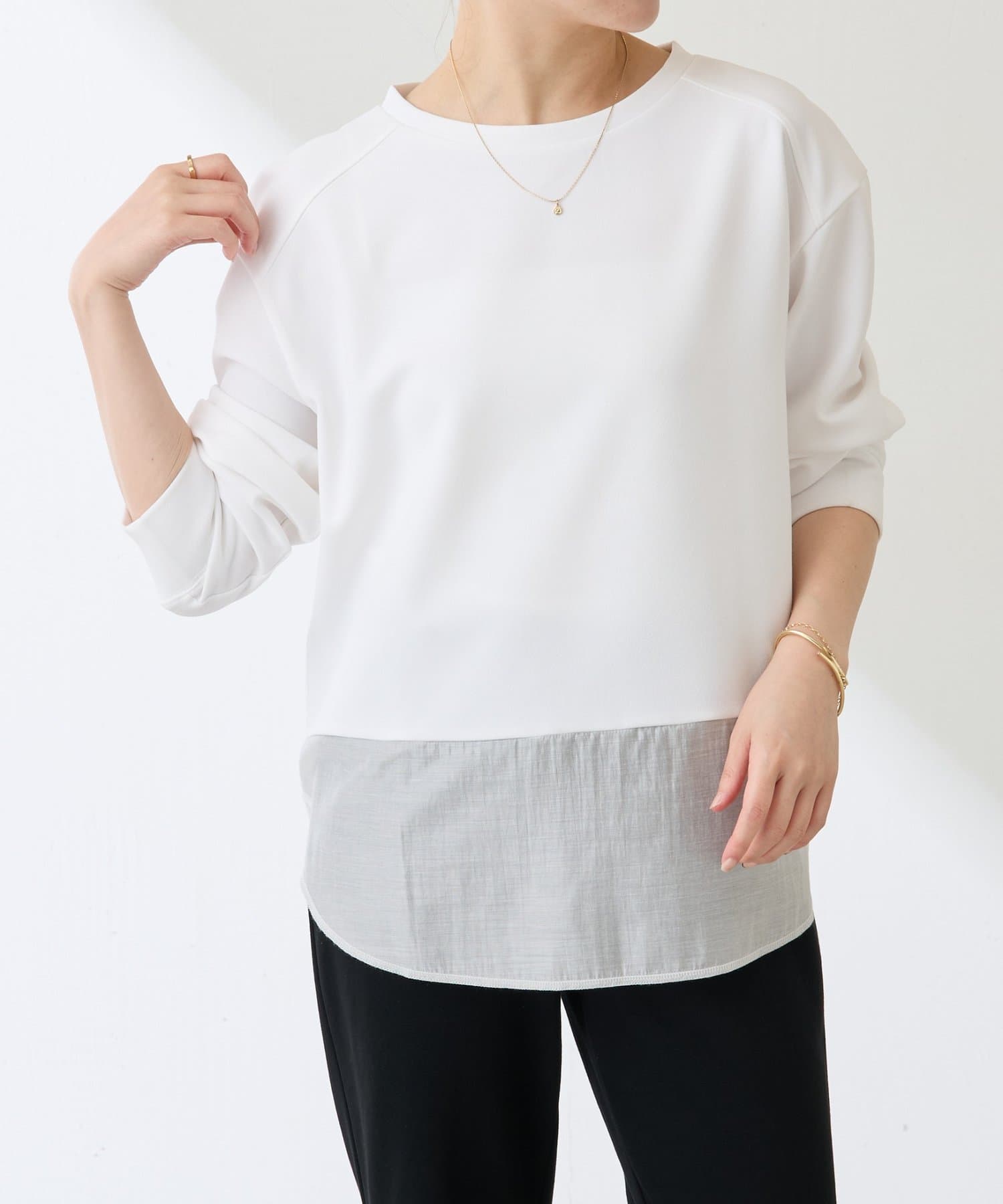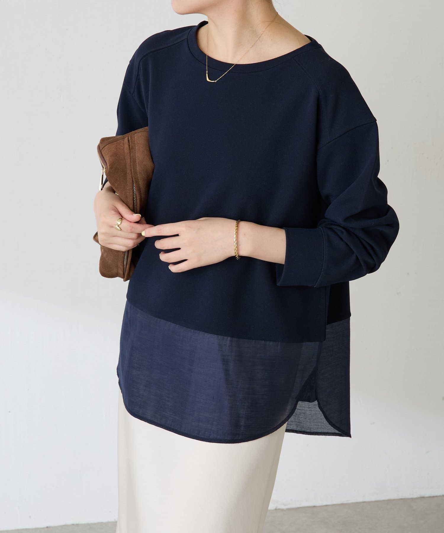 【シアー切替が登場/レイヤードアイテム】カットジョーゼットロンT/Tブラウス