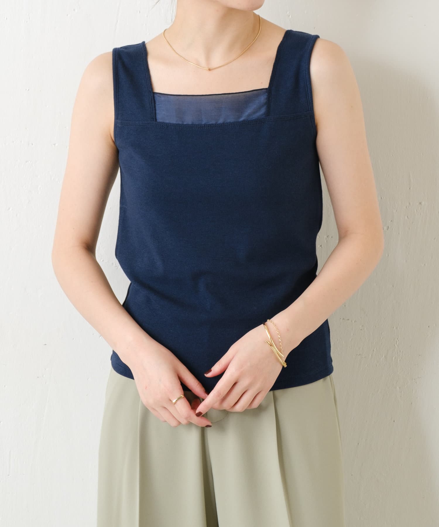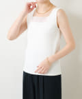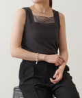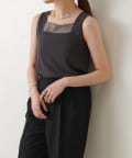 首元に上品なシアー感のある素材を切り替えたデザインタンクトップ