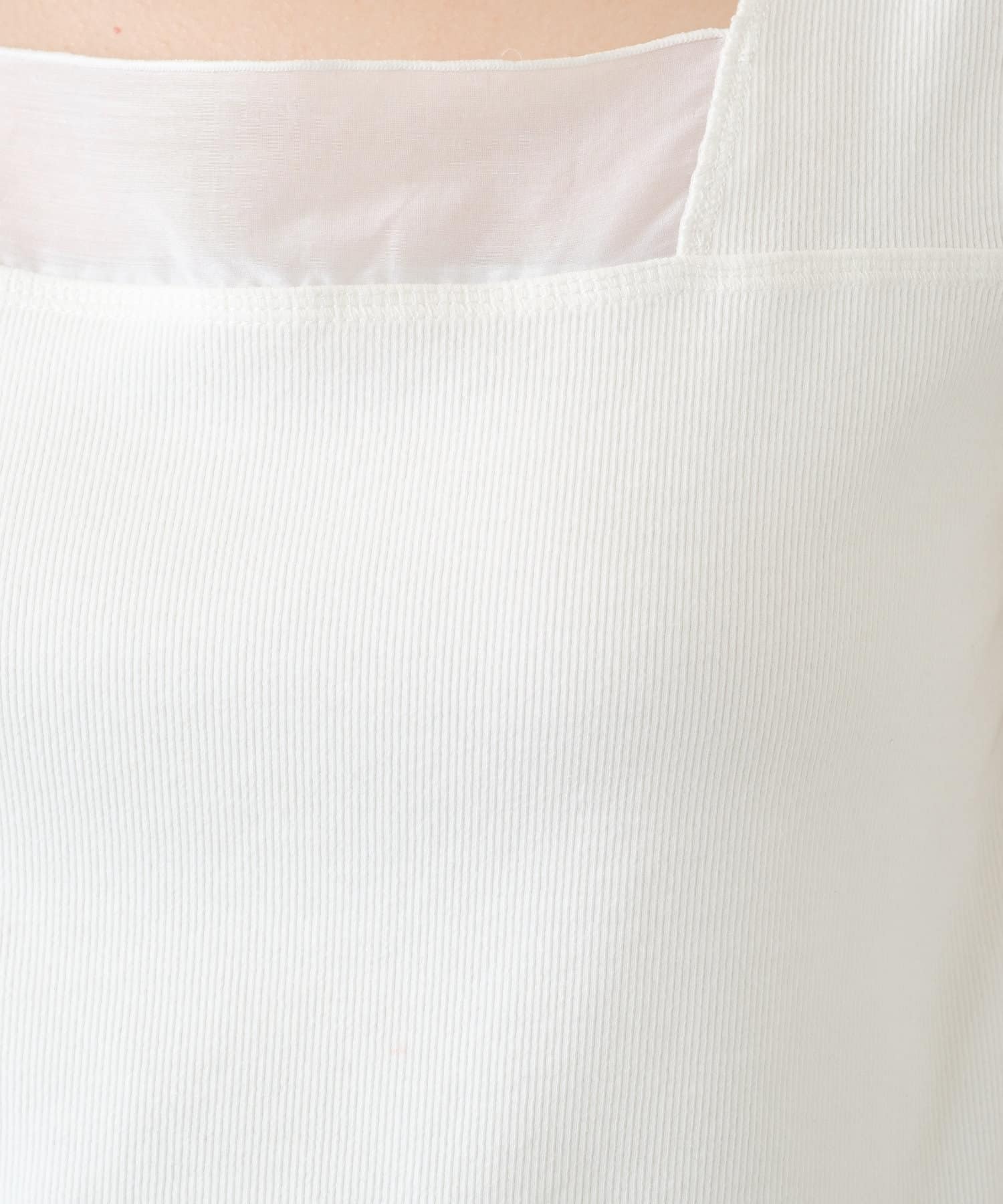 ・デコルテラインをすっきりと魅せながら安心感もある程よいスクエアネックデザイン