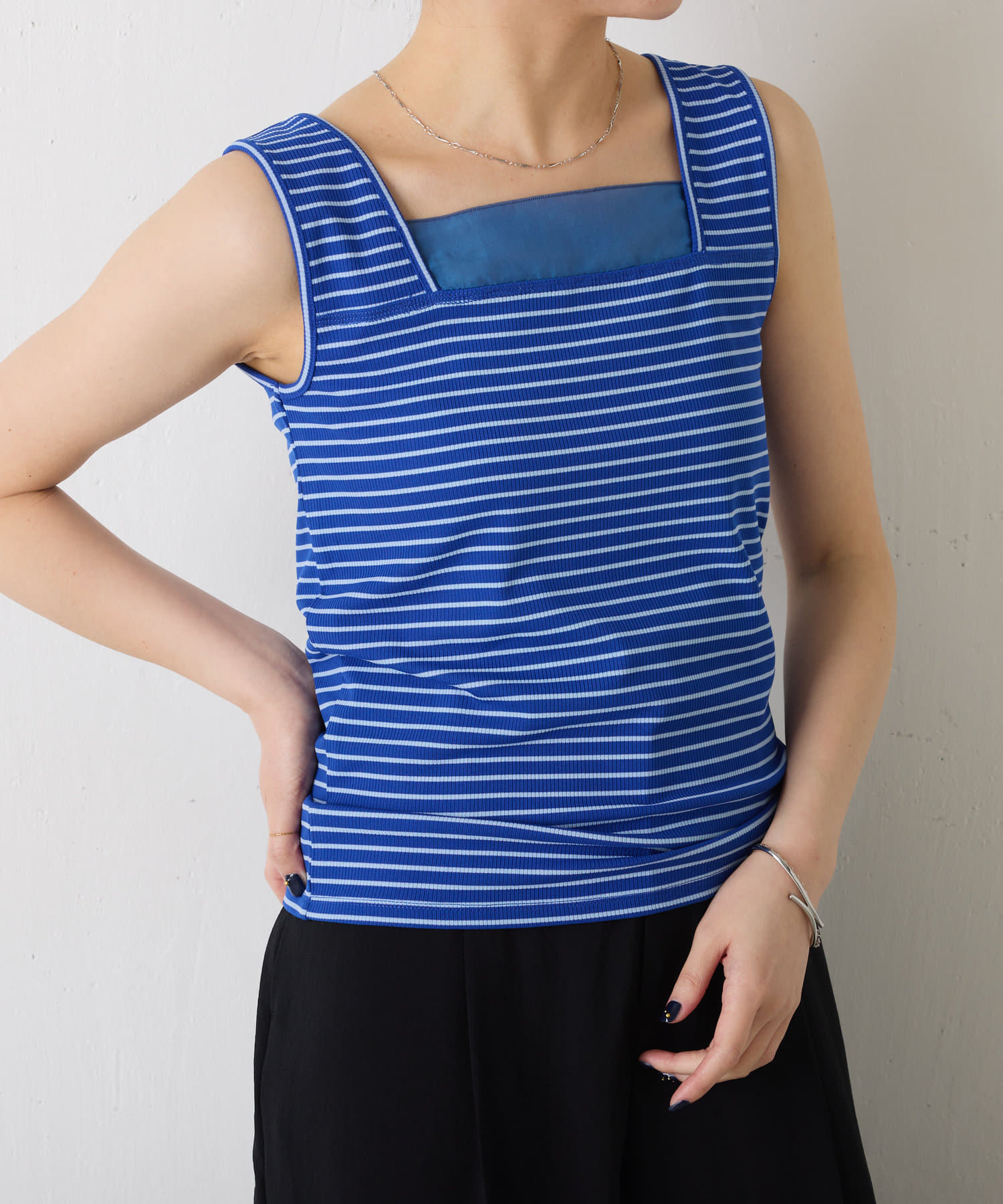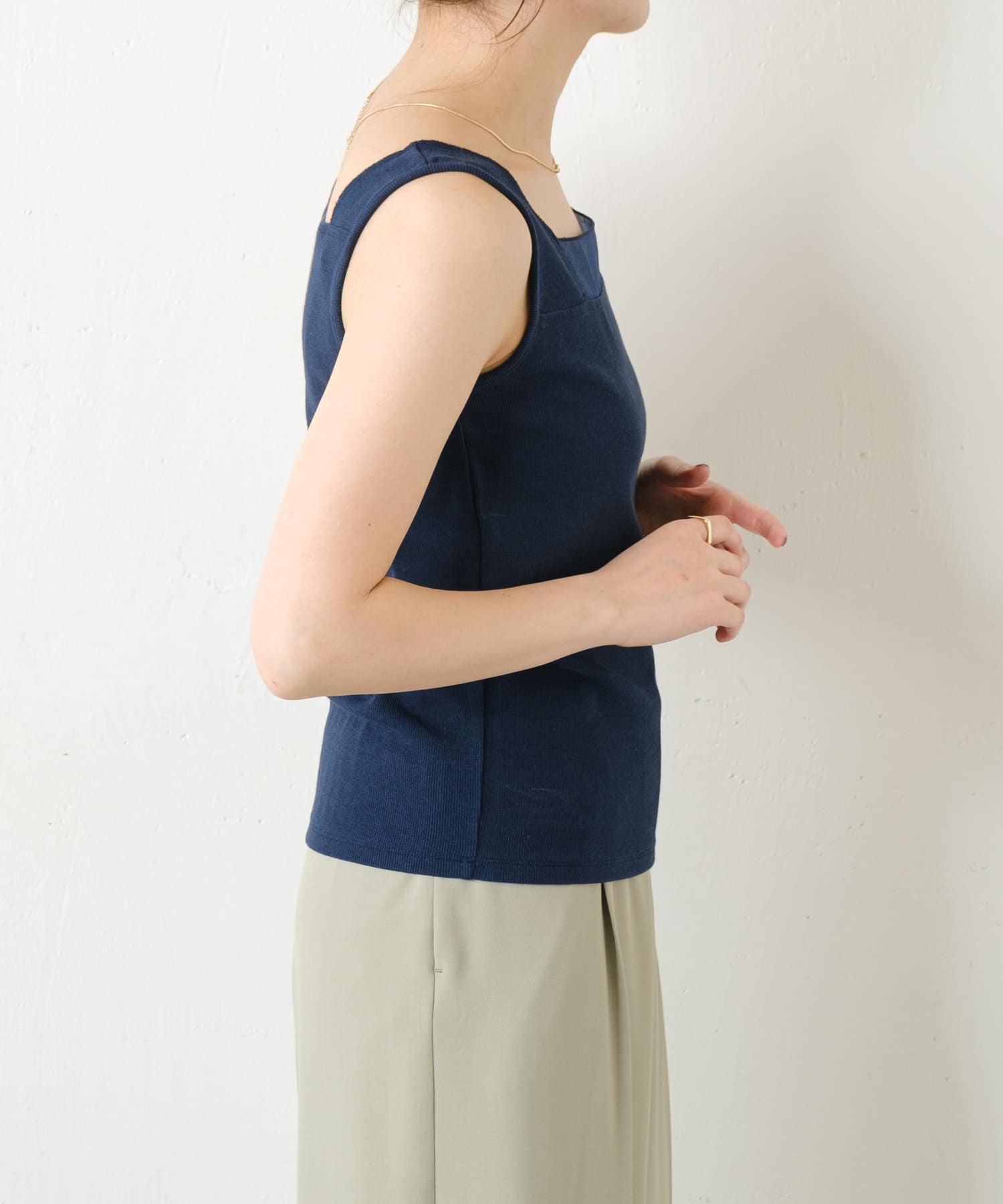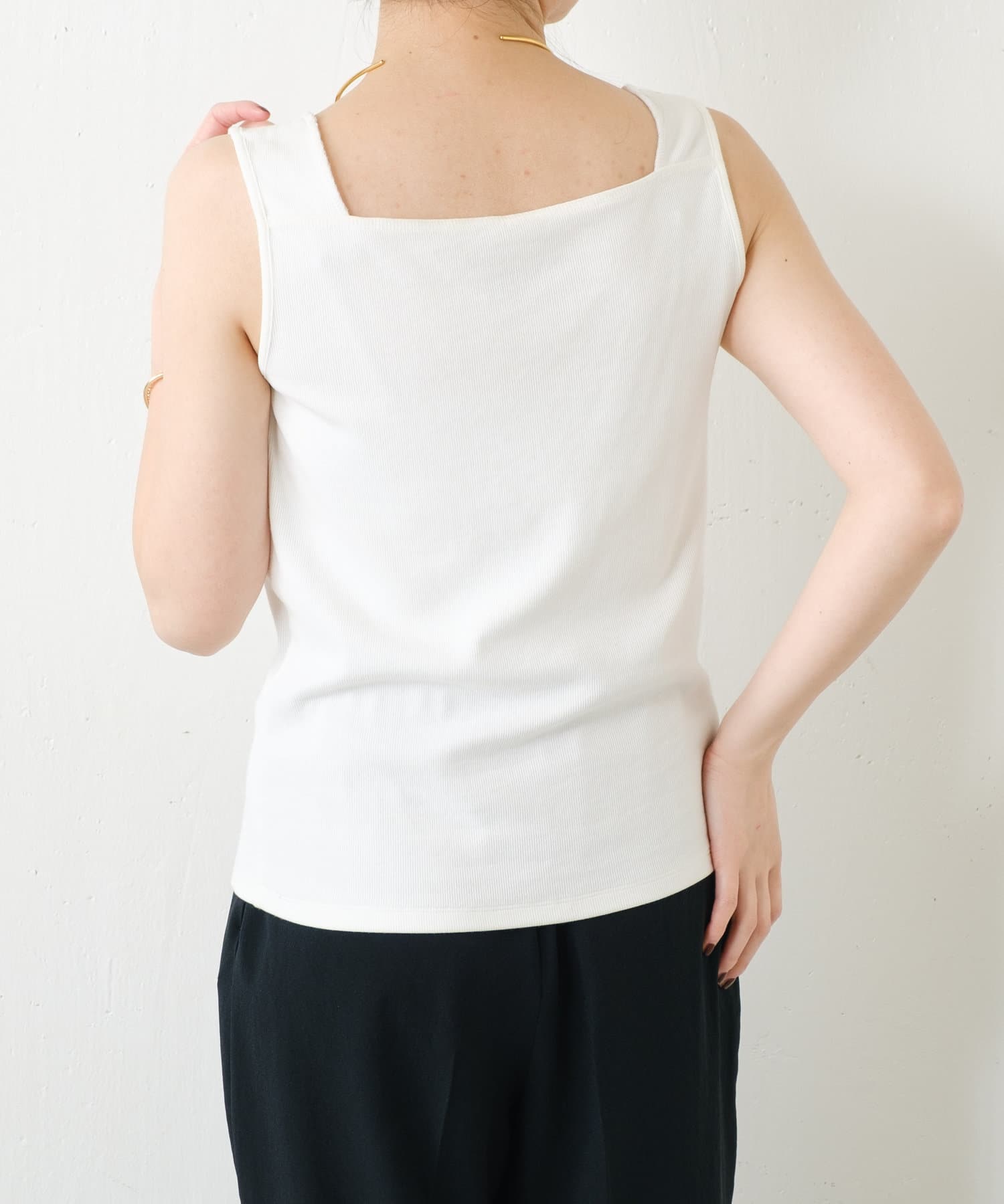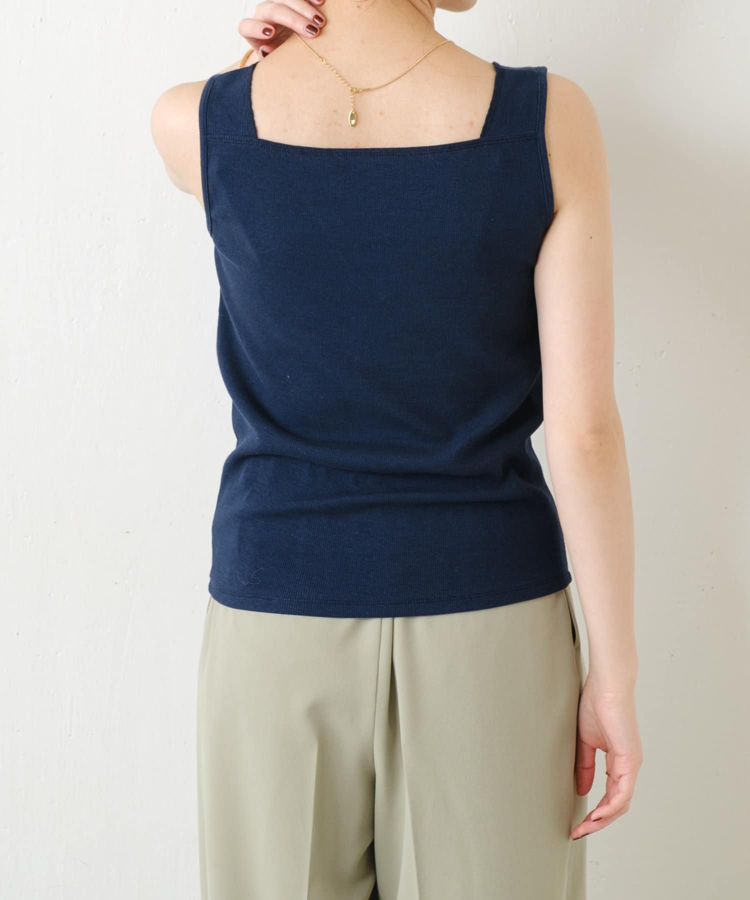 ・前後2wayで着用可能なのでシンプルなスクエアネックタンクとしてもお使いいただけます◎