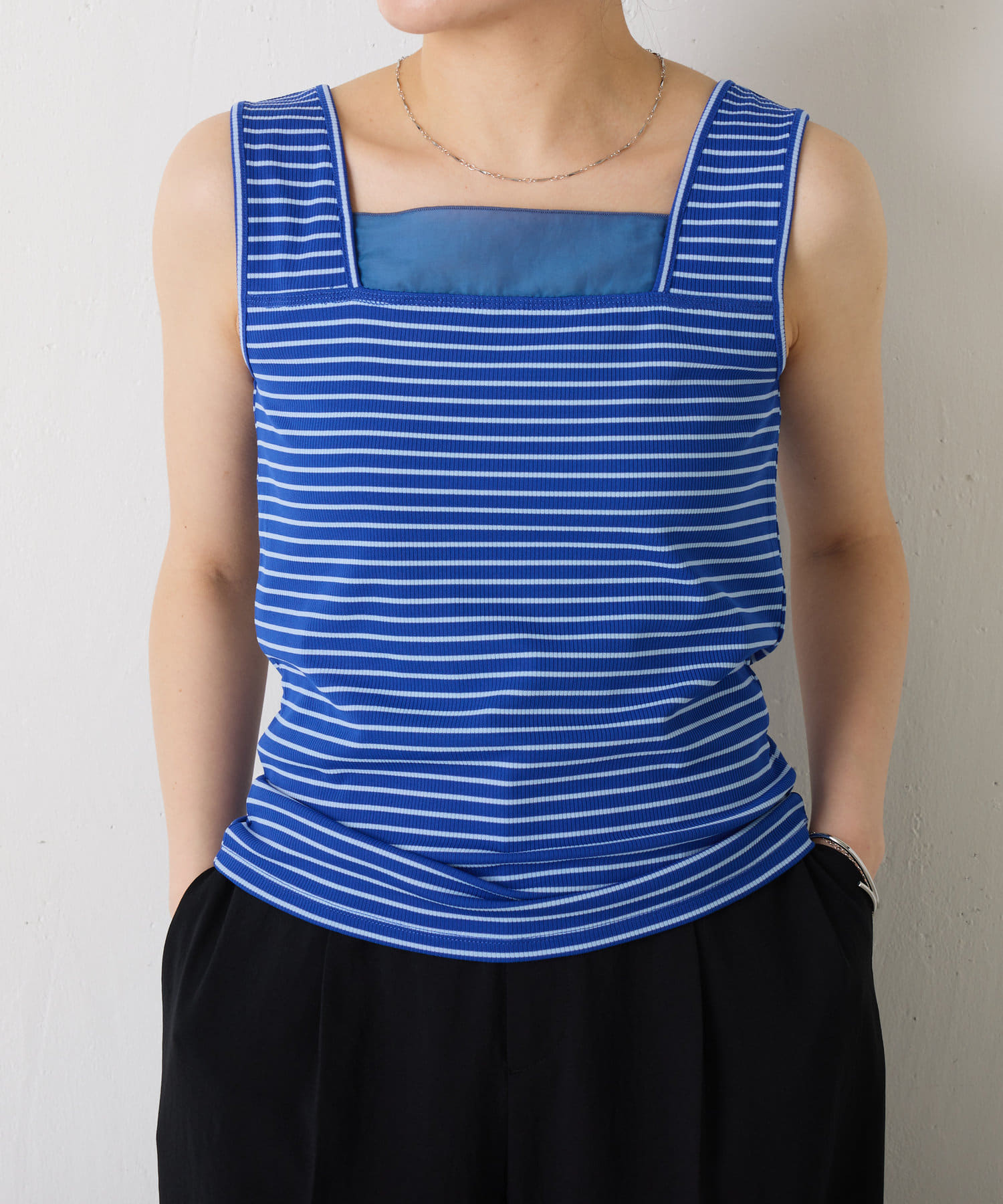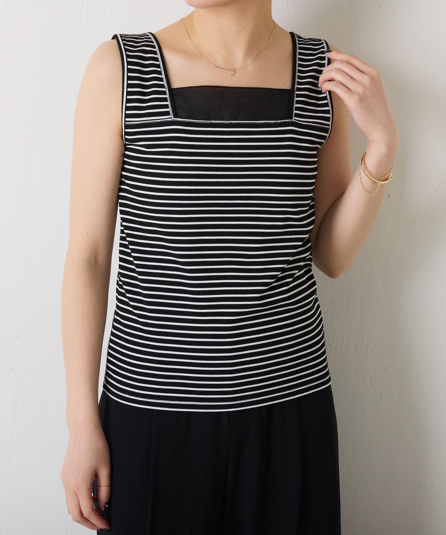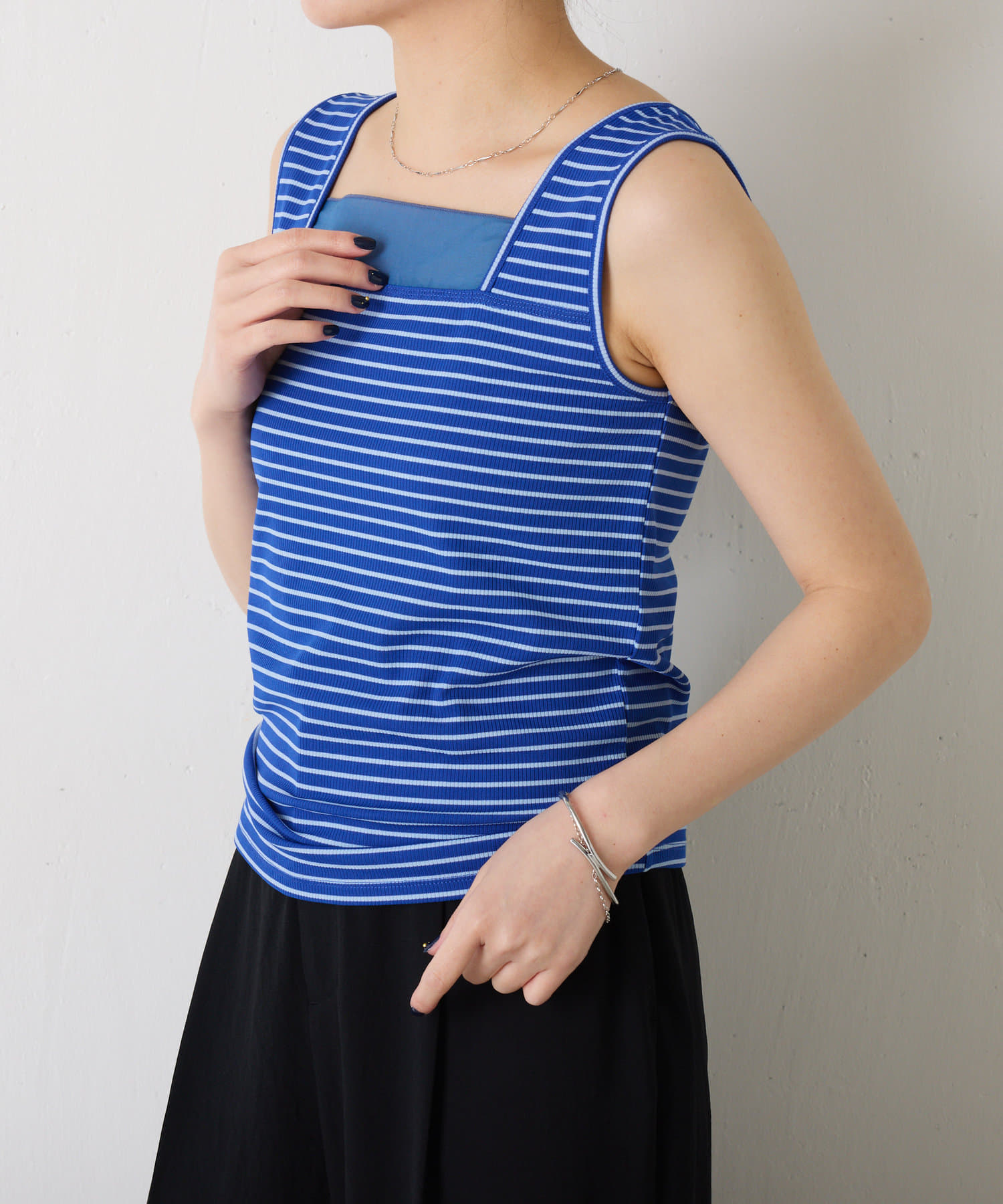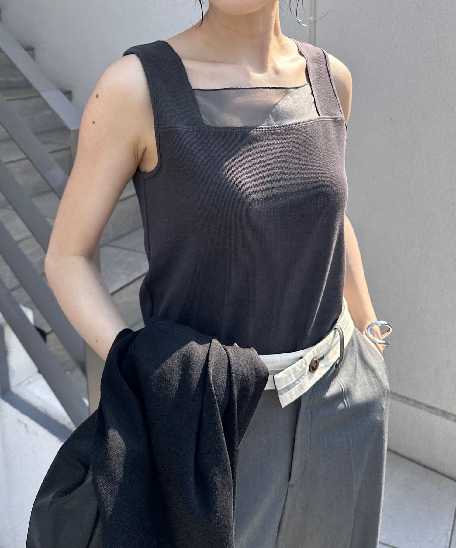 ・前後2wayで着用可能なのでシンプルなスクエアネックタンクとしてもお使いいただけます◎