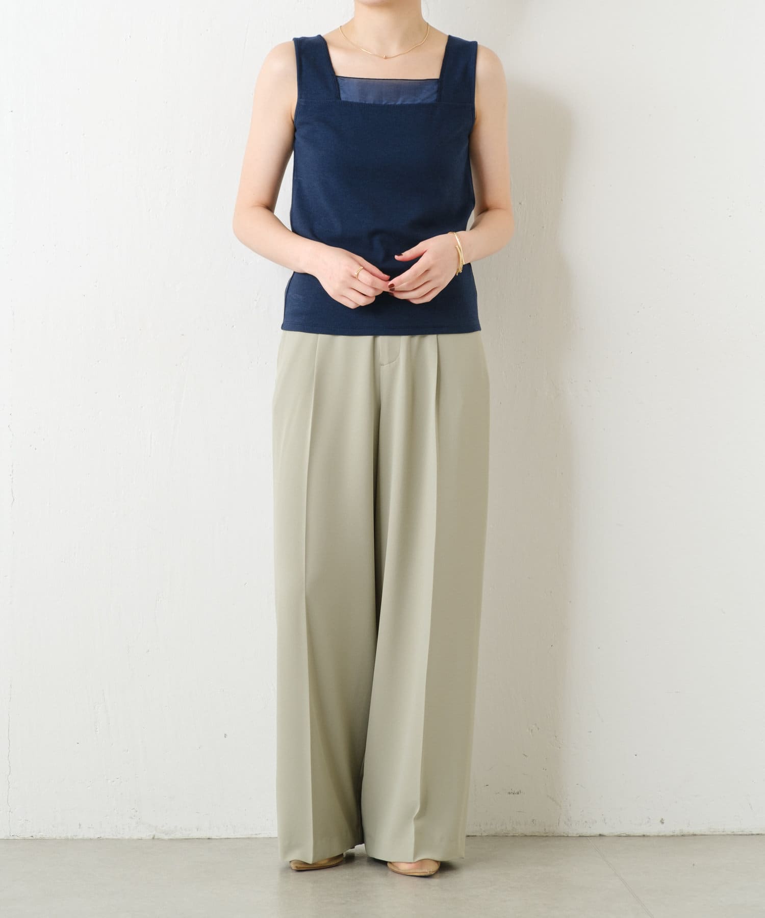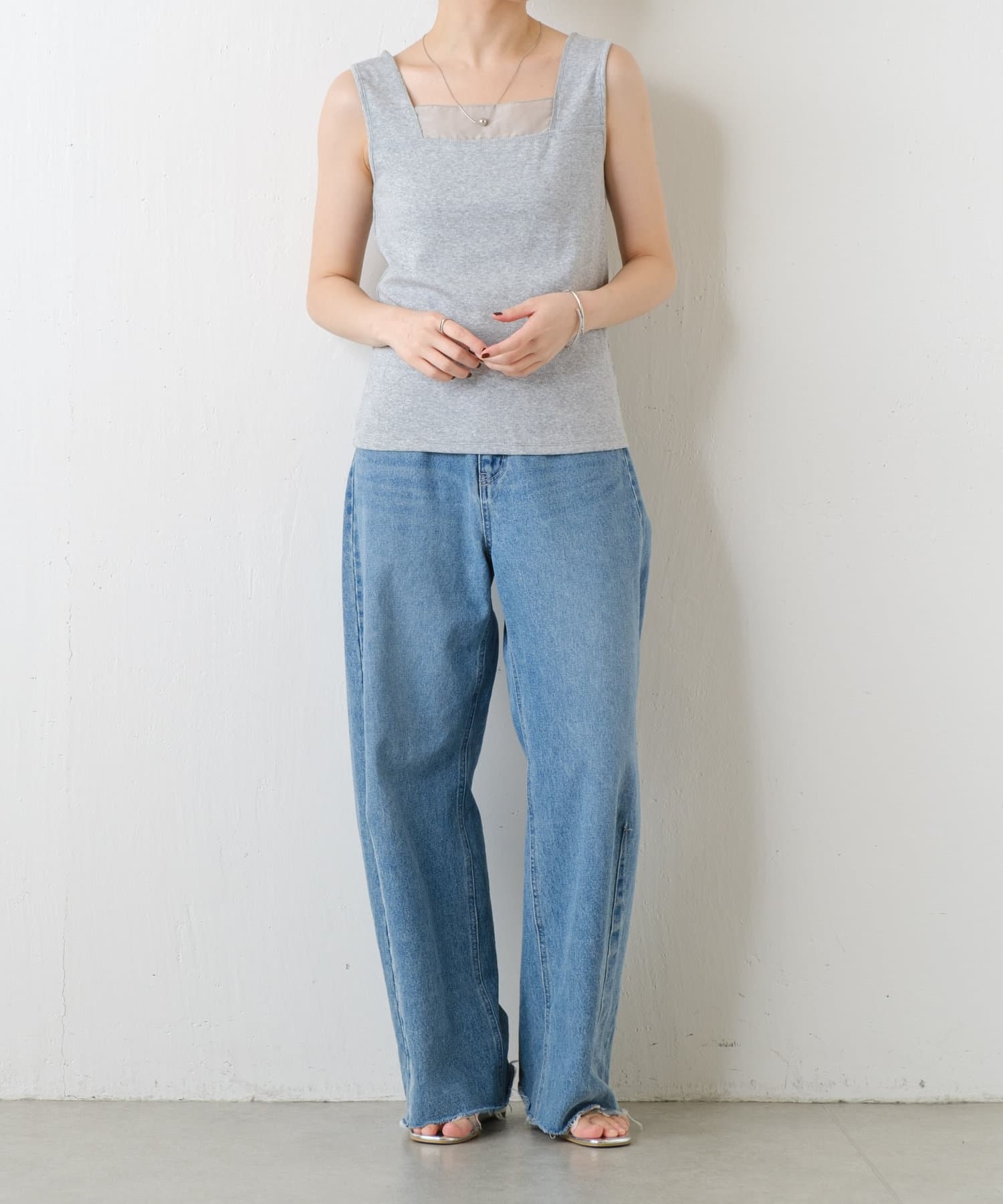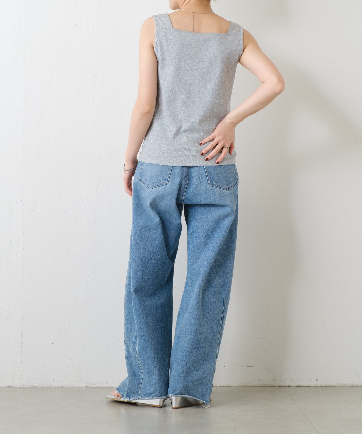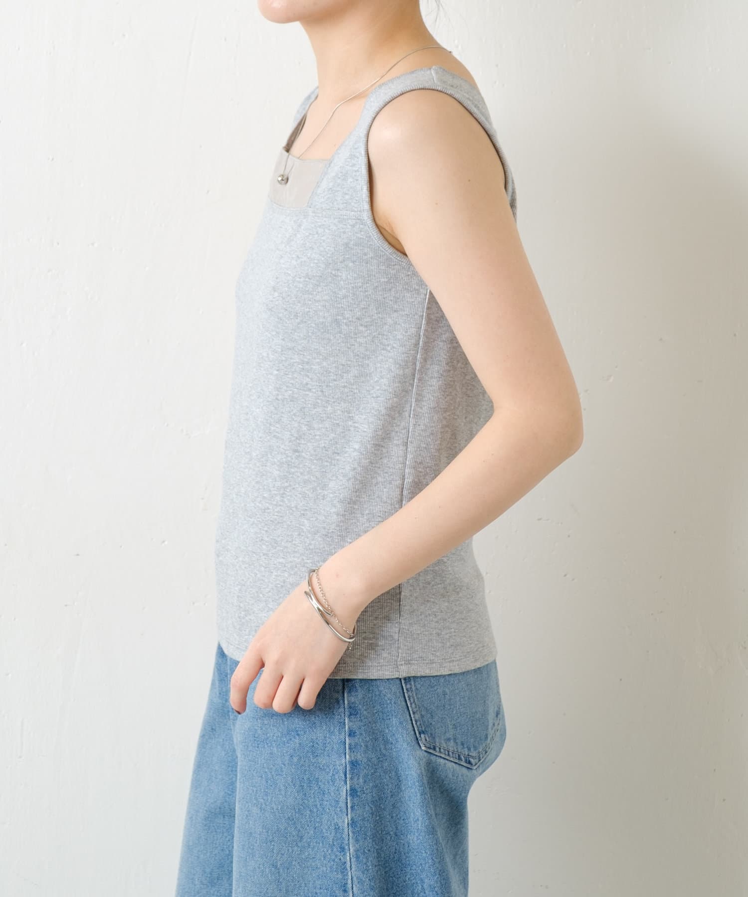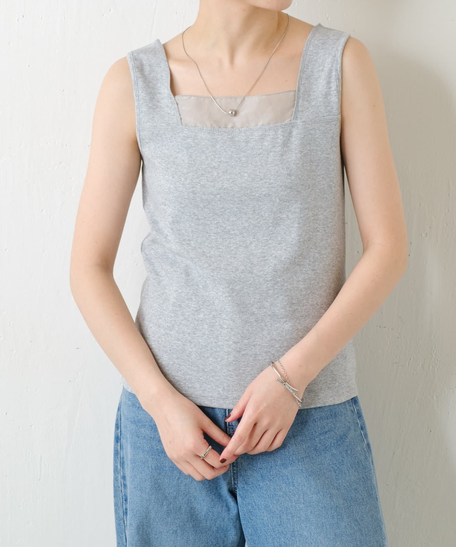・前後2wayで着用可能なのでシンプルなスクエアネックタンクとしてもお使いいただけます◎