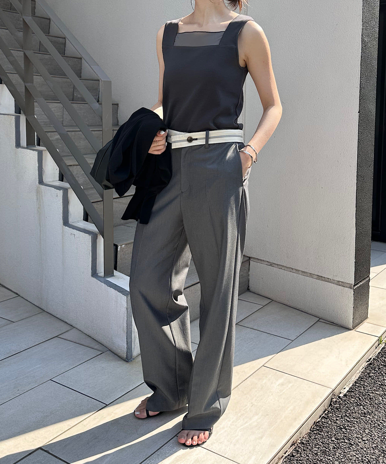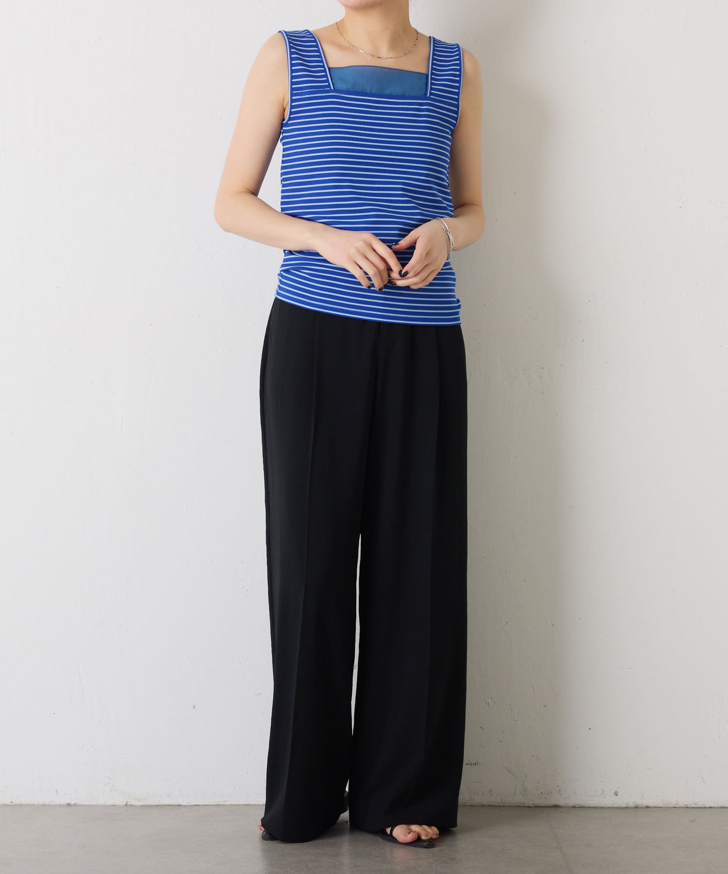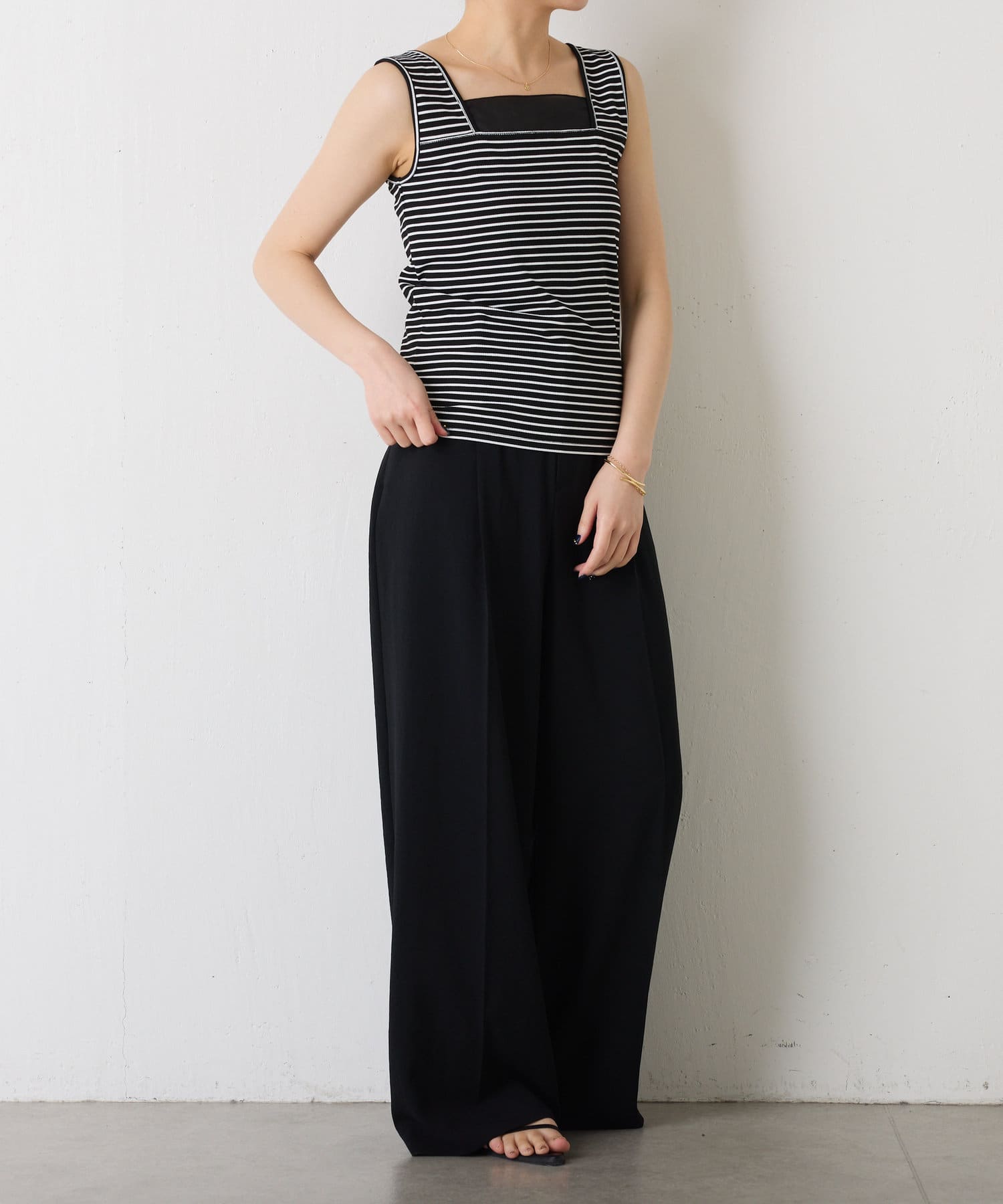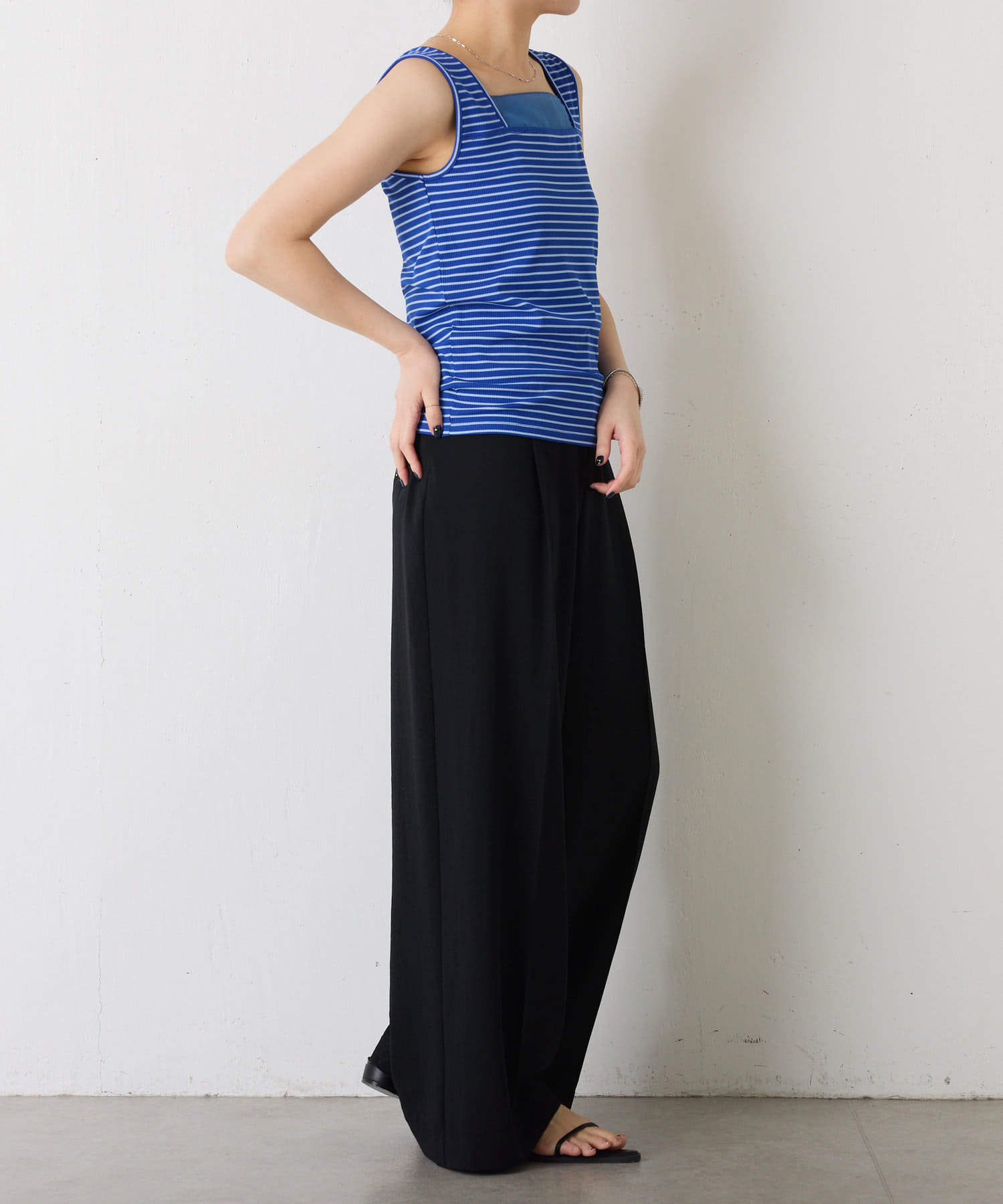 ・前後2wayで着用可能なのでシンプルなスクエアネックタンクとしてもお使いいただけます◎