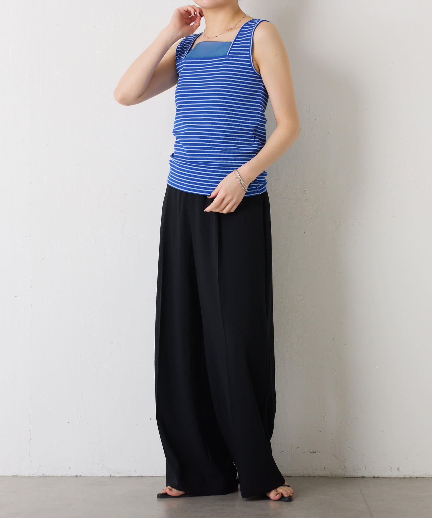 【一部カラー再販】【C′NOTE/ノート】 シアー切り替えスクエアタンクトップ