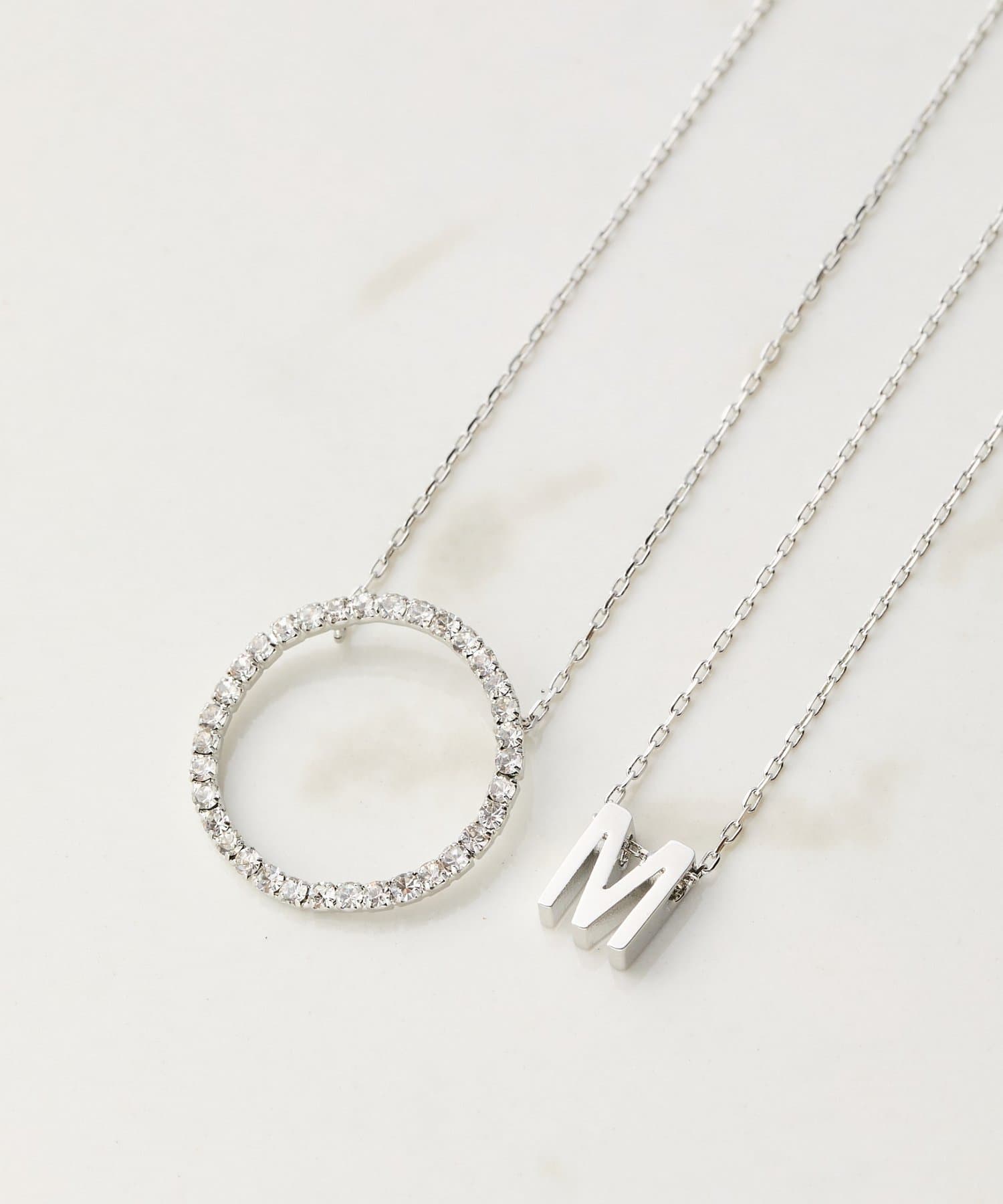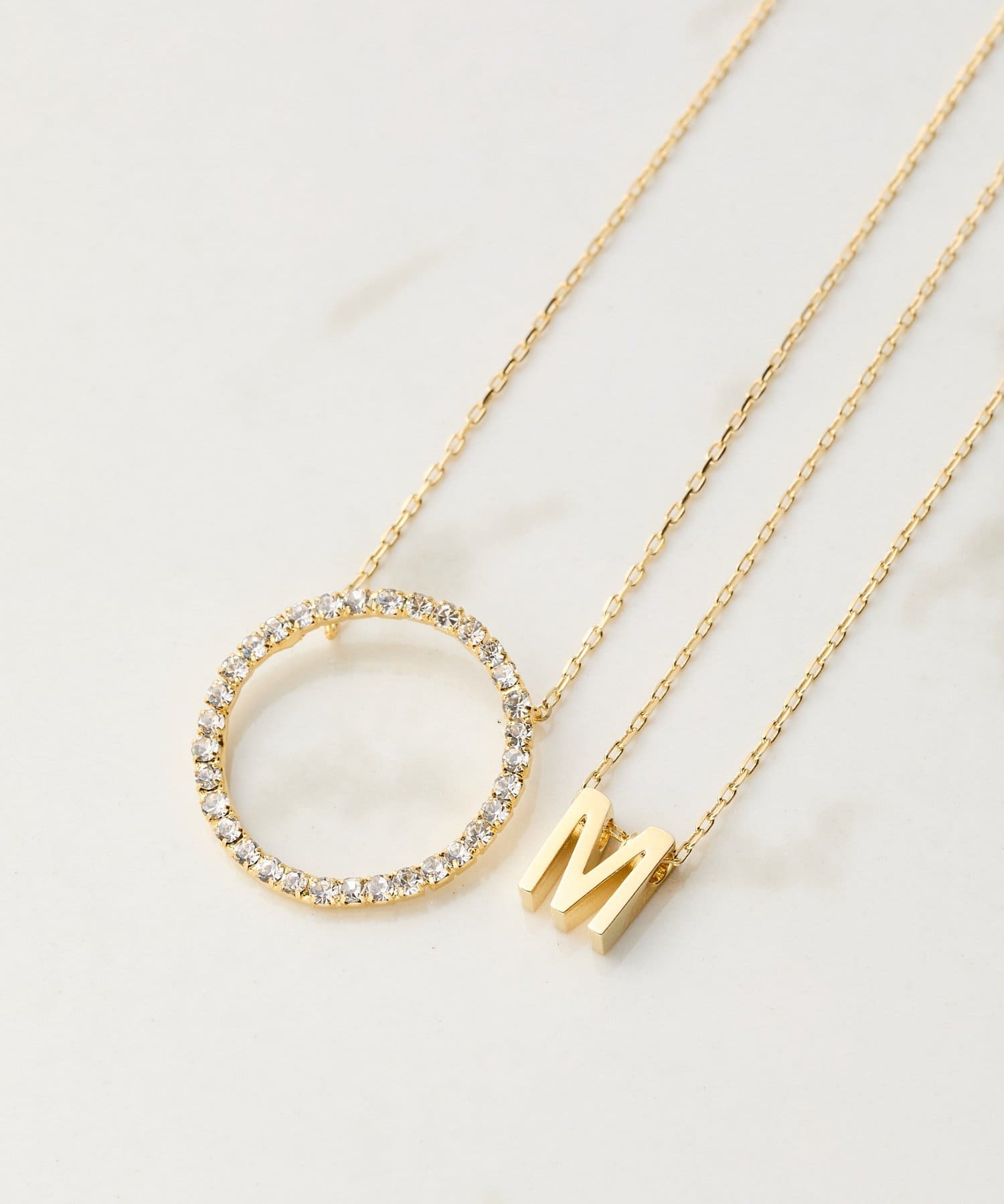 ・アルファベットモチーフとガラスのサークルモチーフのネックレスをセットにしました。