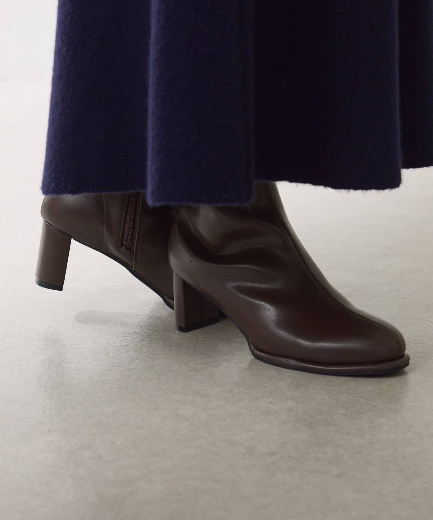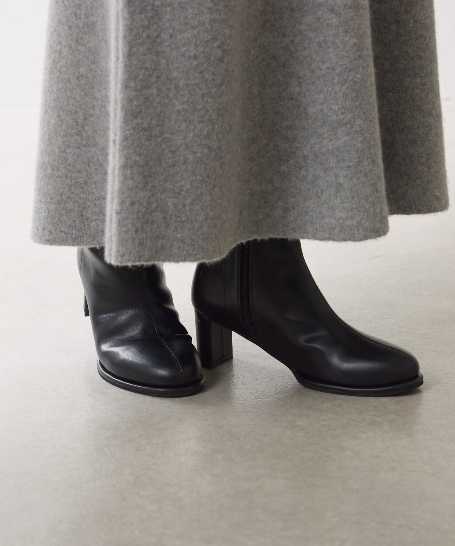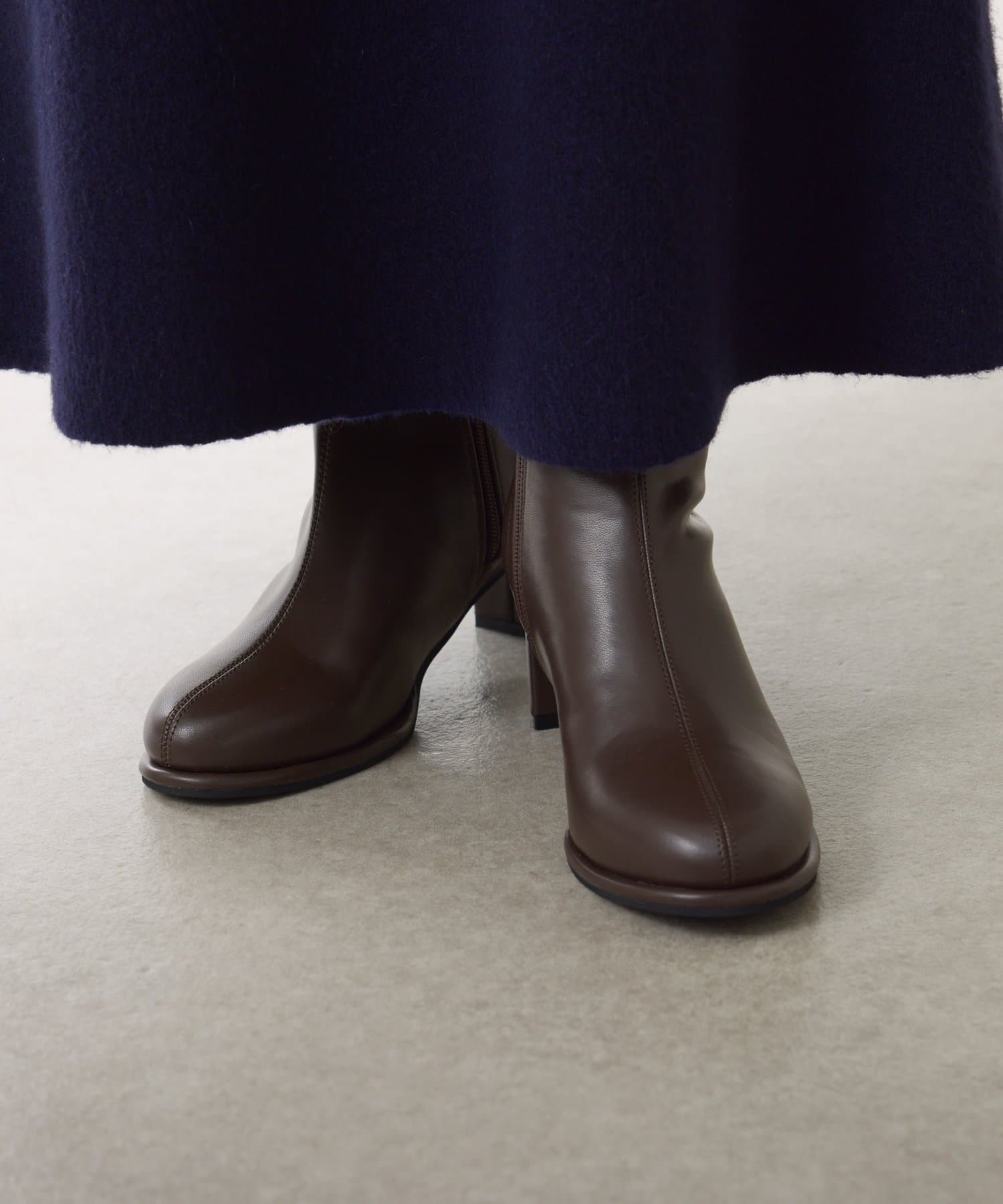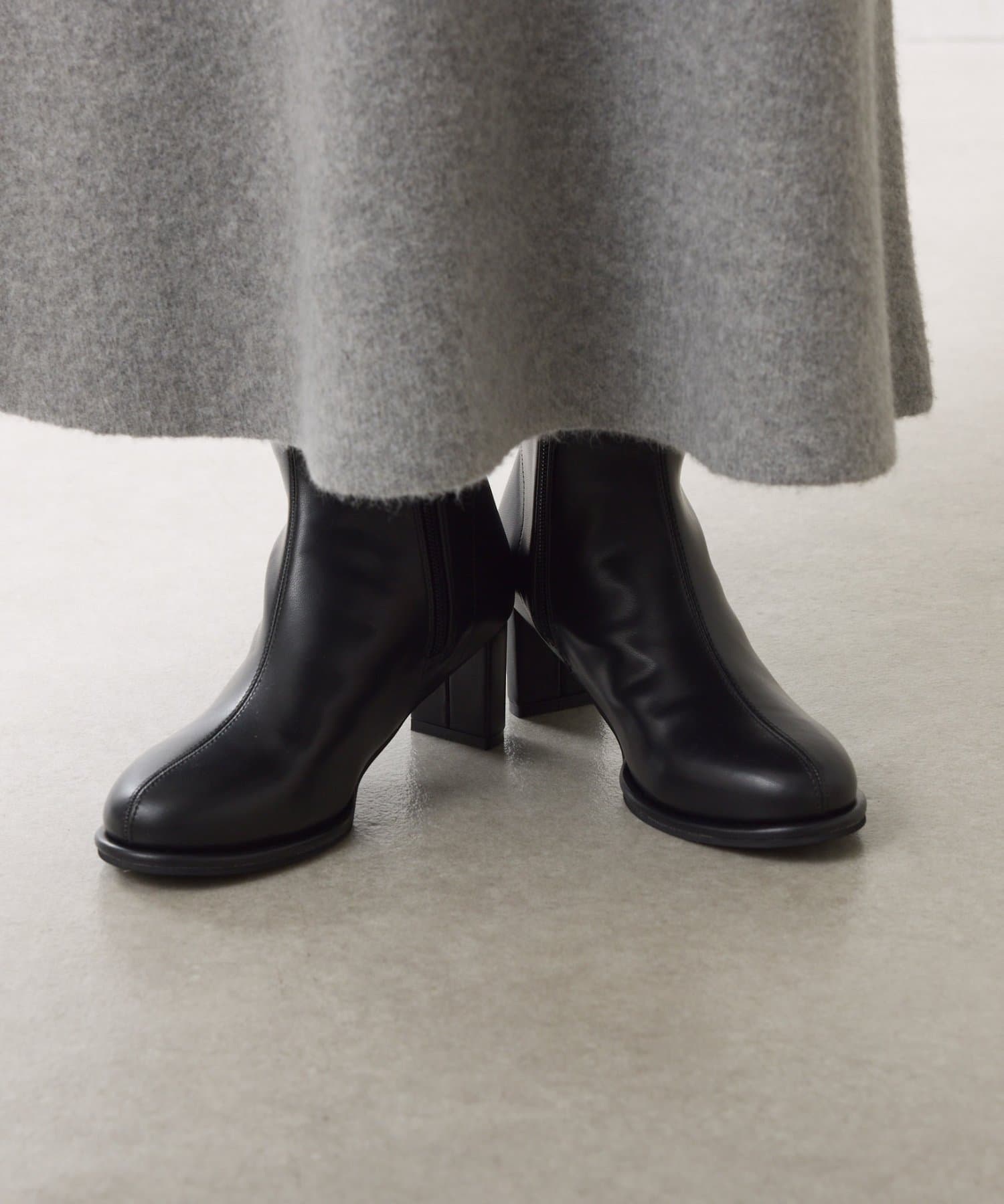 ・少しぽってりしたラウンドトゥがポイントで、コーディネートに柔らかさをプラス出来るショートブーツです。