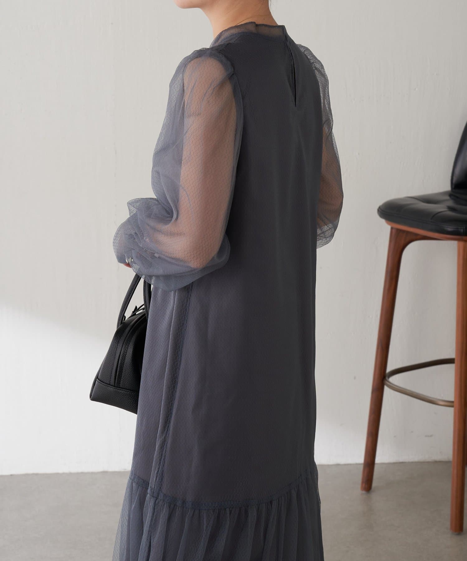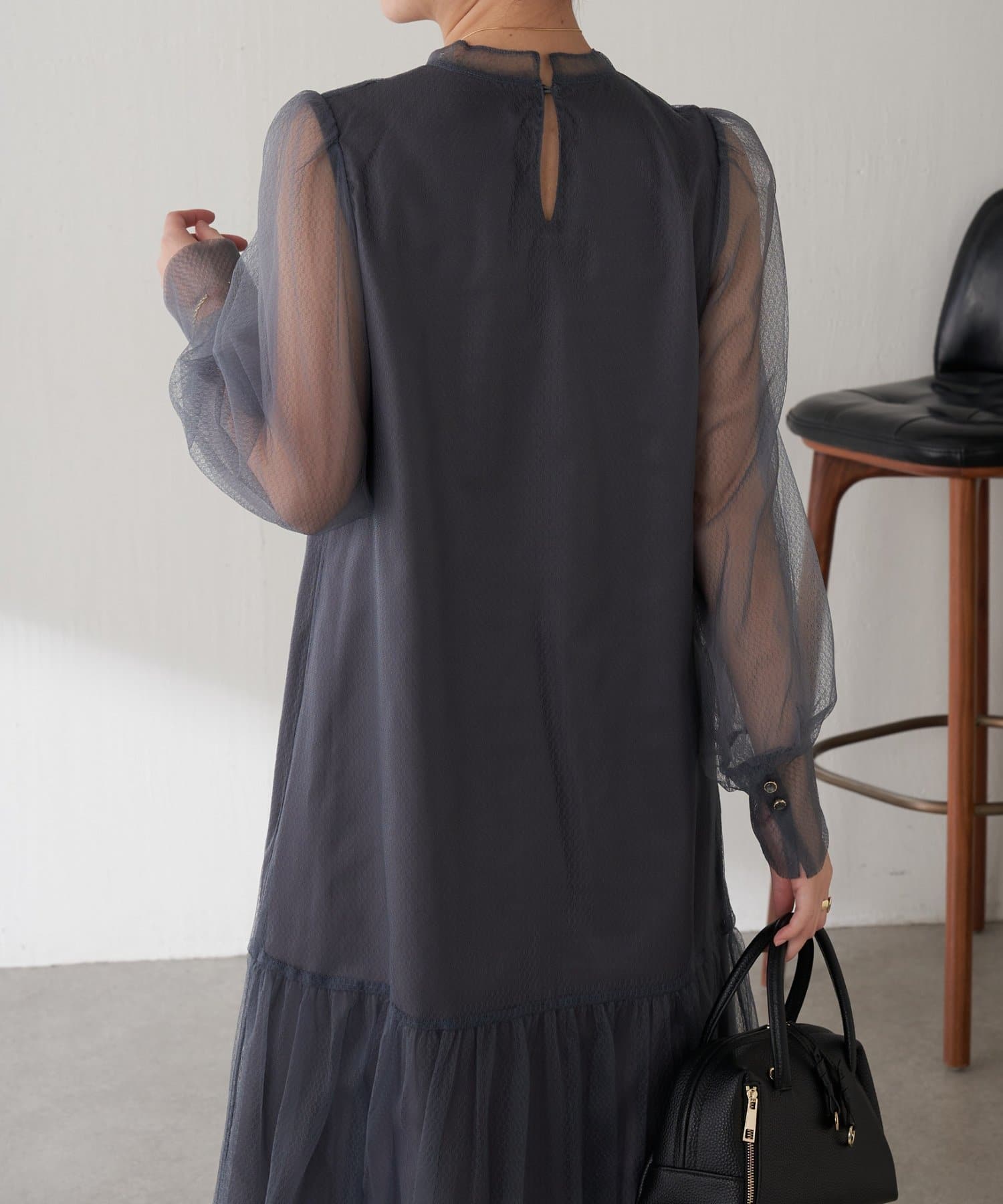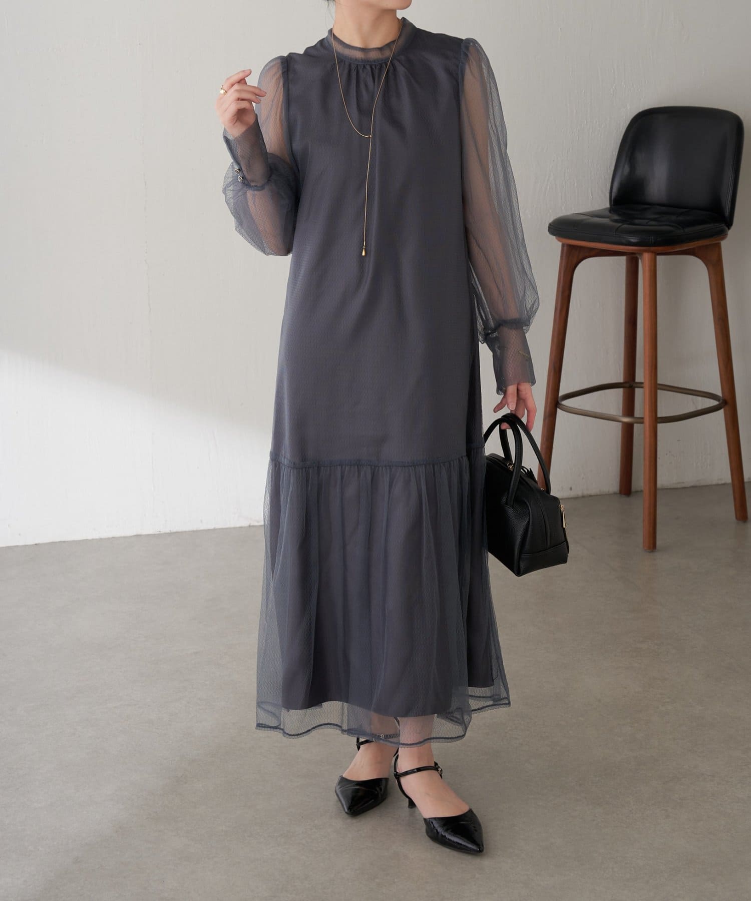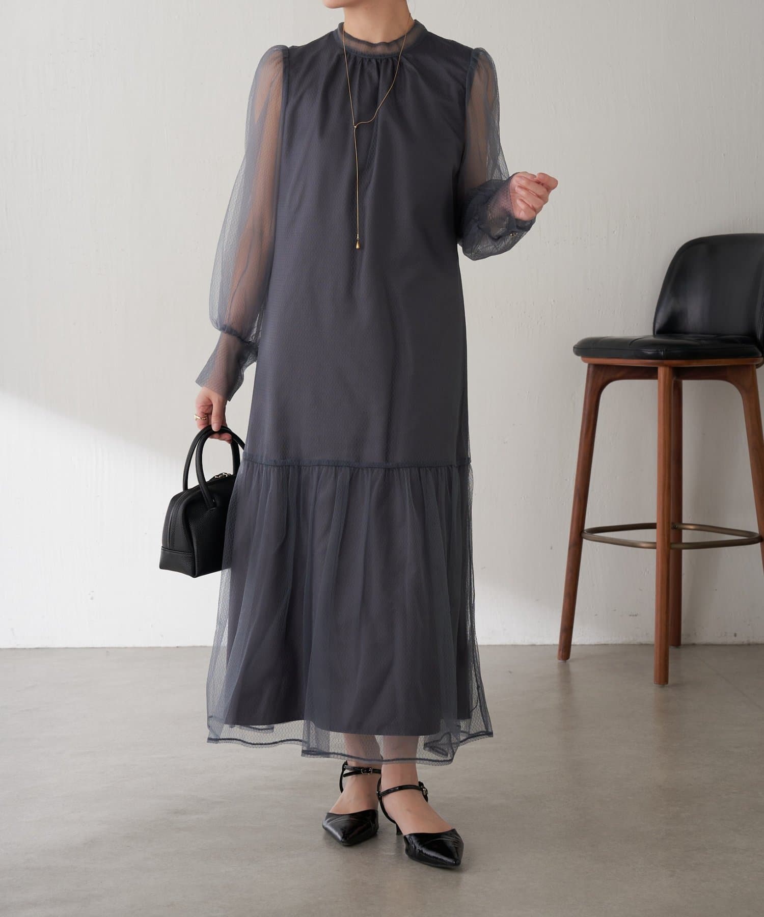 ・軽やかで表情のあるオーガンジーを重ねた上品ワンピース。