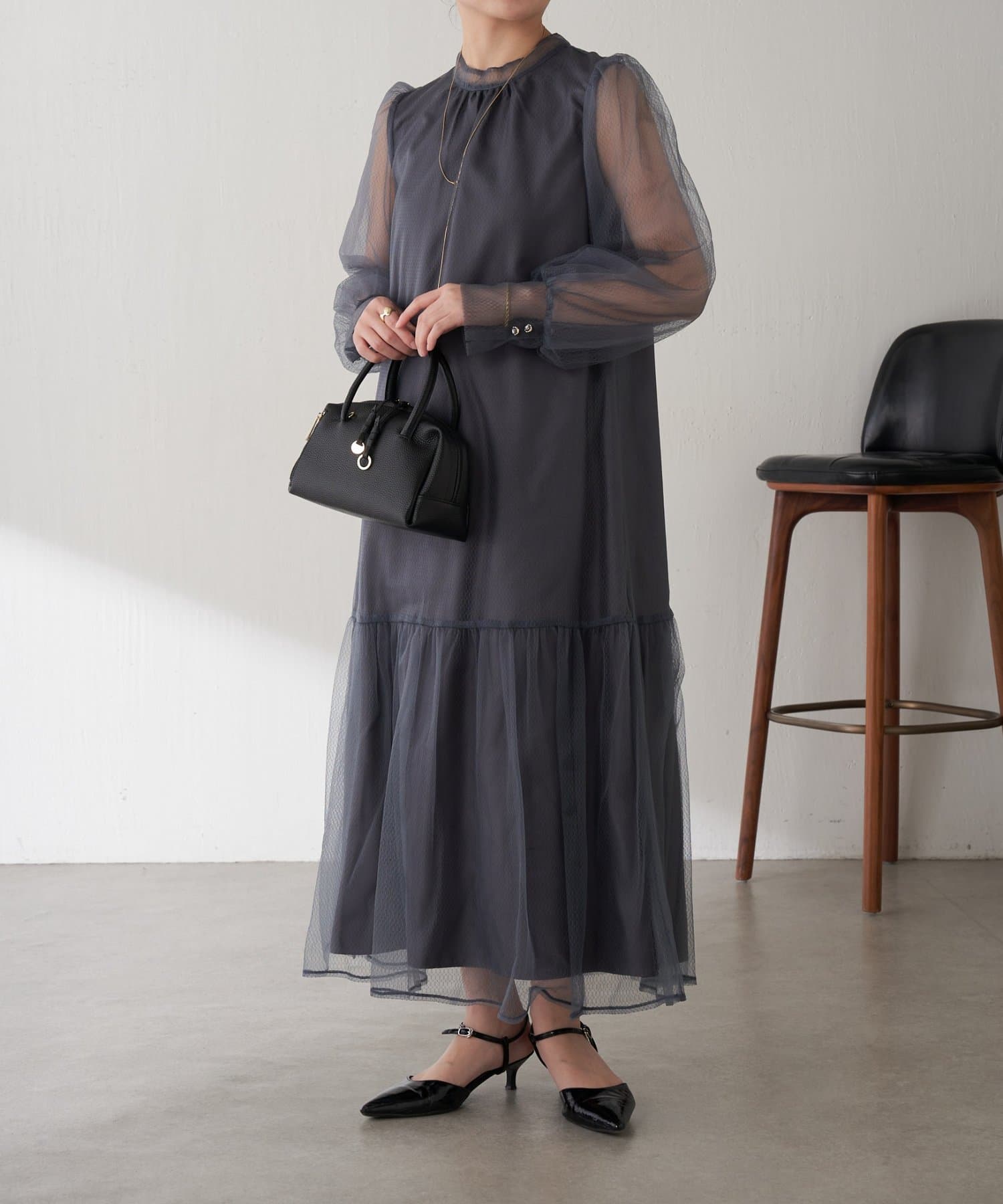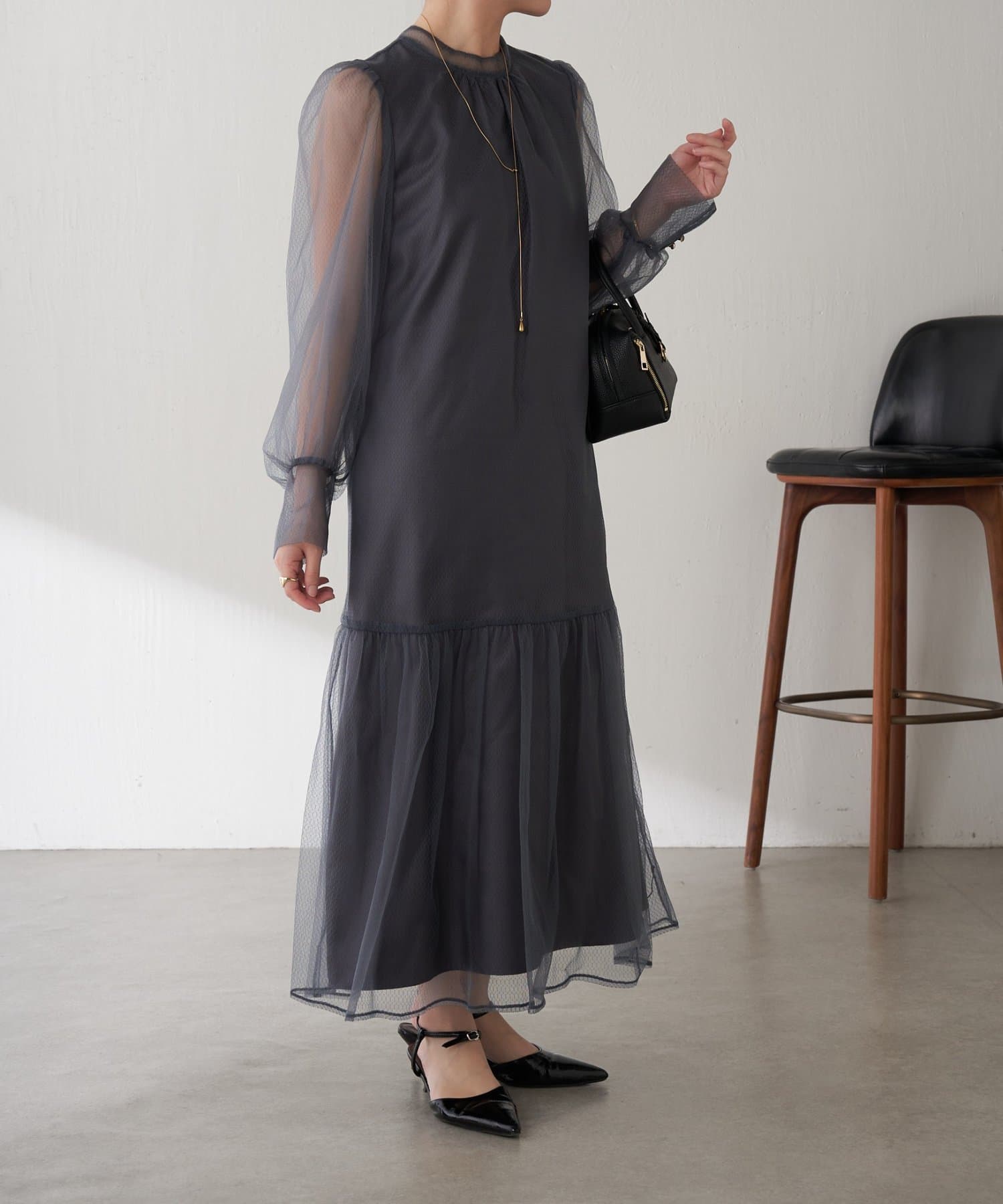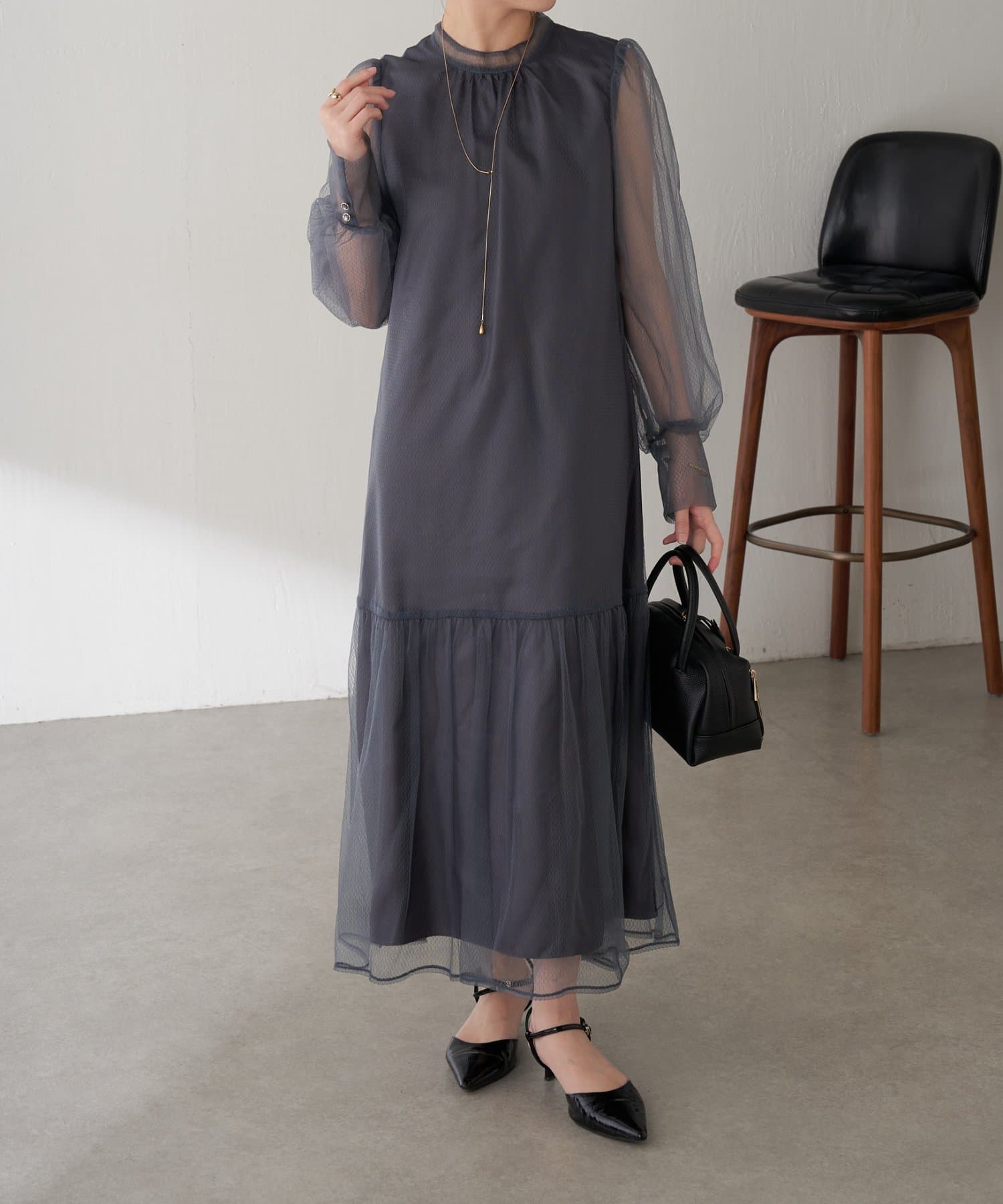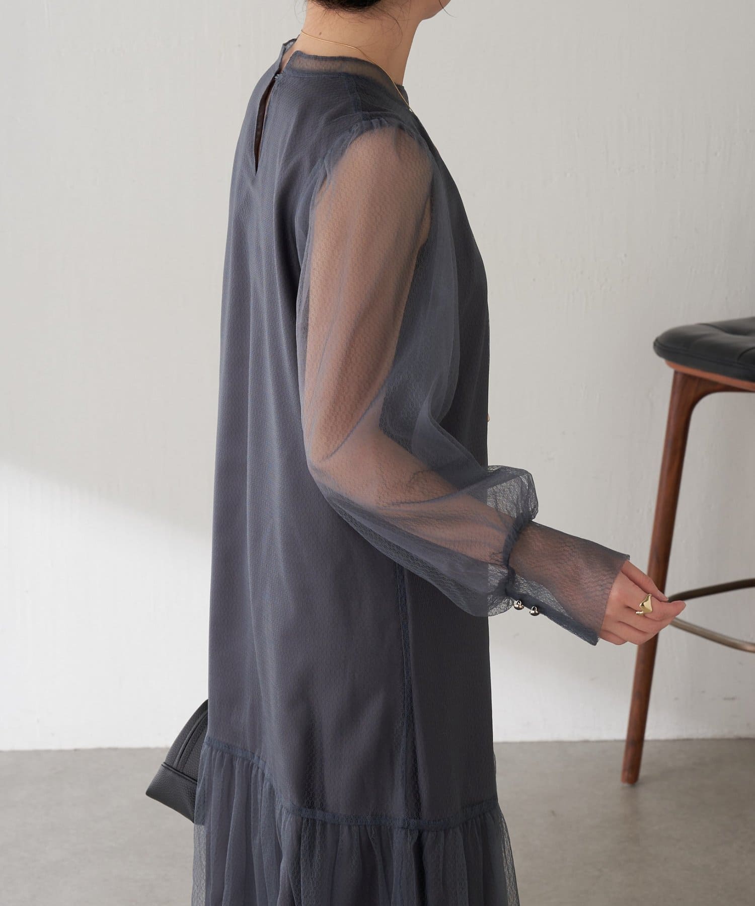 ・軽やかで表情のあるオーガンジーを重ねた上品ワンピース。