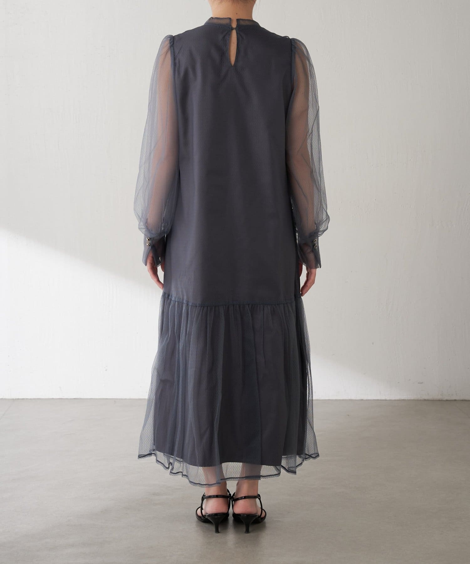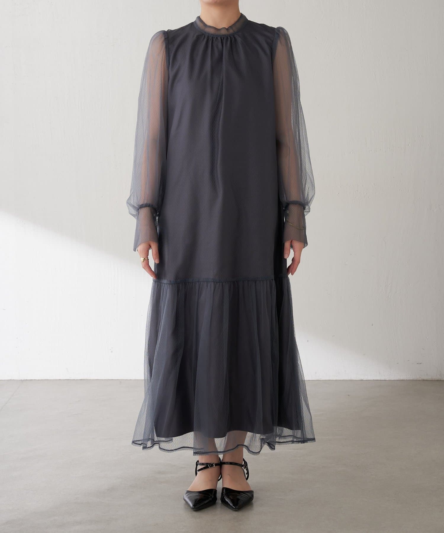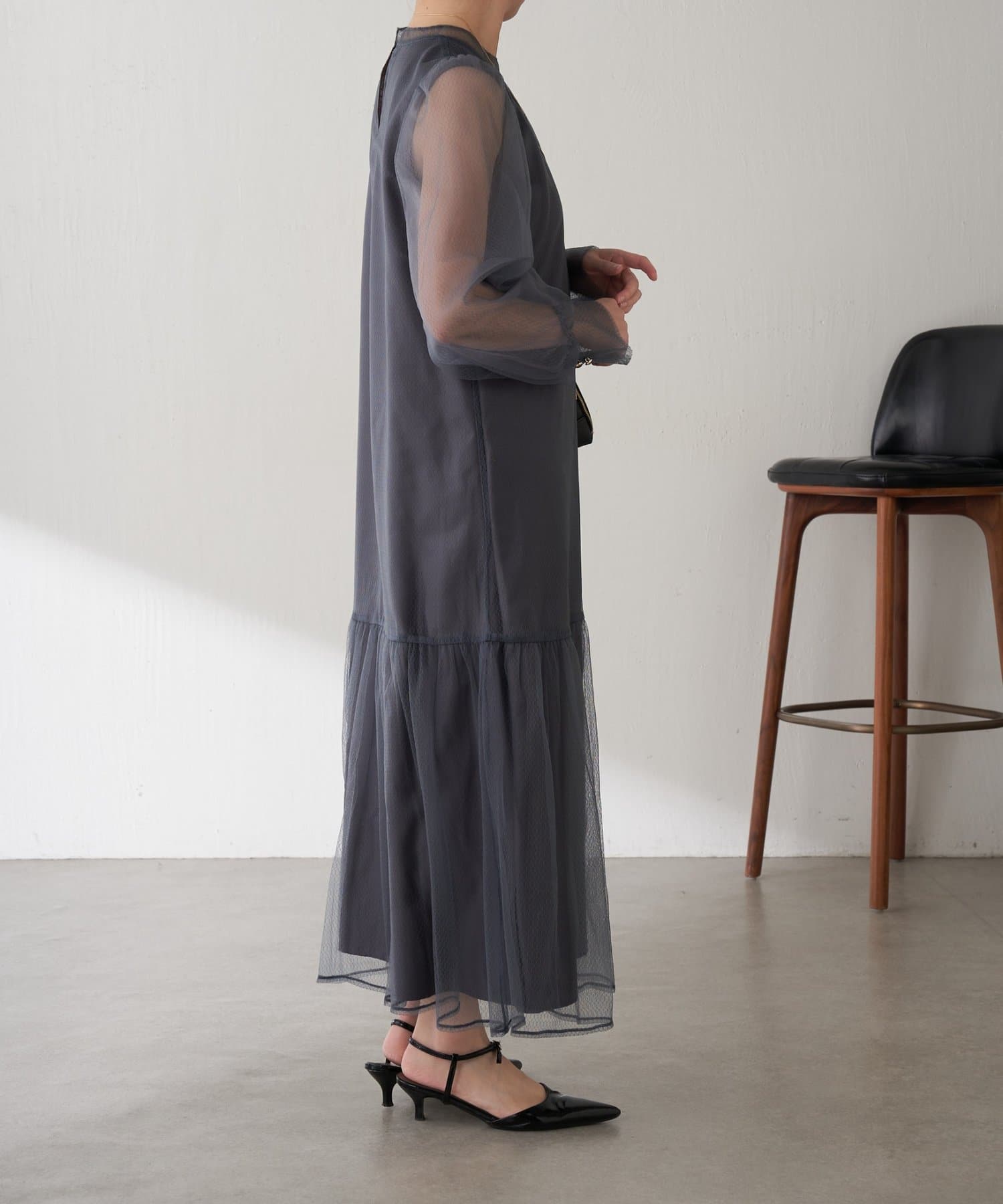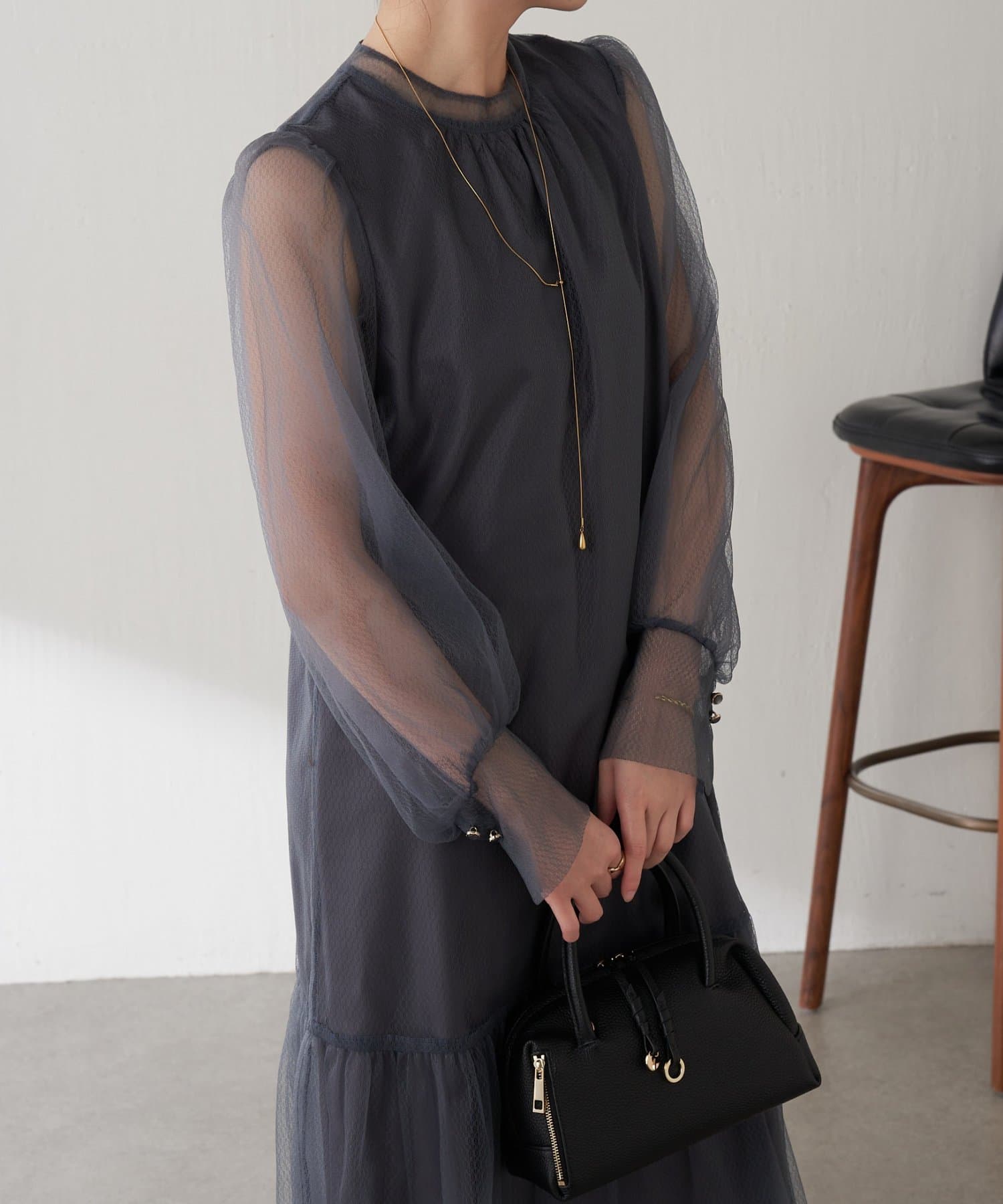 ・軽やかで表情のあるオーガンジーを重ねた上品ワンピース。