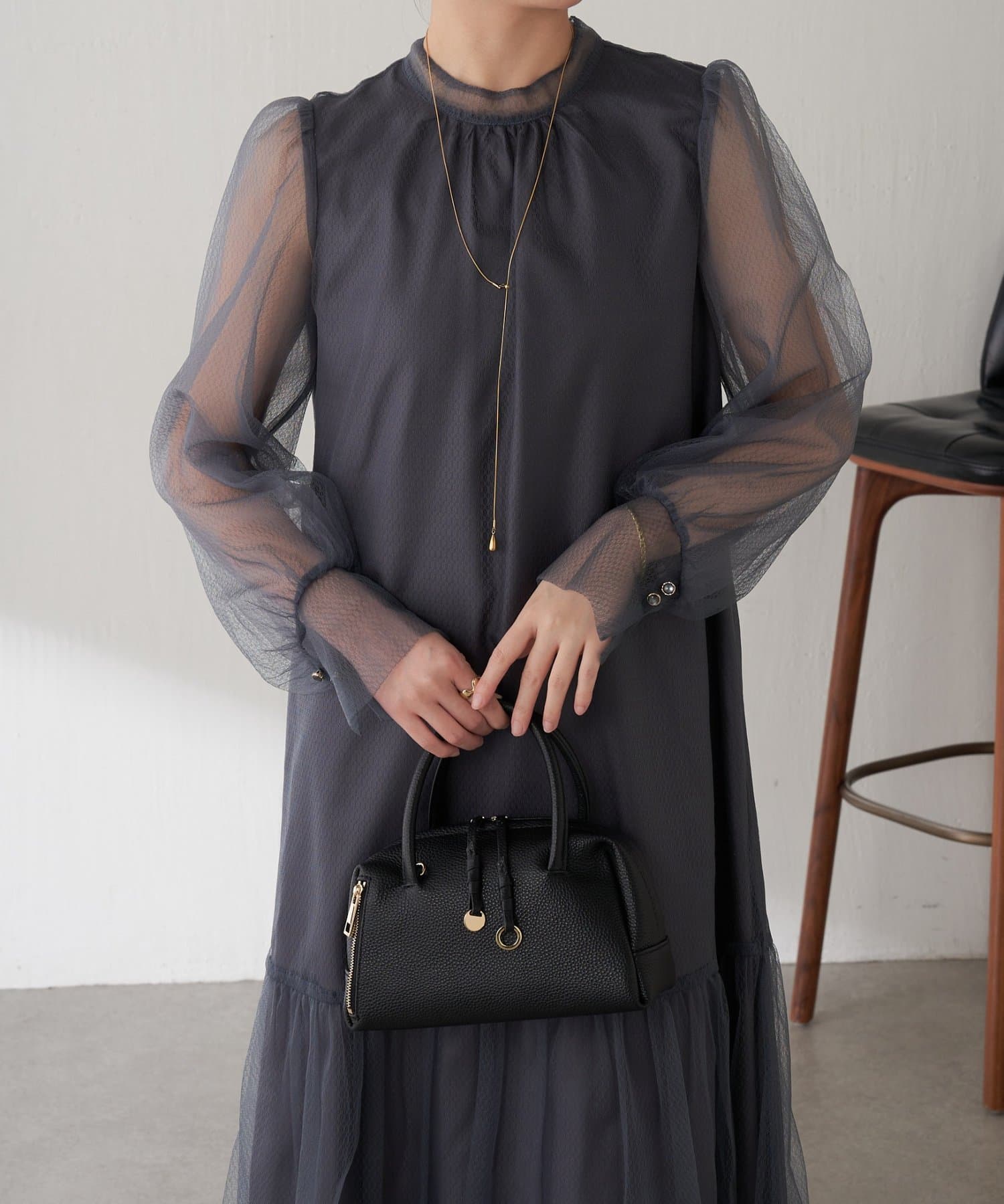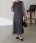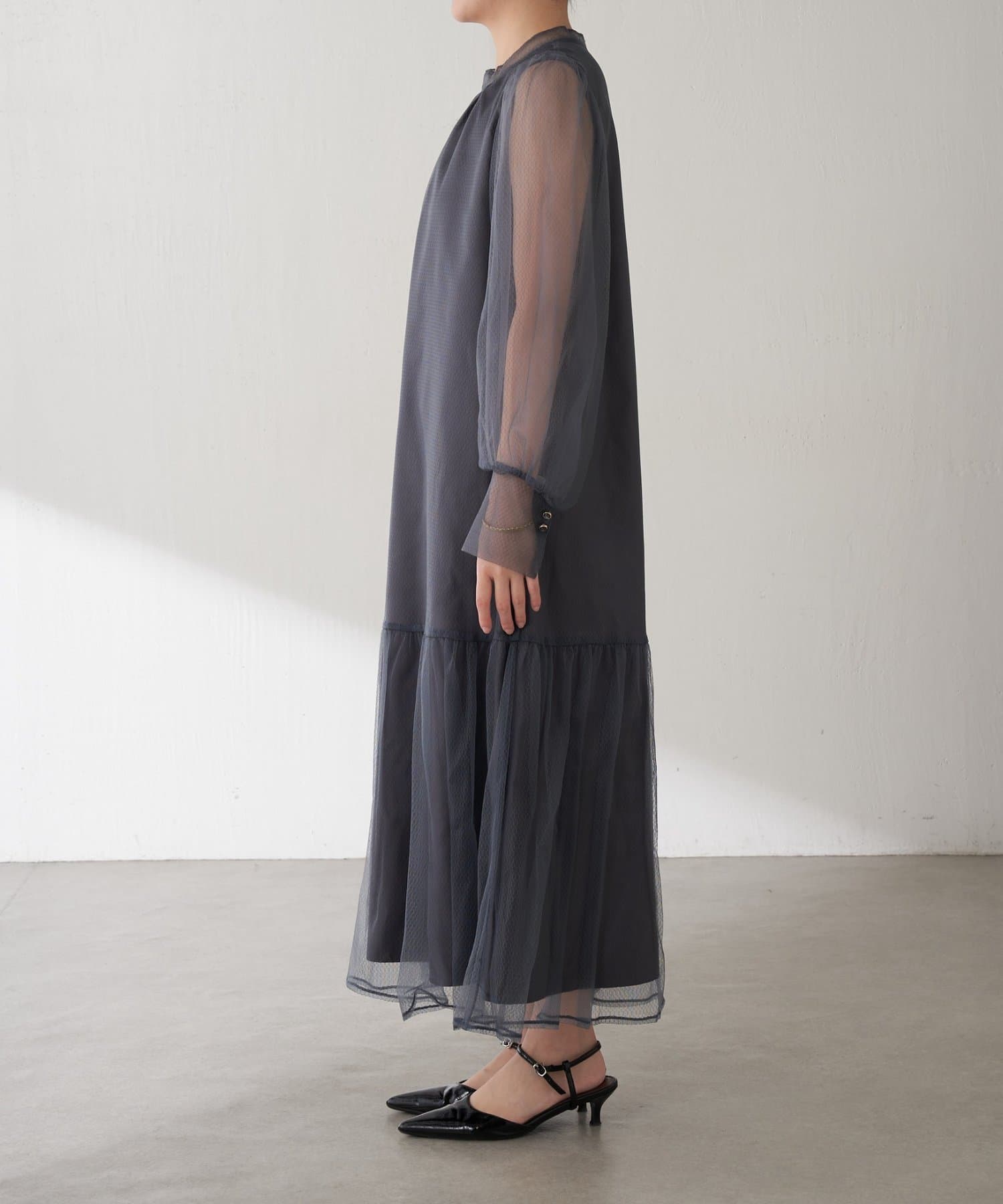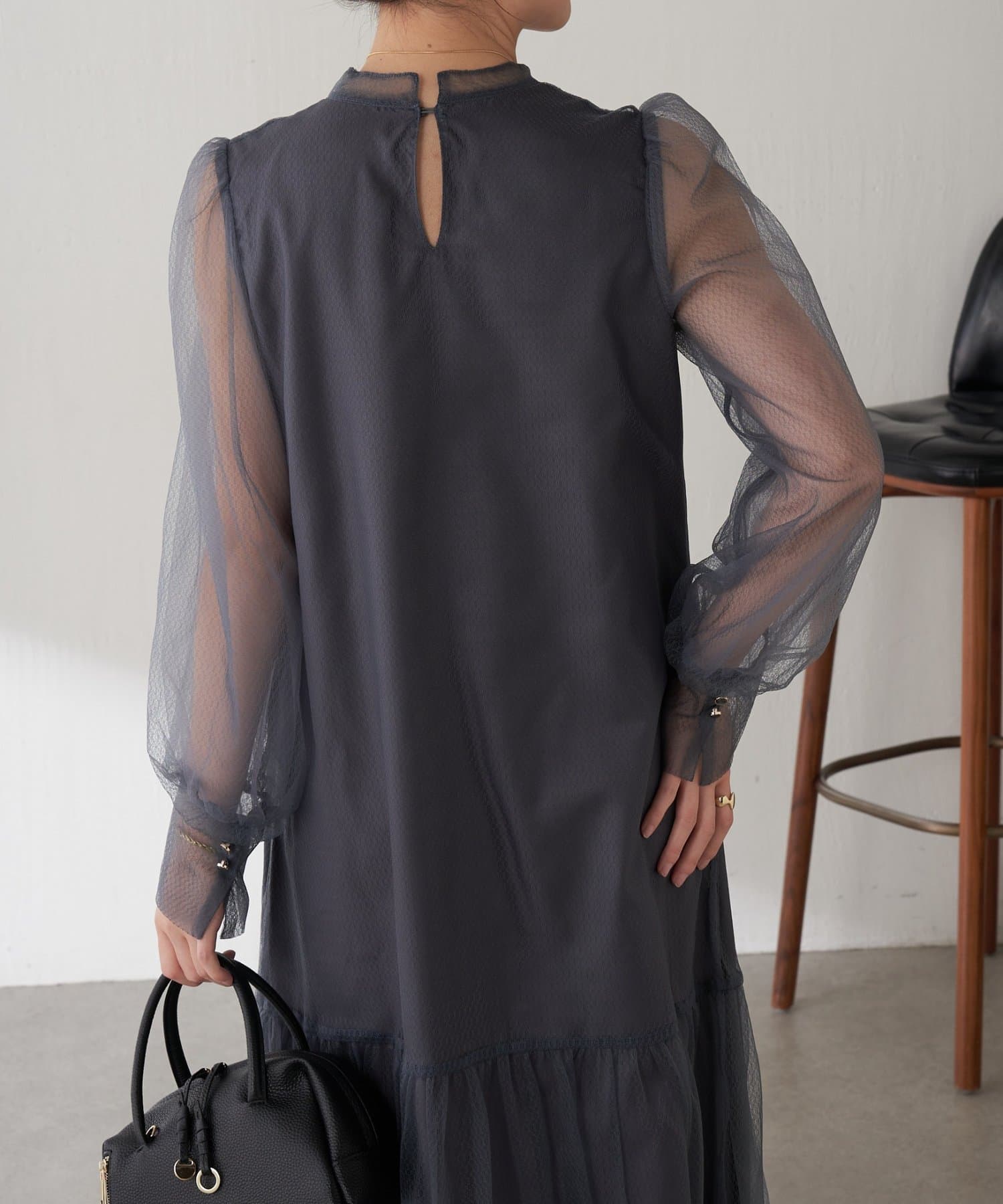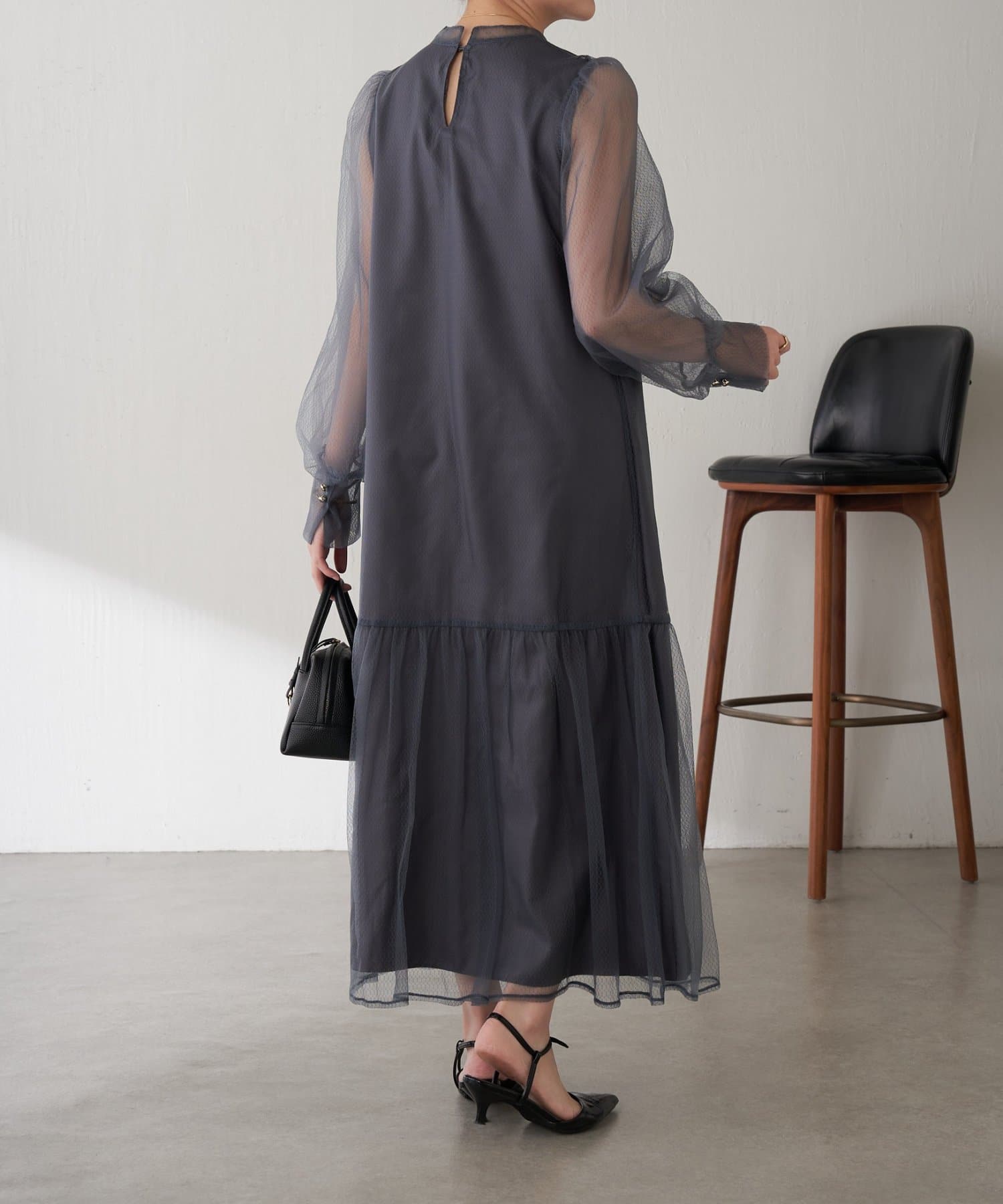 ・軽やかで表情のあるオーガンジーを重ねた上品ワンピース。