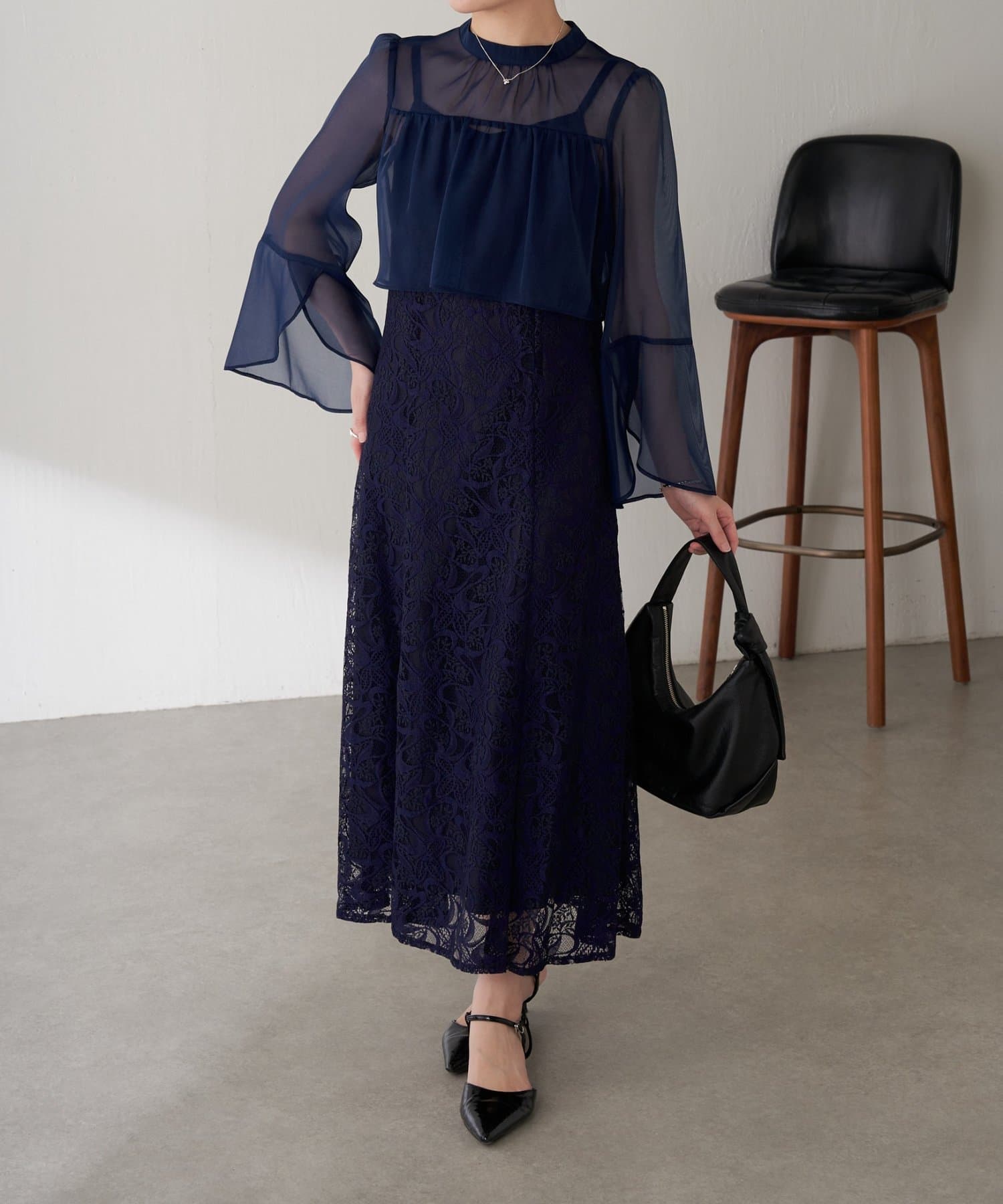 【オケージョン】シフォンレースワンピース/セットアイテム