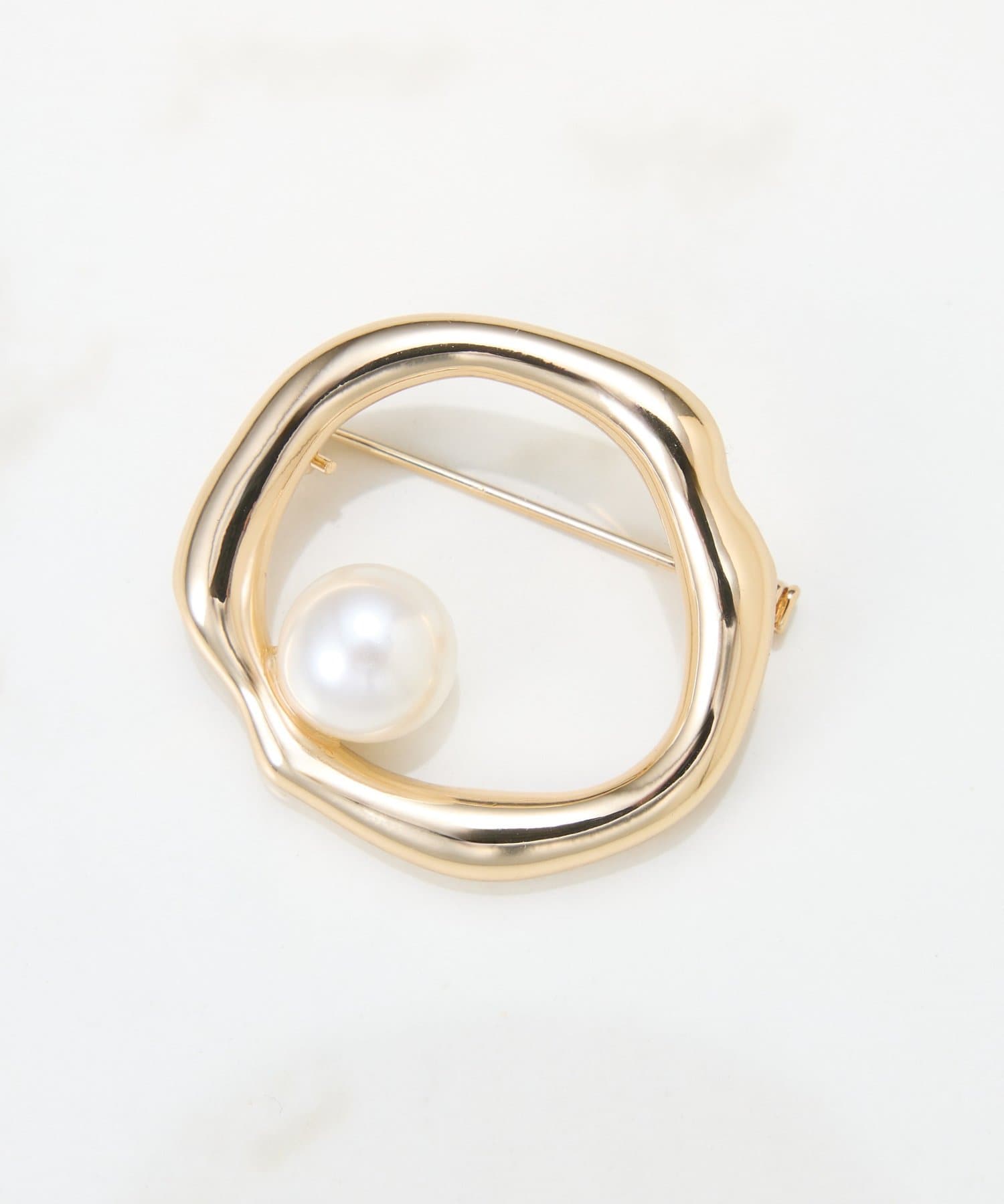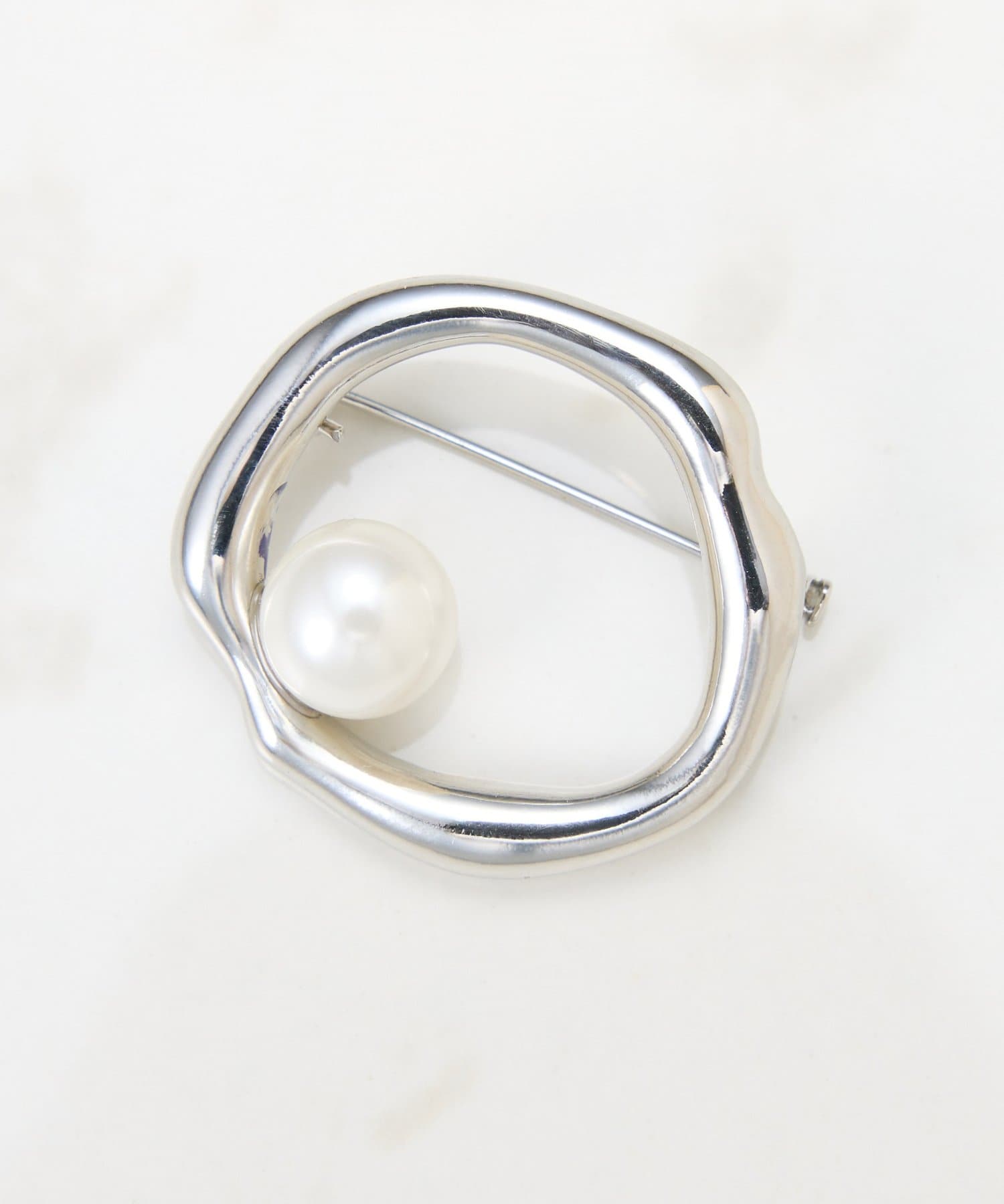 ・大きめのパールがアクセントになったラウンド型のブローチ。