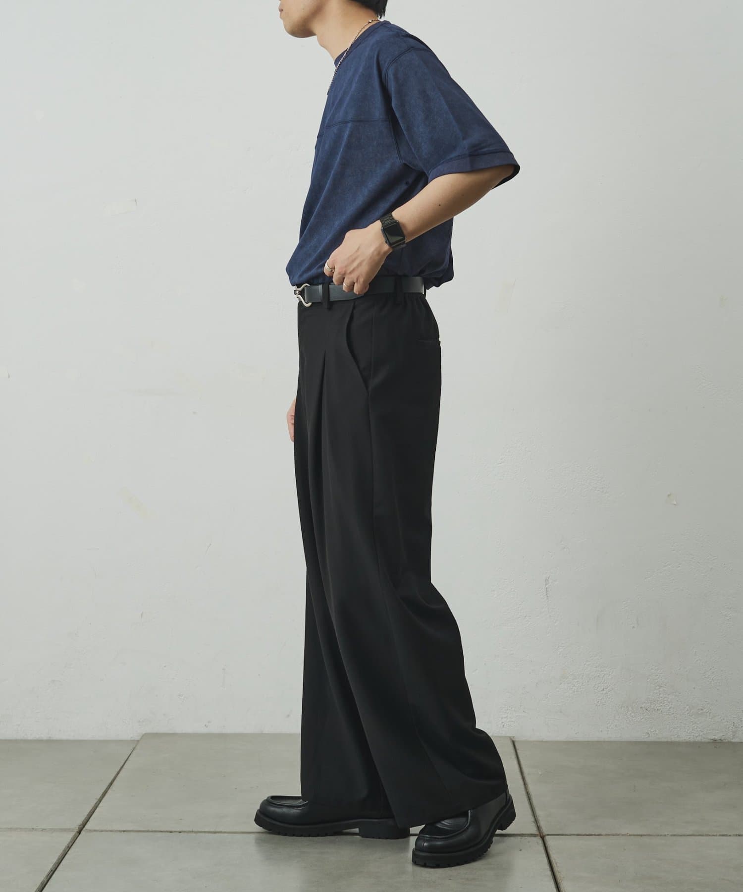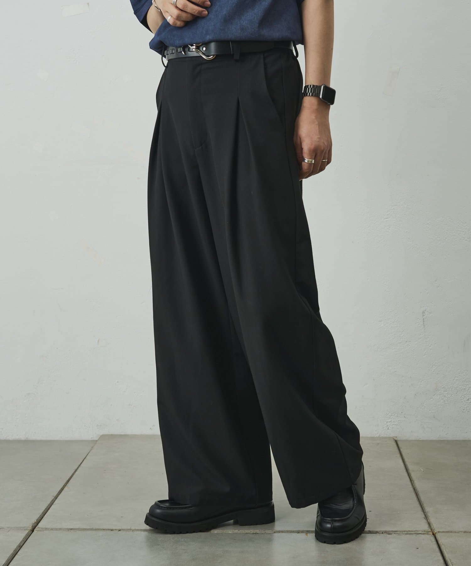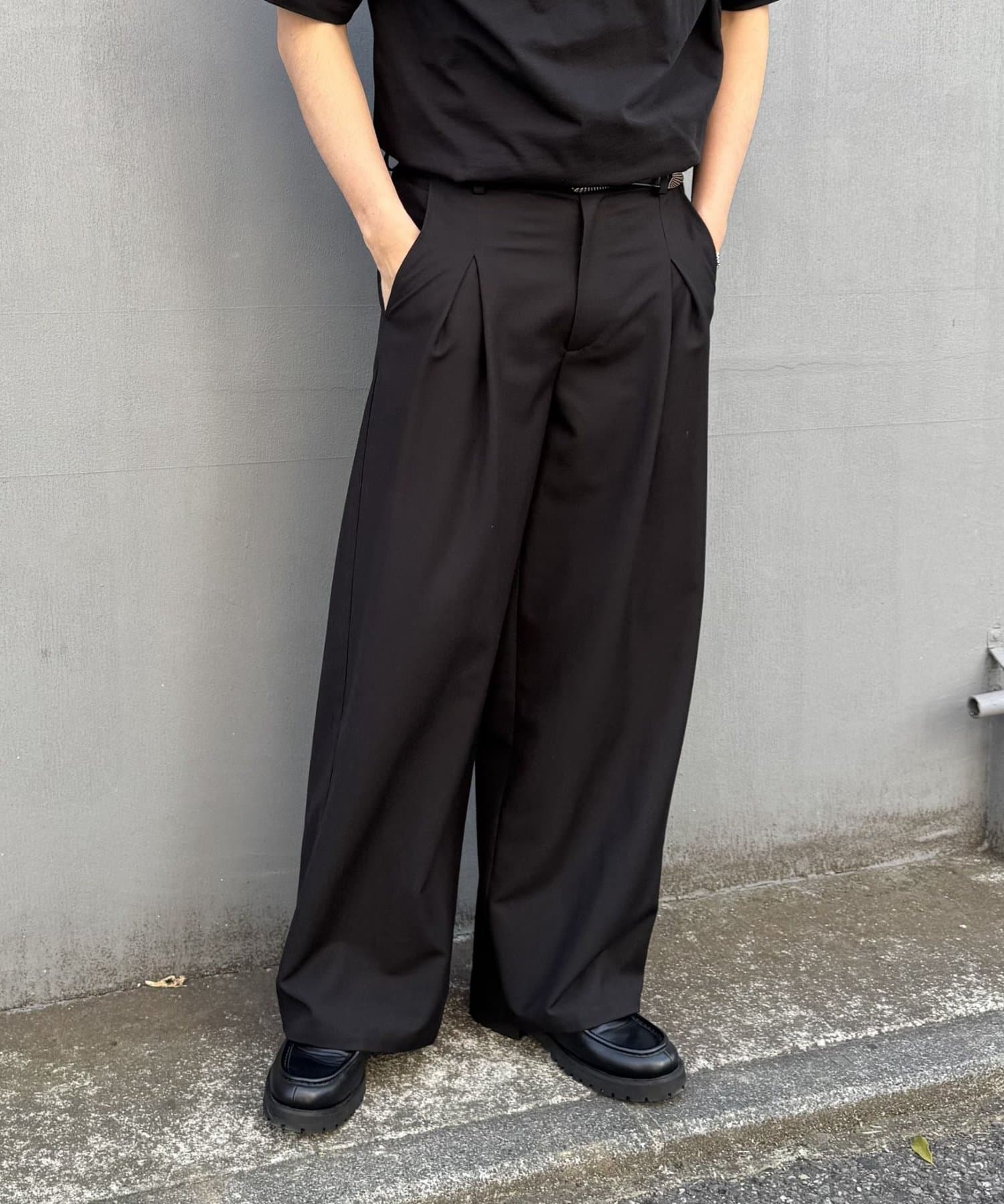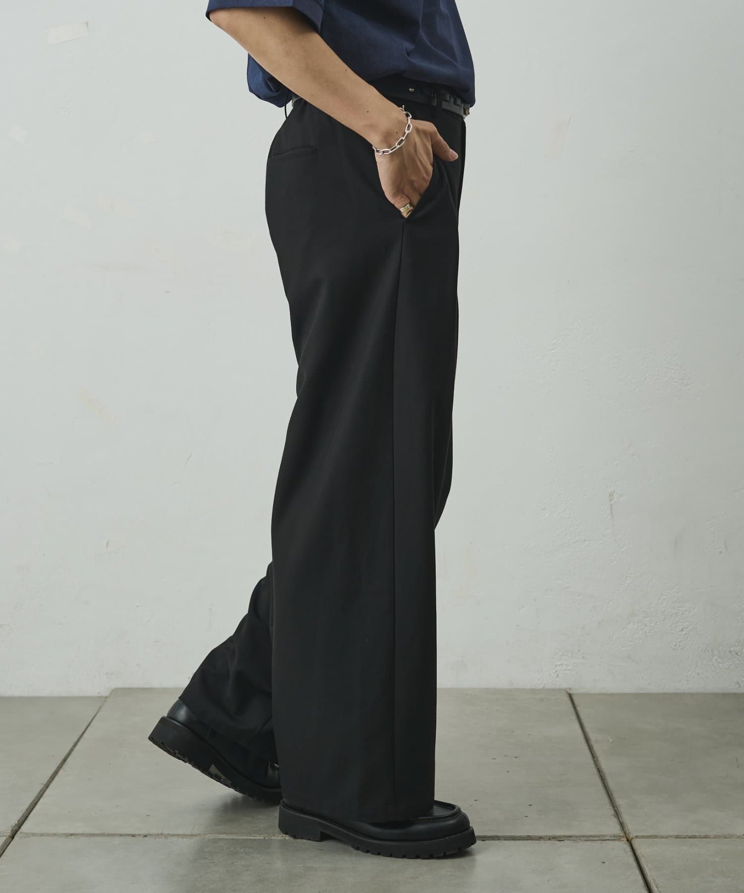 通常のスラックスよりもゆったりとしたより広いシルエットが特徴的なパンツで、