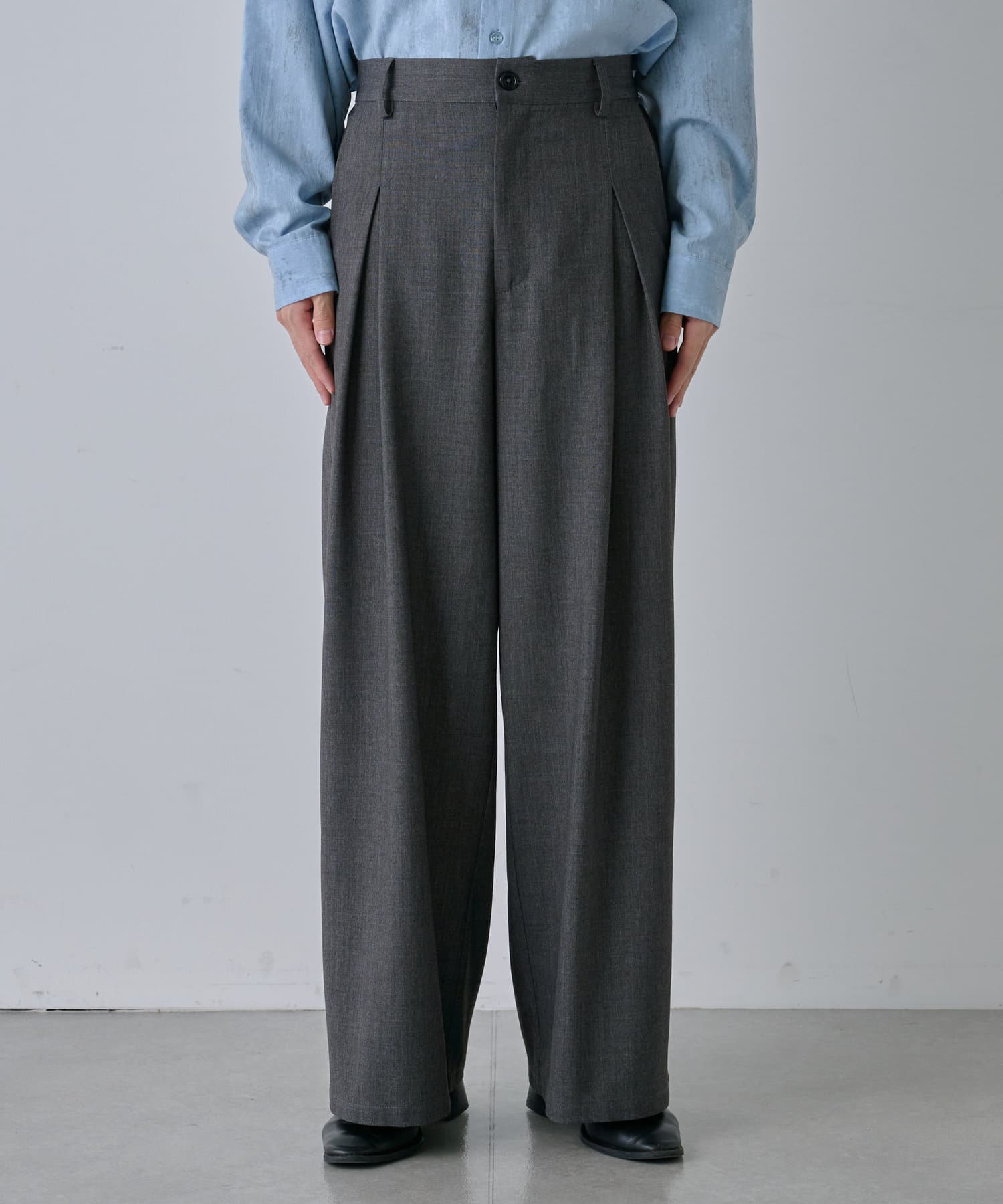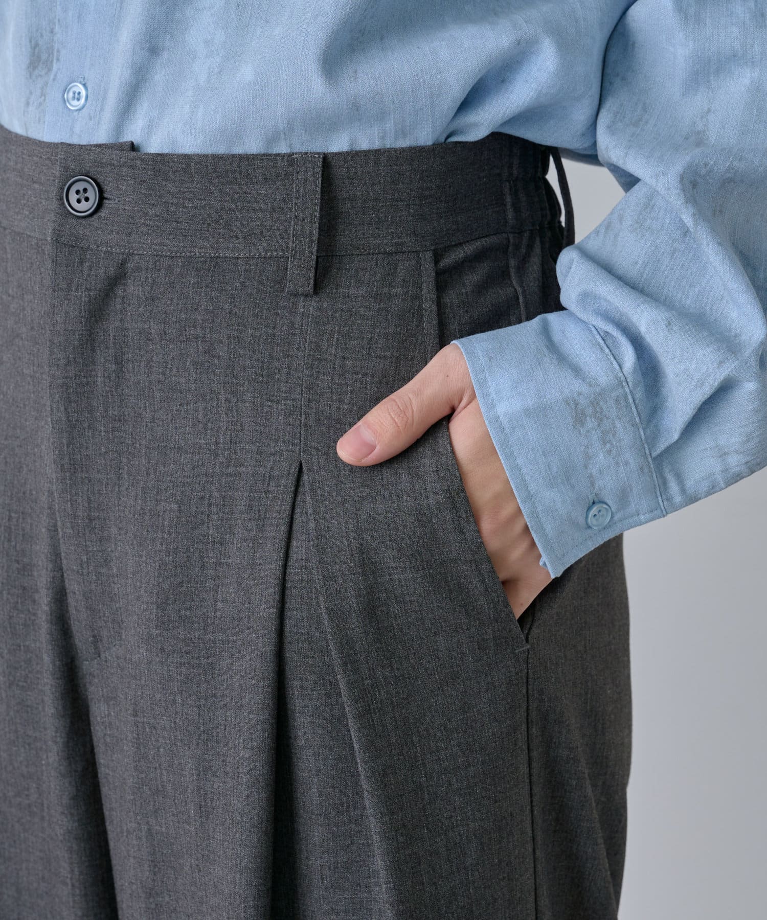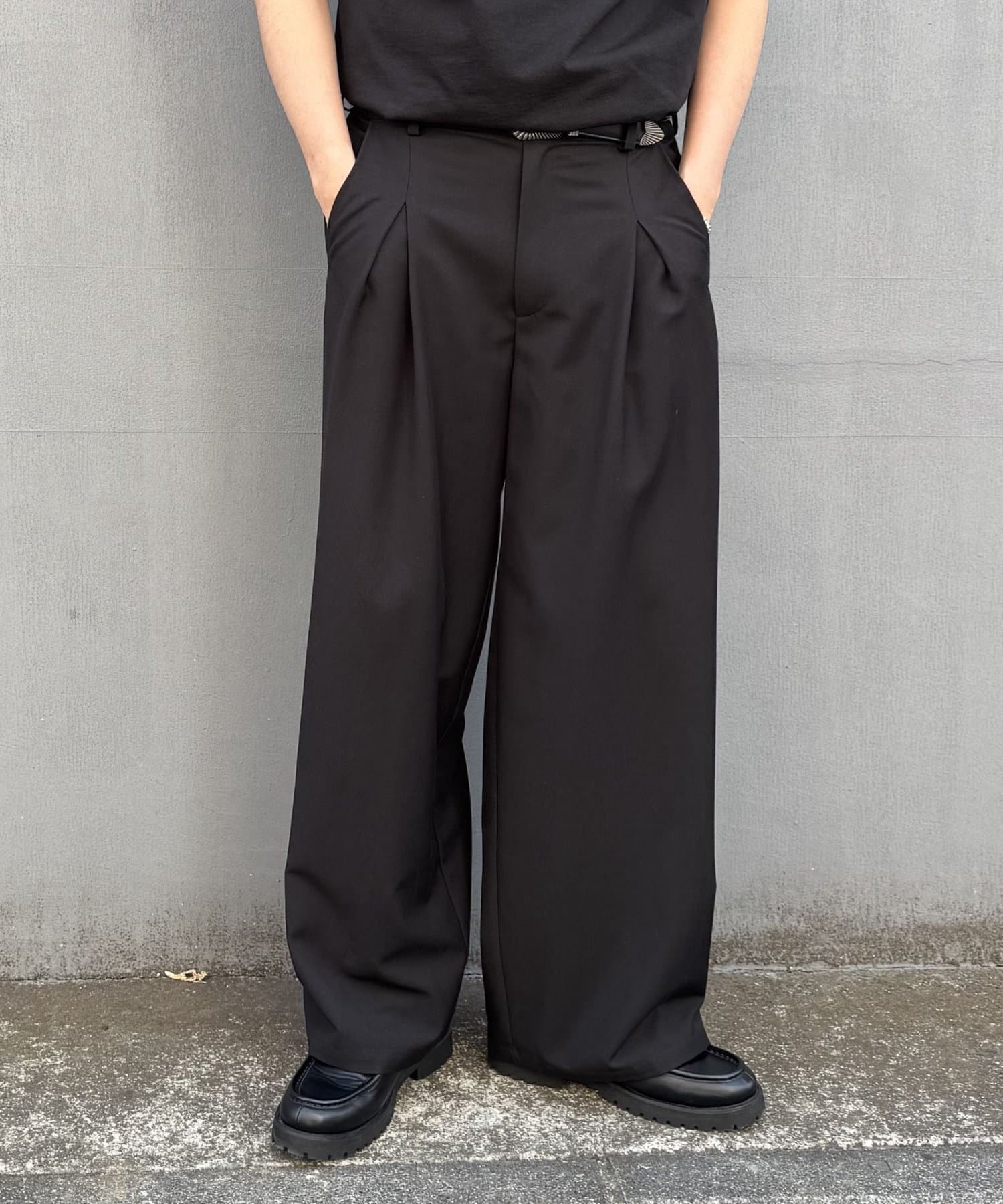 通常のスラックスよりもゆったりとしたより広いシルエットが特徴的なパンツで、