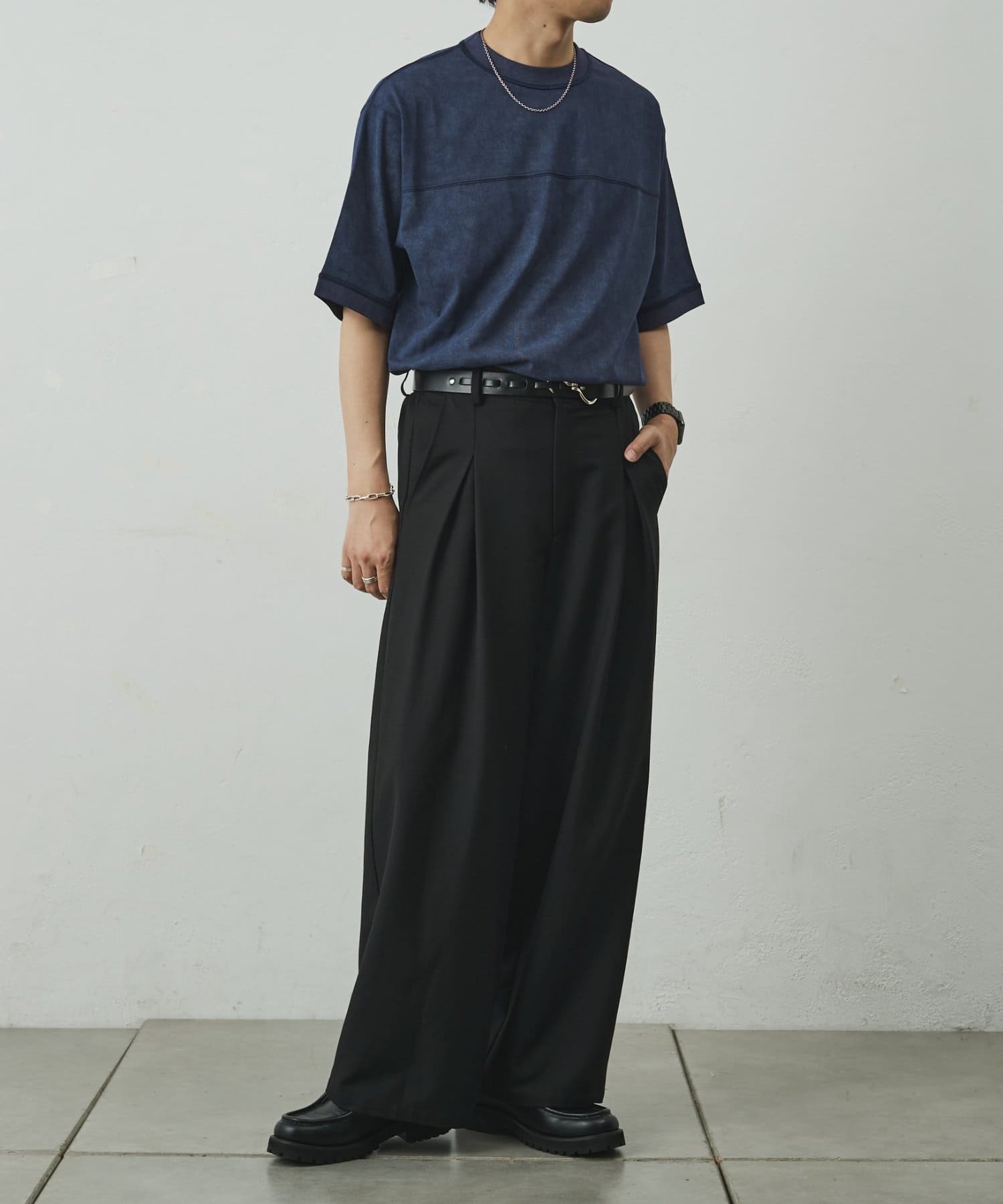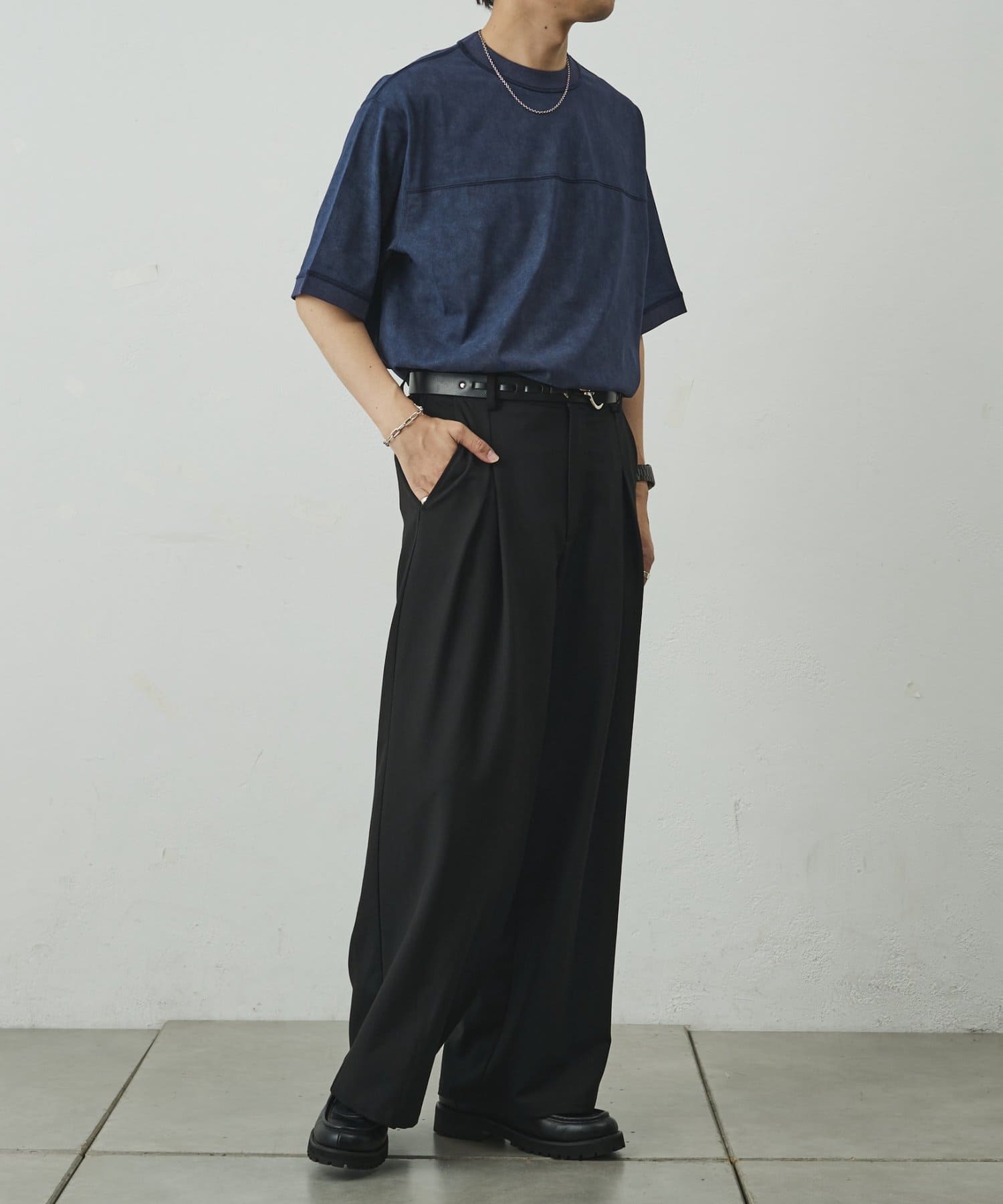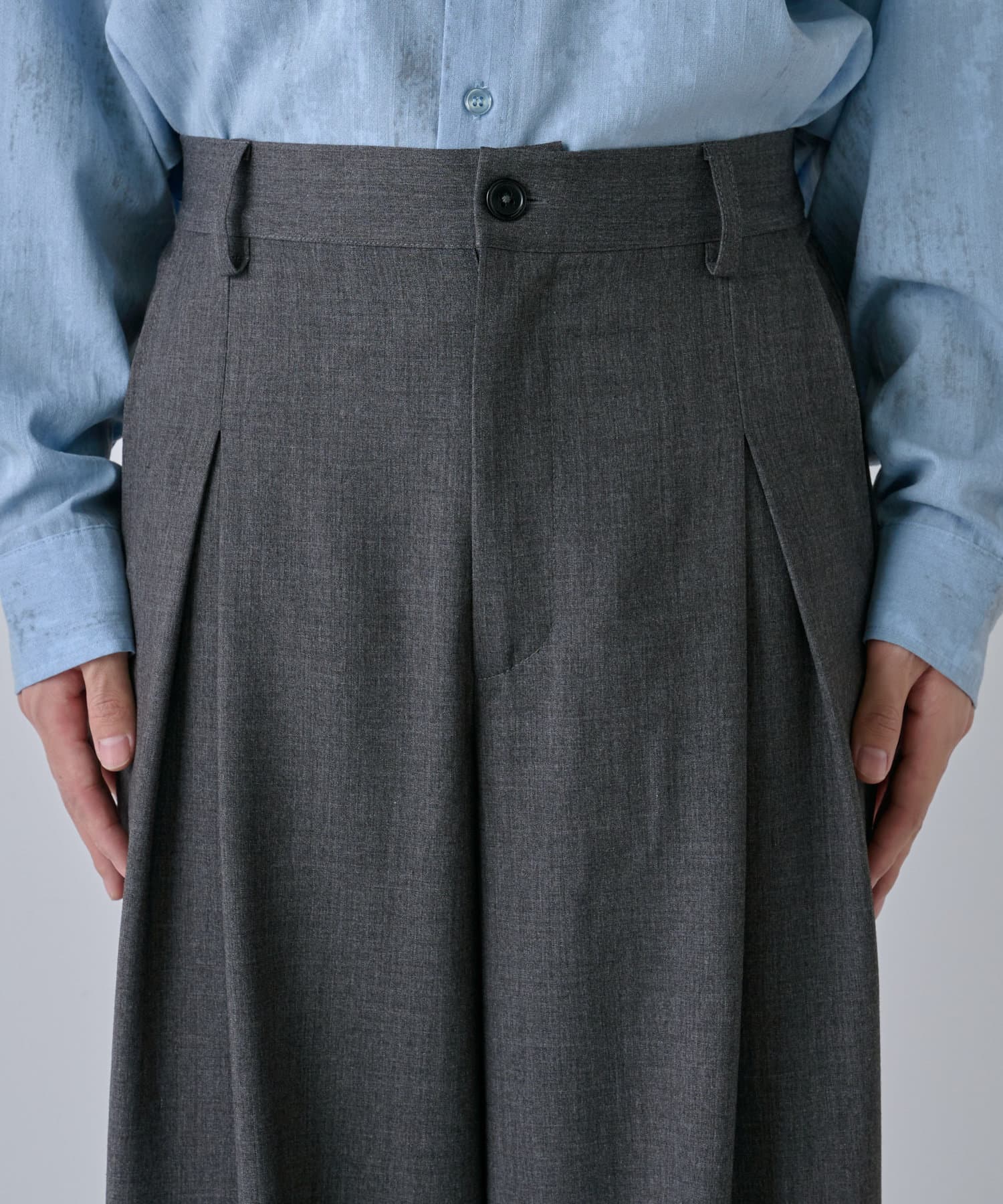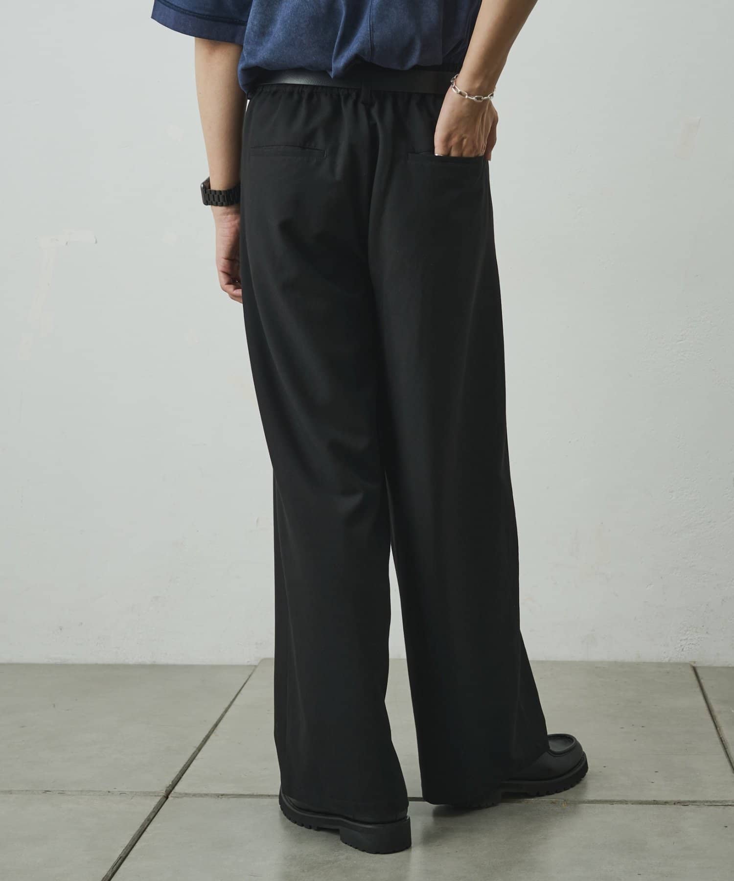 通常のスラックスよりもゆったりとしたより広いシルエットが特徴的なパンツで、