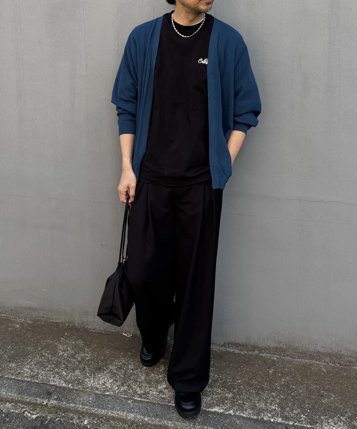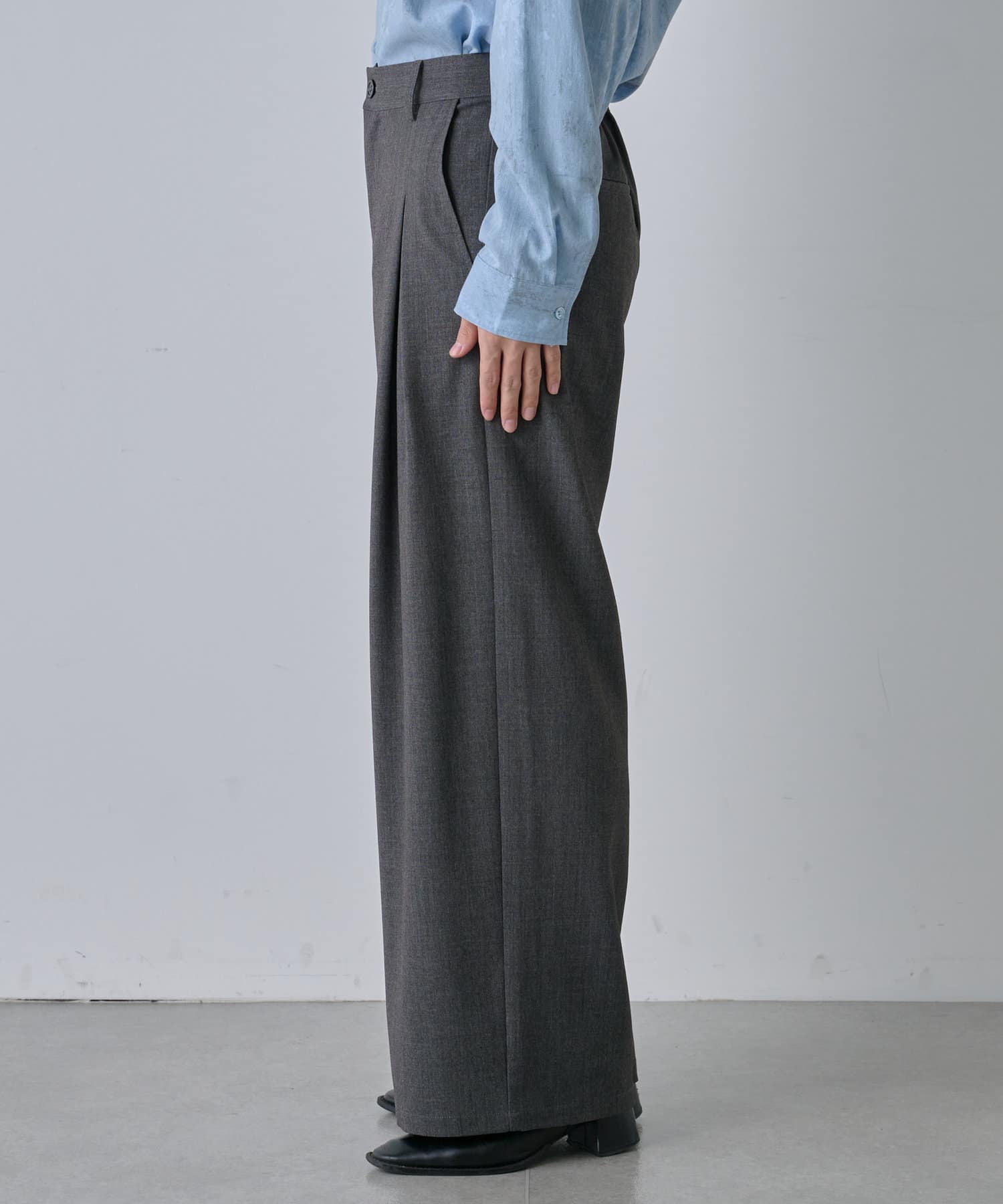 他のパンツデザインに比べてタックの配置が意図的に目を引くため、コーディネートにアクセントを加えてくれます。