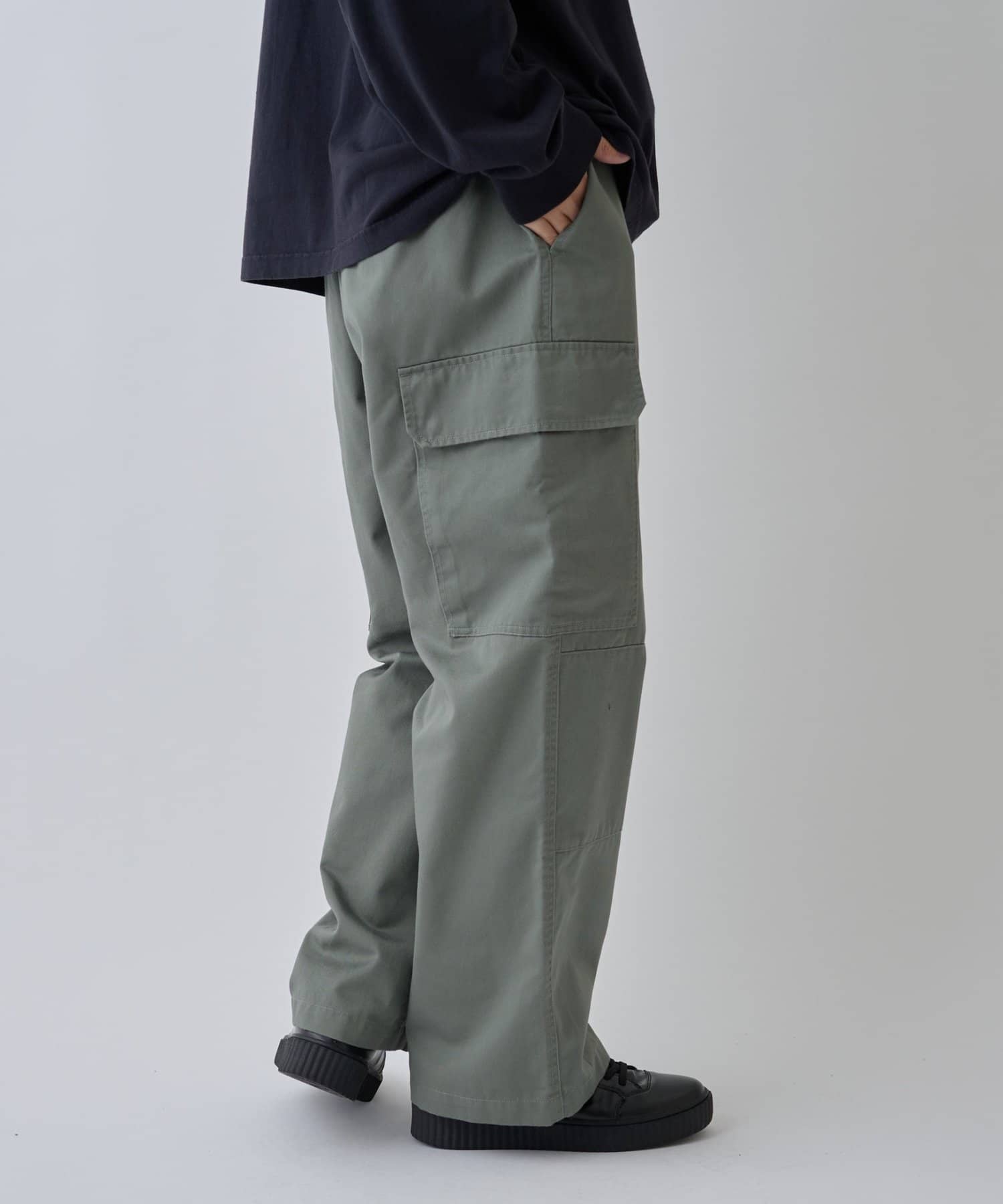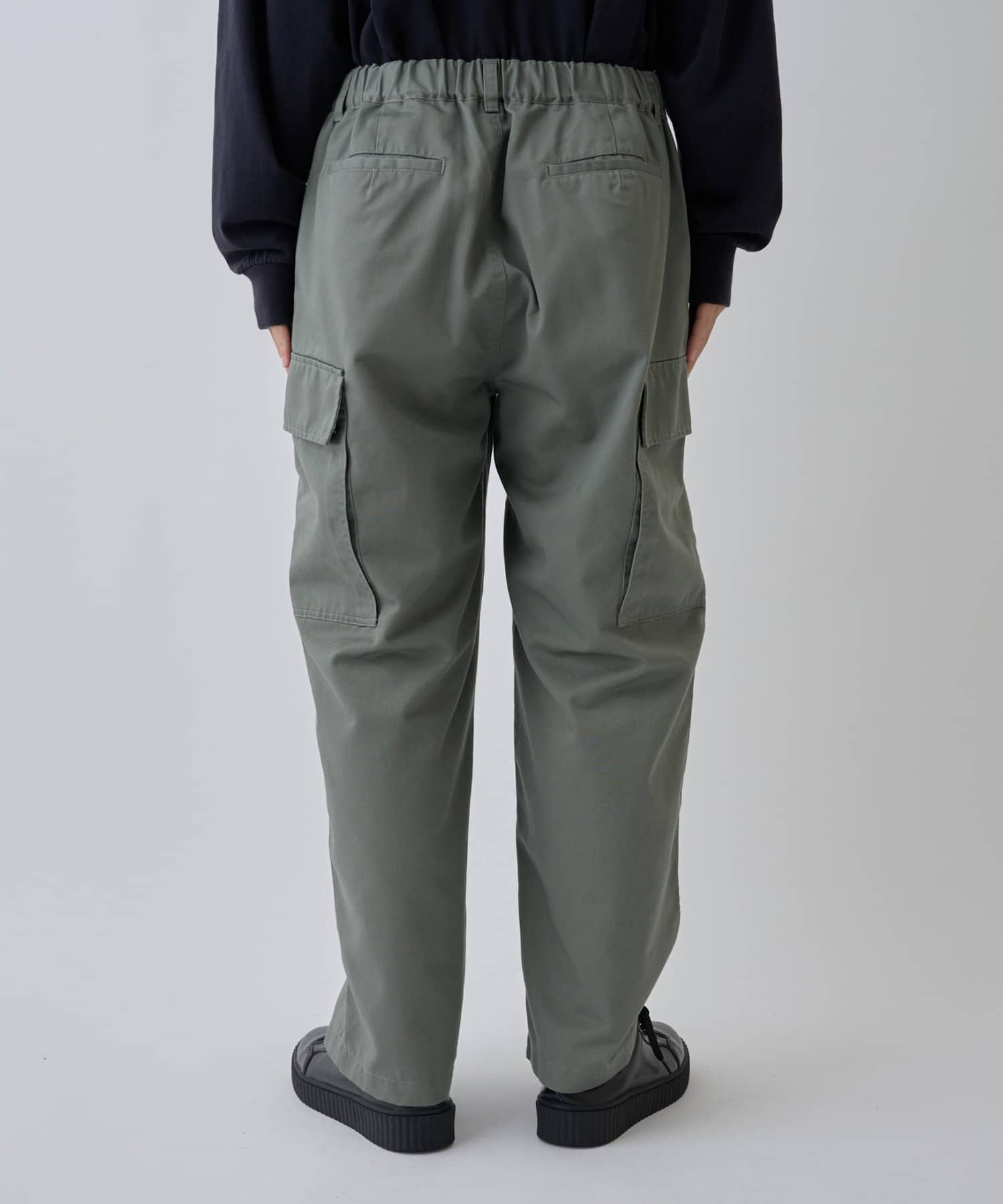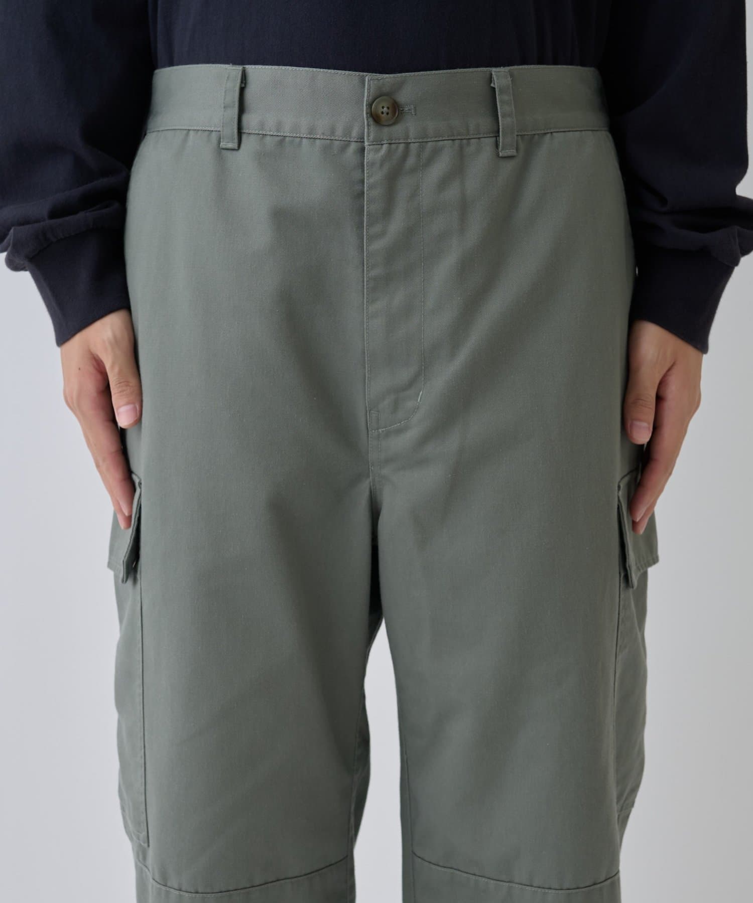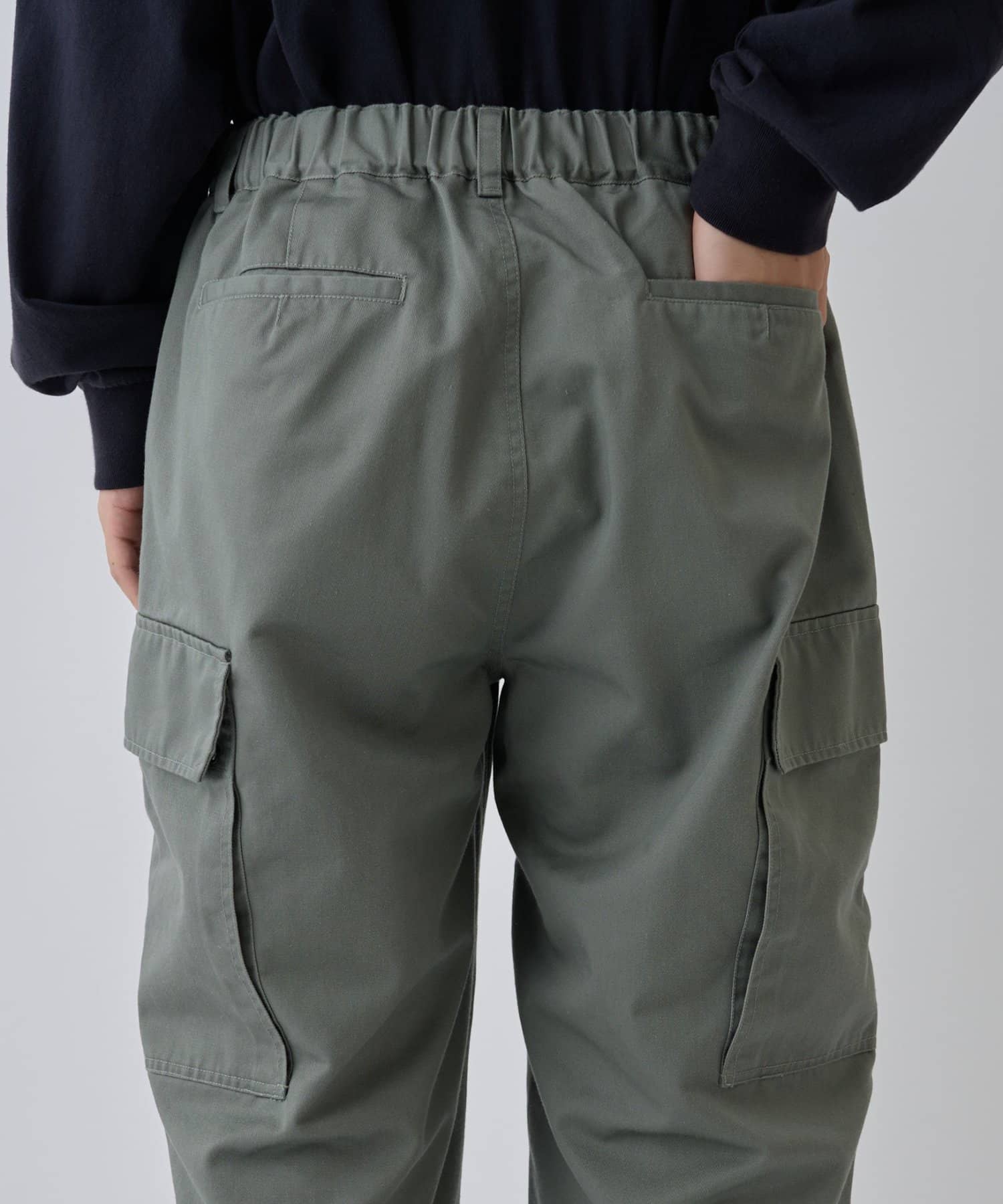 程よい厚みとハリのあるコットンツイル生地を採用し、ラフすぎず、きれいめなスタイルにも馴染むカーゴパンツになっています。