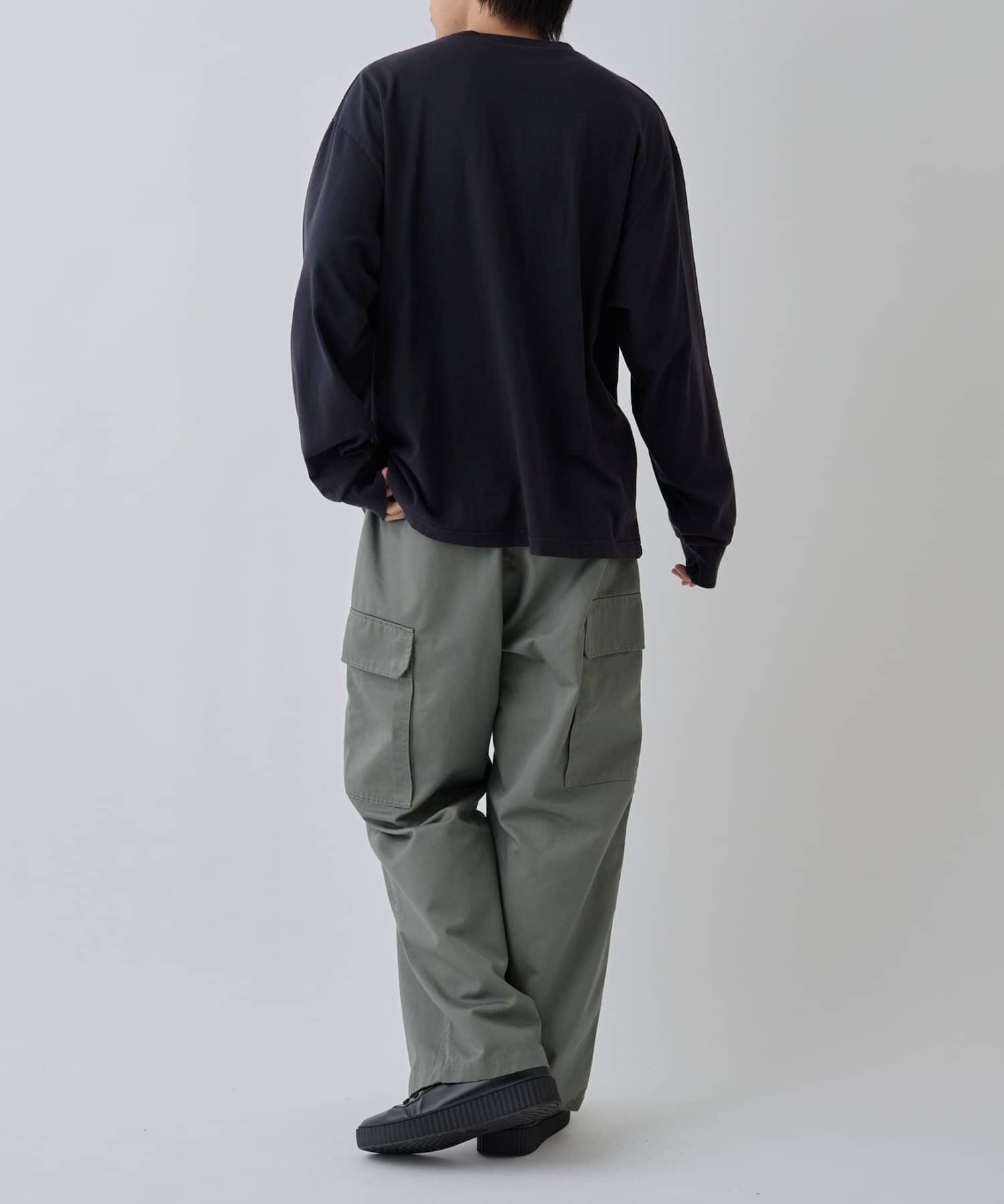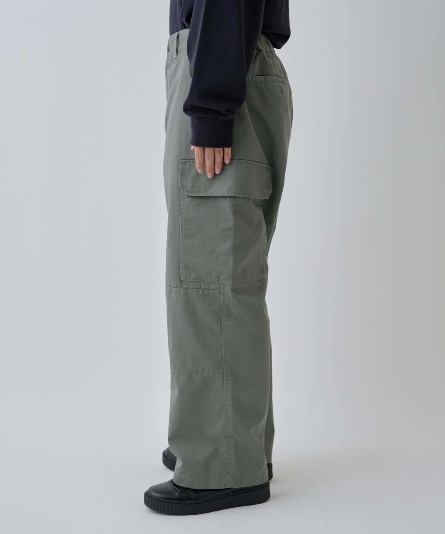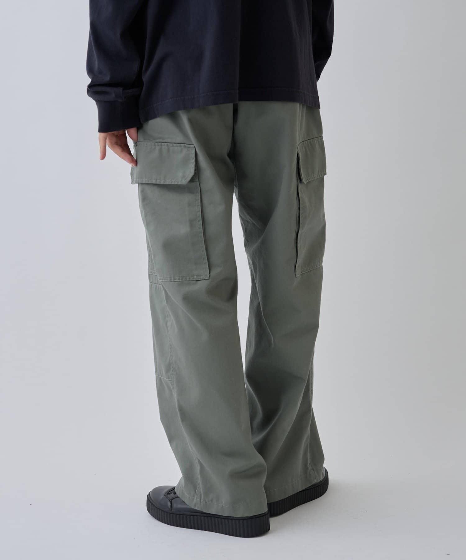 程よい厚みとハリのあるコットンツイル生地を採用し、ラフすぎず、きれいめなスタイルにも馴染むカーゴパンツになっています。