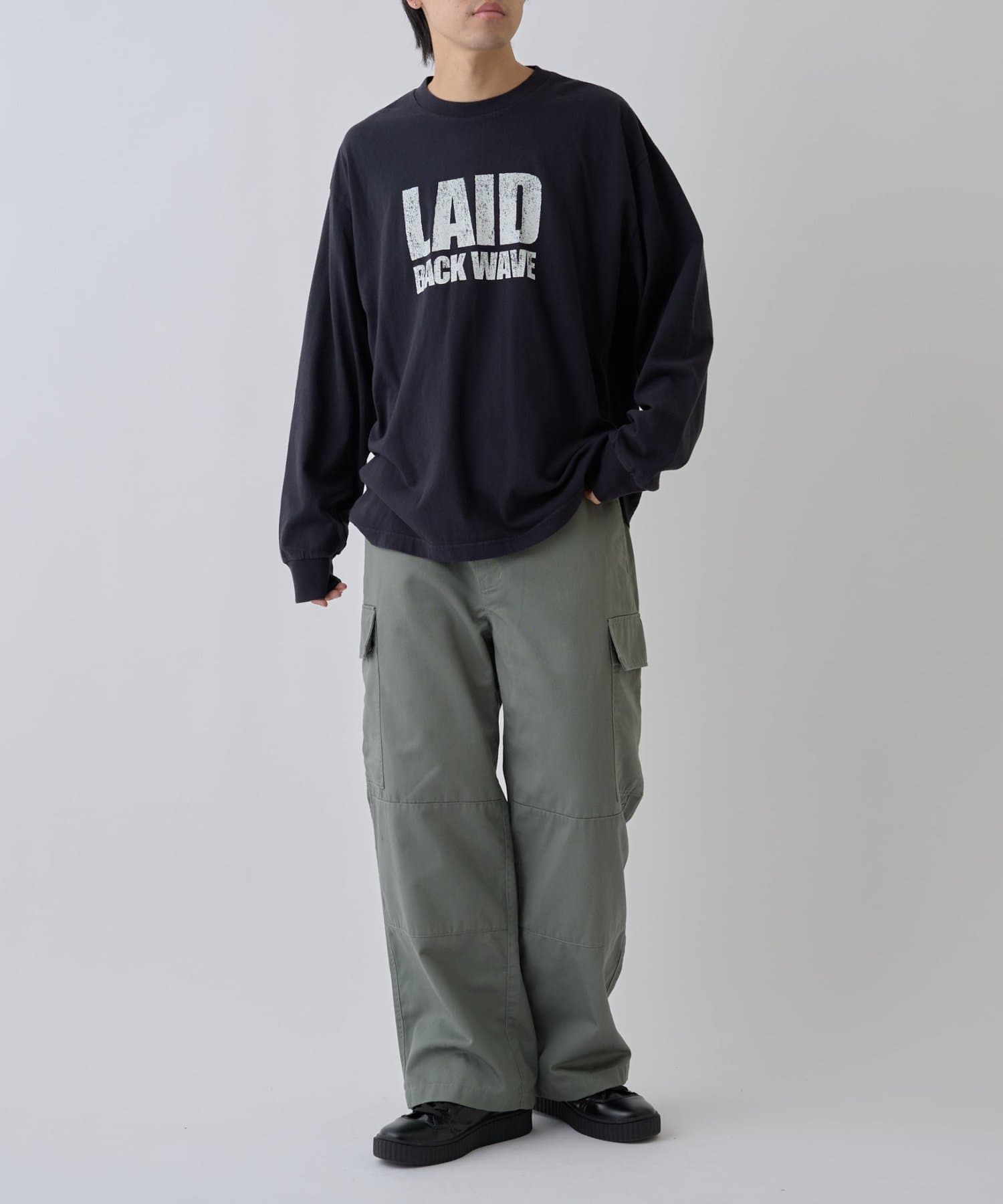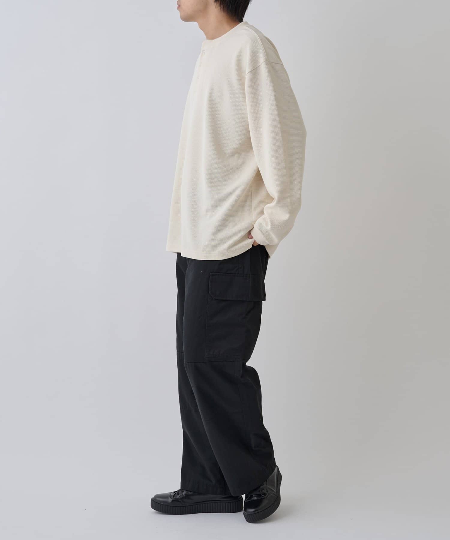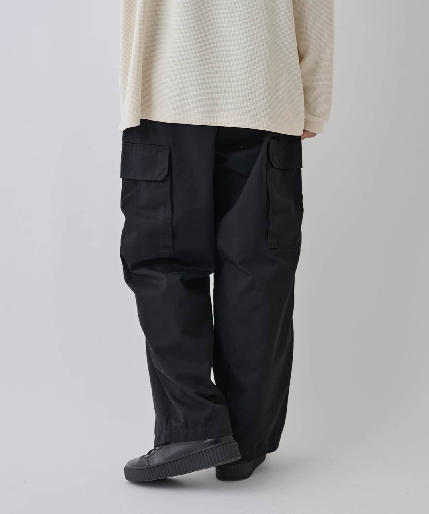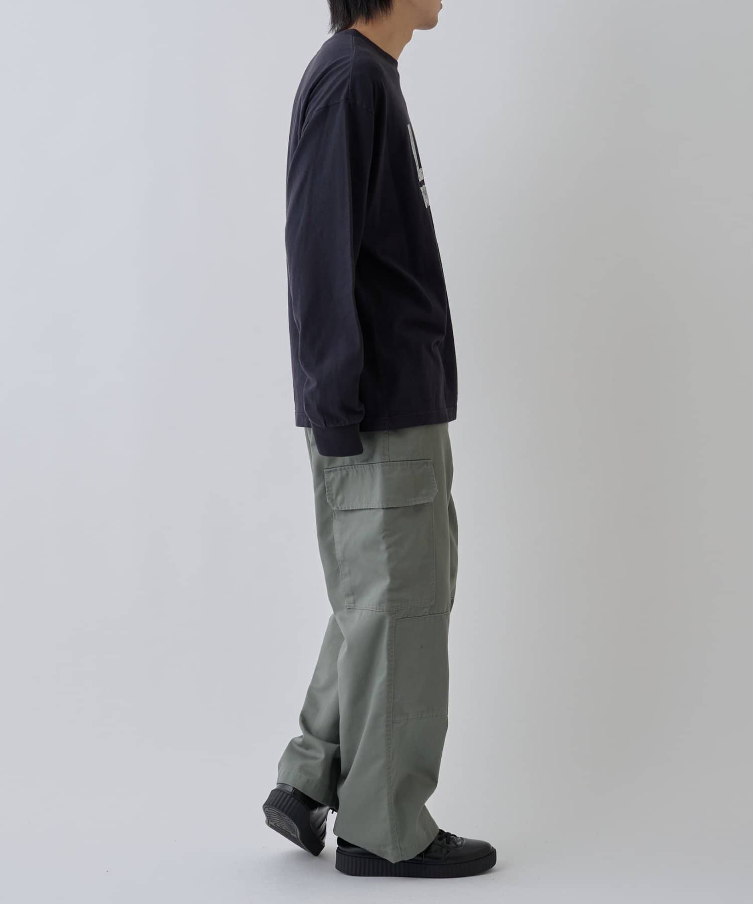 程よい厚みとハリのあるコットンツイル生地を採用し、ラフすぎず、きれいめなスタイルにも馴染むカーゴパンツになっています。