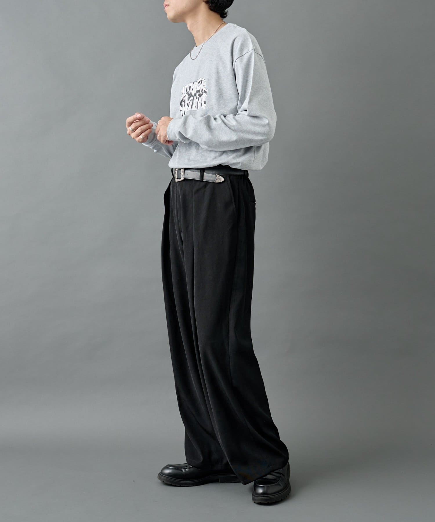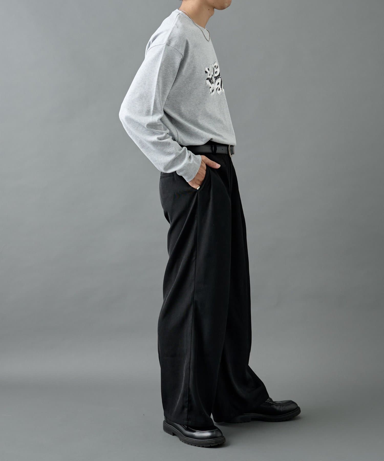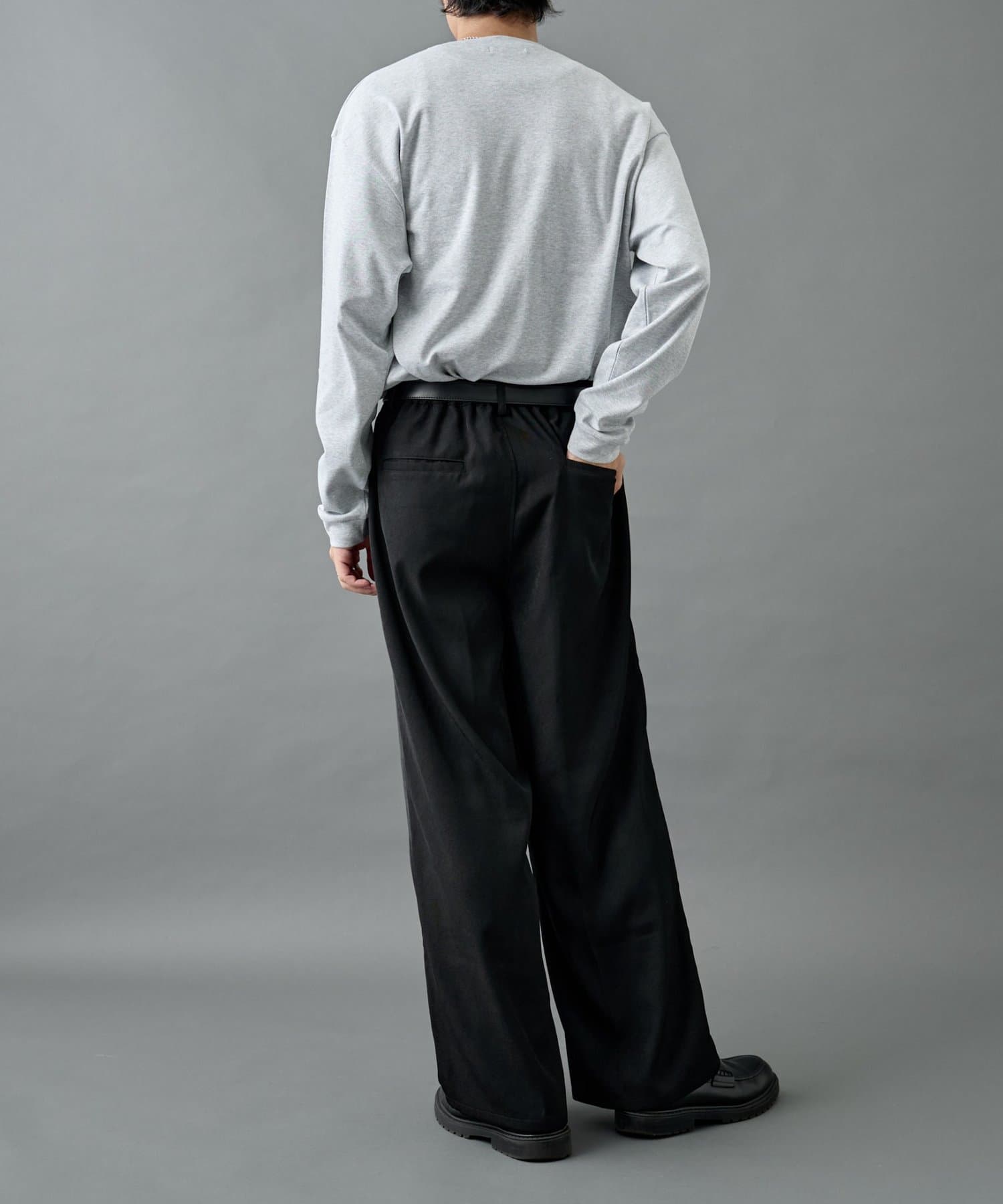 上品なワイドシルエットに、フロントのクロスタックが映えるデザイン性の高い1本。
