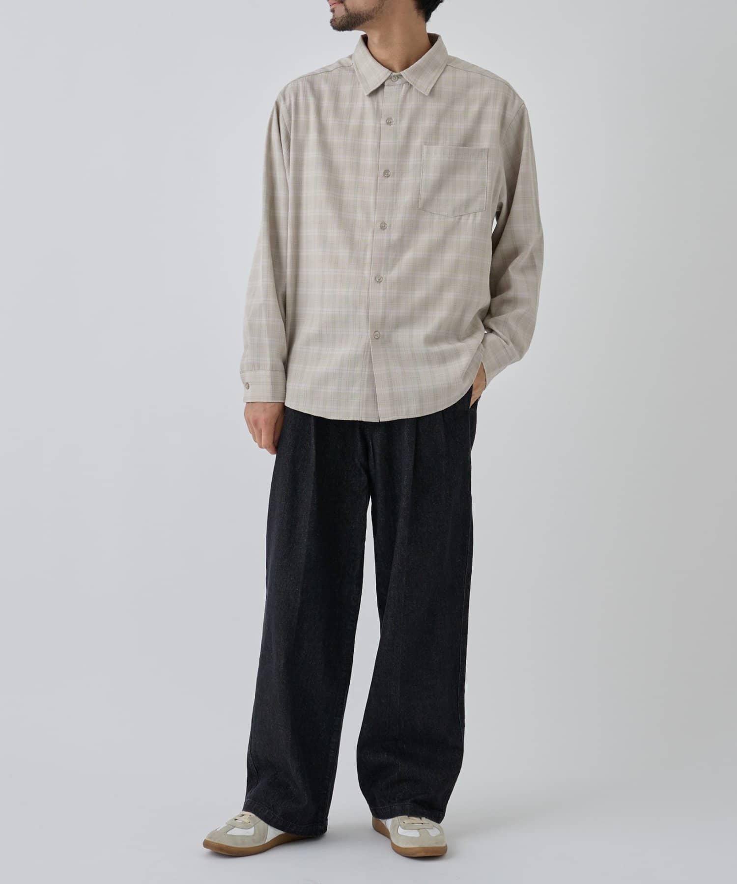 【上品なチェック柄×ジャカード織り、大人のための長袖シャツ】