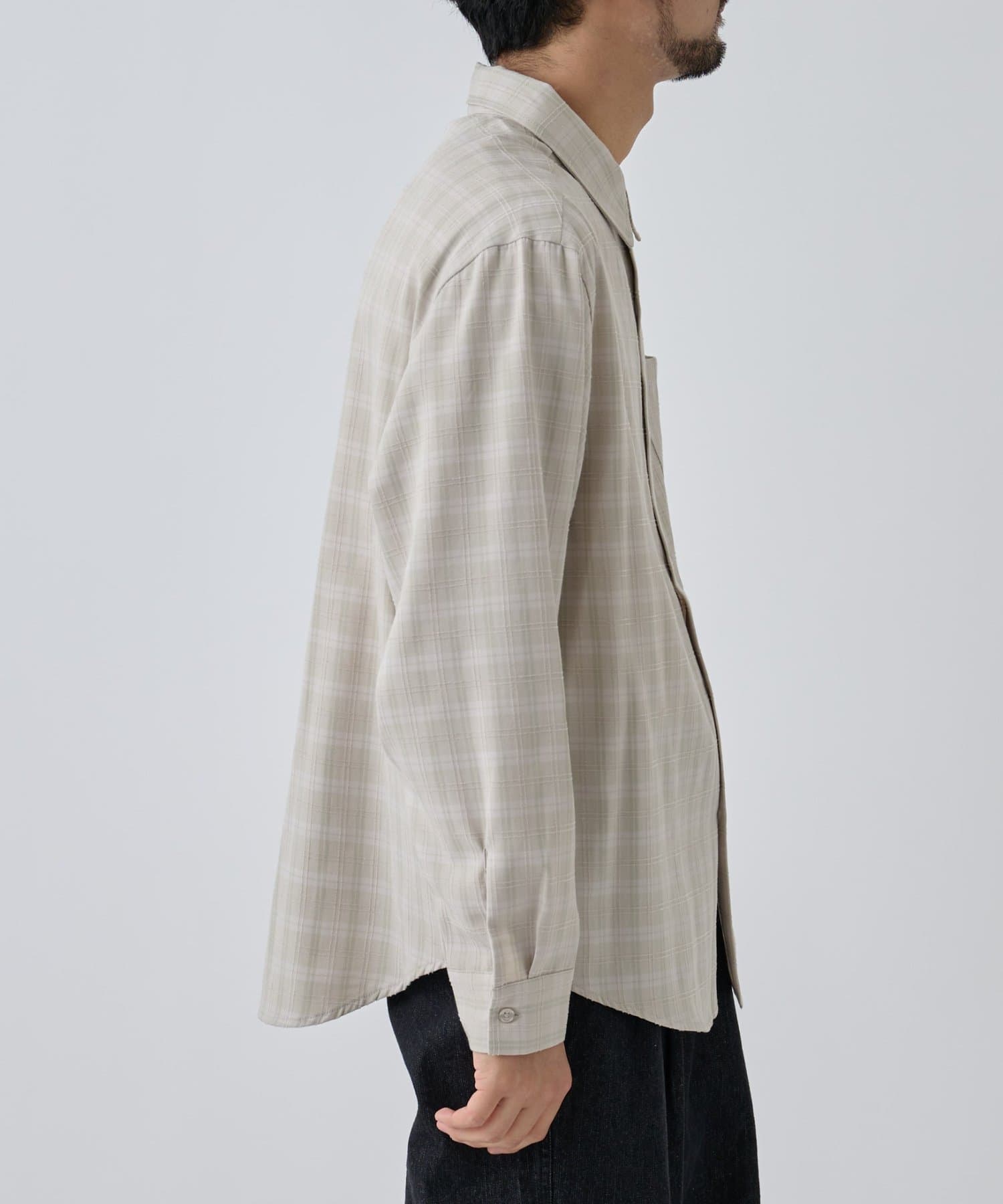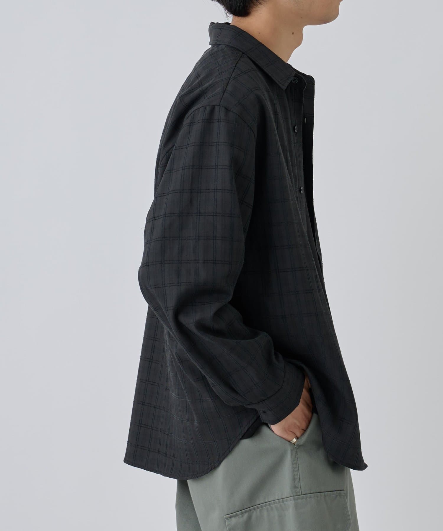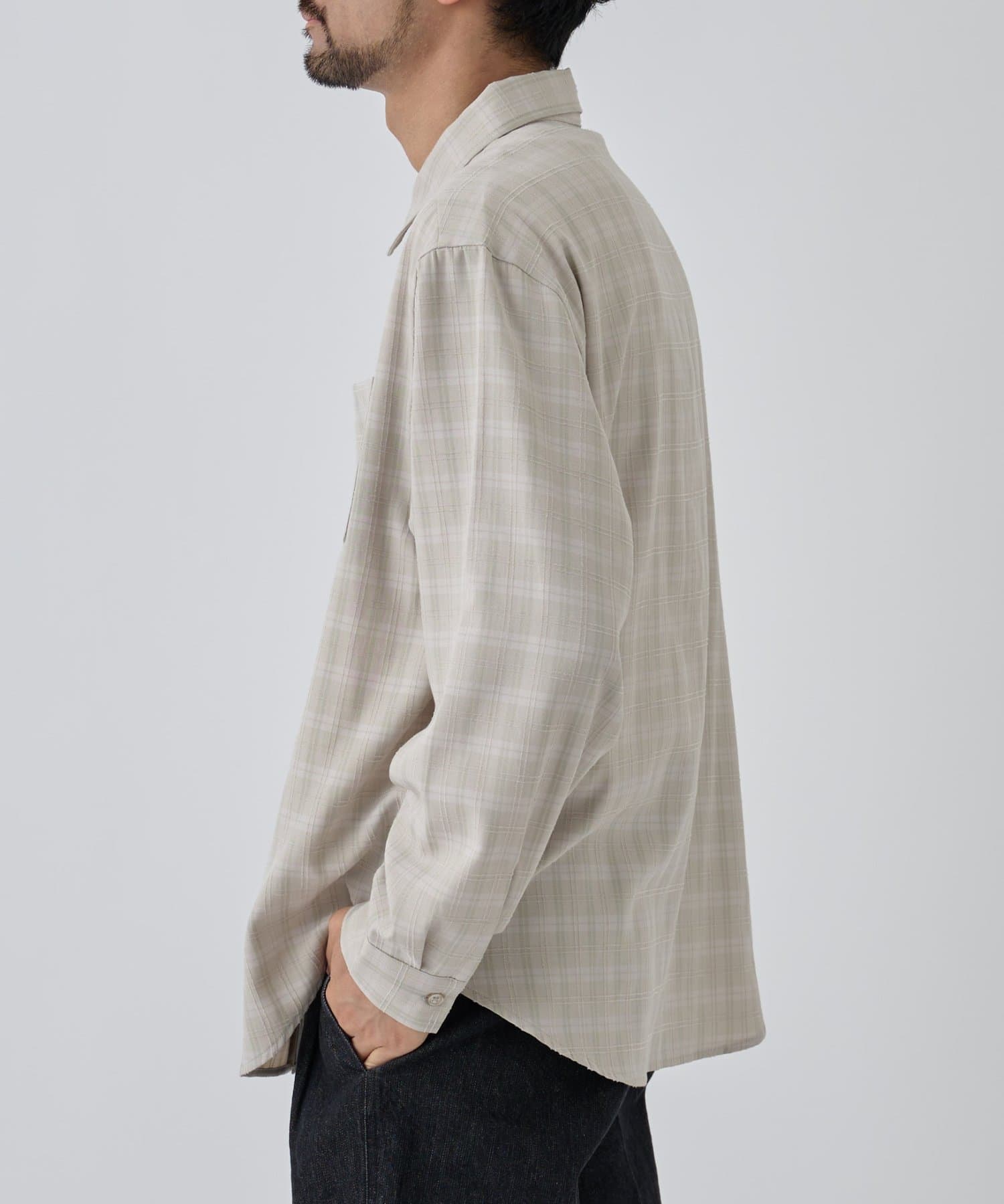 繊細なジャカード織りで表現されたチェック柄が、上品な立体感を生み出す長袖シャツ。